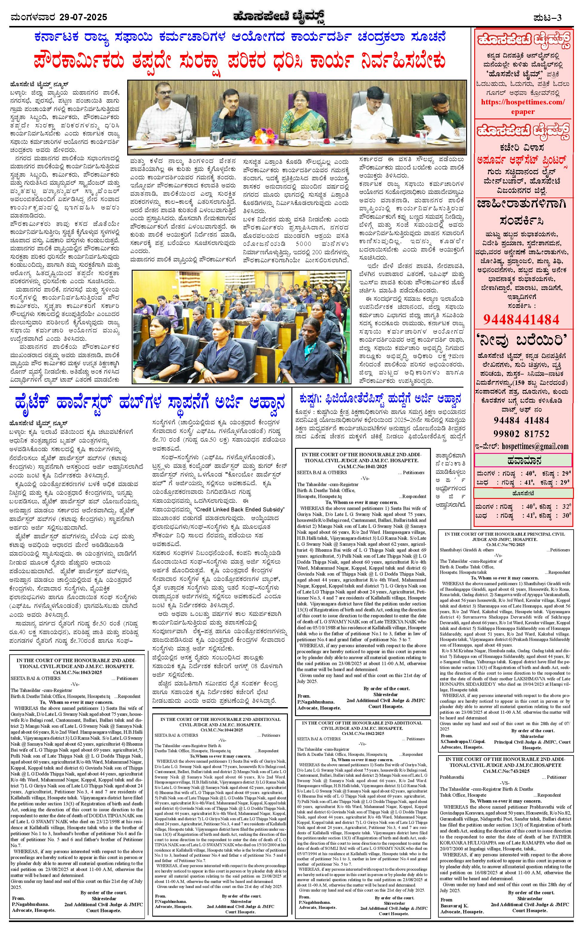 ಮಾಧ್ಯಮ ಅಕಾಡೆಮಿ ಪ್ರಶಸ್ತಿ ಪುರಸ್ಕೃತ 'ಹೊಸಪೇಟೆ ಟೈಮ್ಸ್' Page: 3 July 29, 2025 << First << 3 >> Last >> Page 1Page 2Page 3Page 4 × ಮಾಧ್ಯಮ ಅಕಾಡೆಮಿ ಪ್ರಶಸ್ತಿ ಪುರಸ್ಕೃತ 'ಹೊಸಪೇಟೆ ಟೈಮ್ಸ್' HPT-29072025-4-PAGE-page-001HPT-29072025-4-PAGE-page-002HPT-29072025-4-PAGE-page-003HPT-29072025-4-PAGE-page-004 << First << 3 >> Last >> HPT-29072025-4-PAGE-page-001HPT-29072025-4-PAGE-page-002HPT-29072025-4-PAGE-page-003HPT-29072025-4-PAGE-page-004 HPT-29072025-4-PAGE-page-003