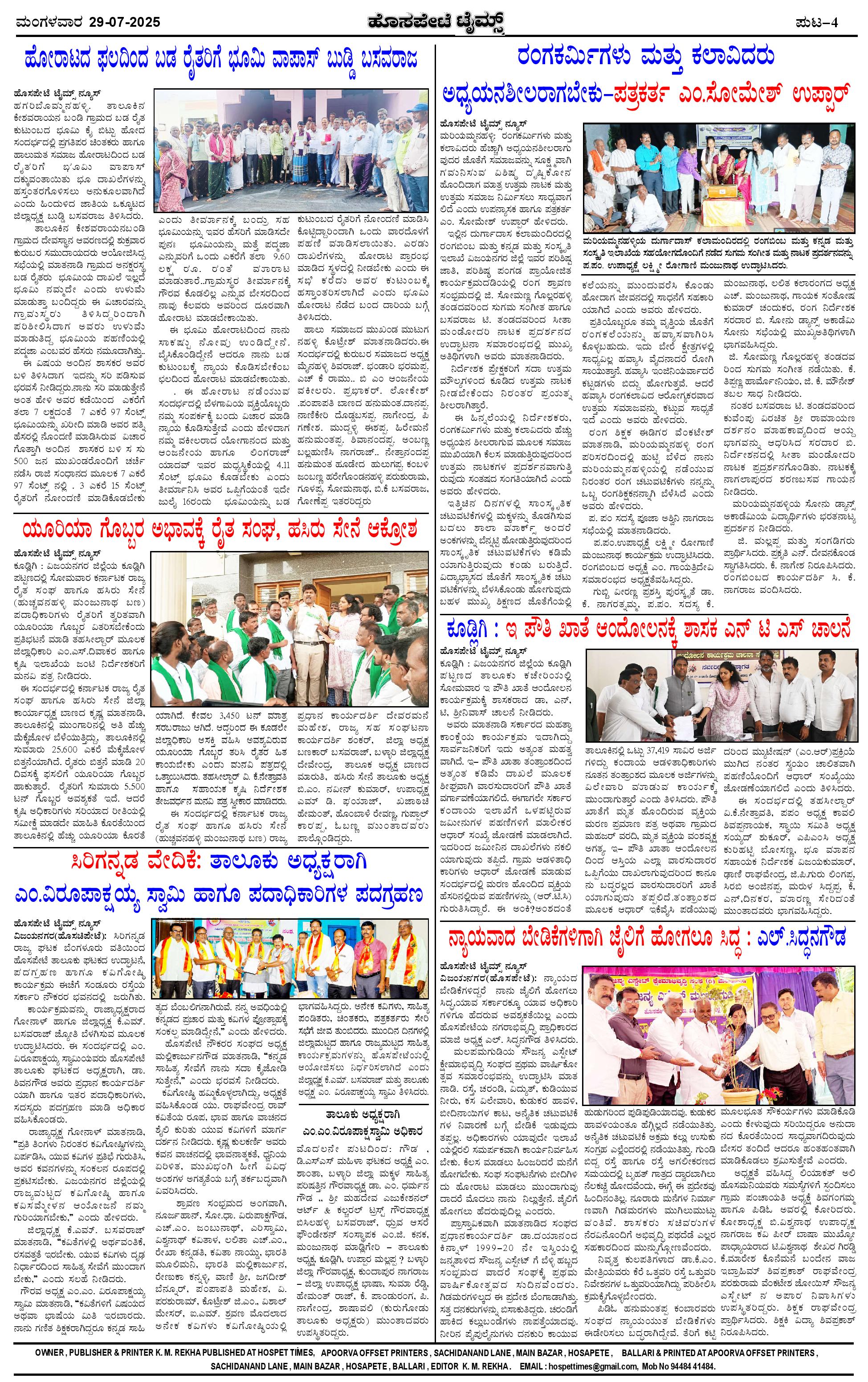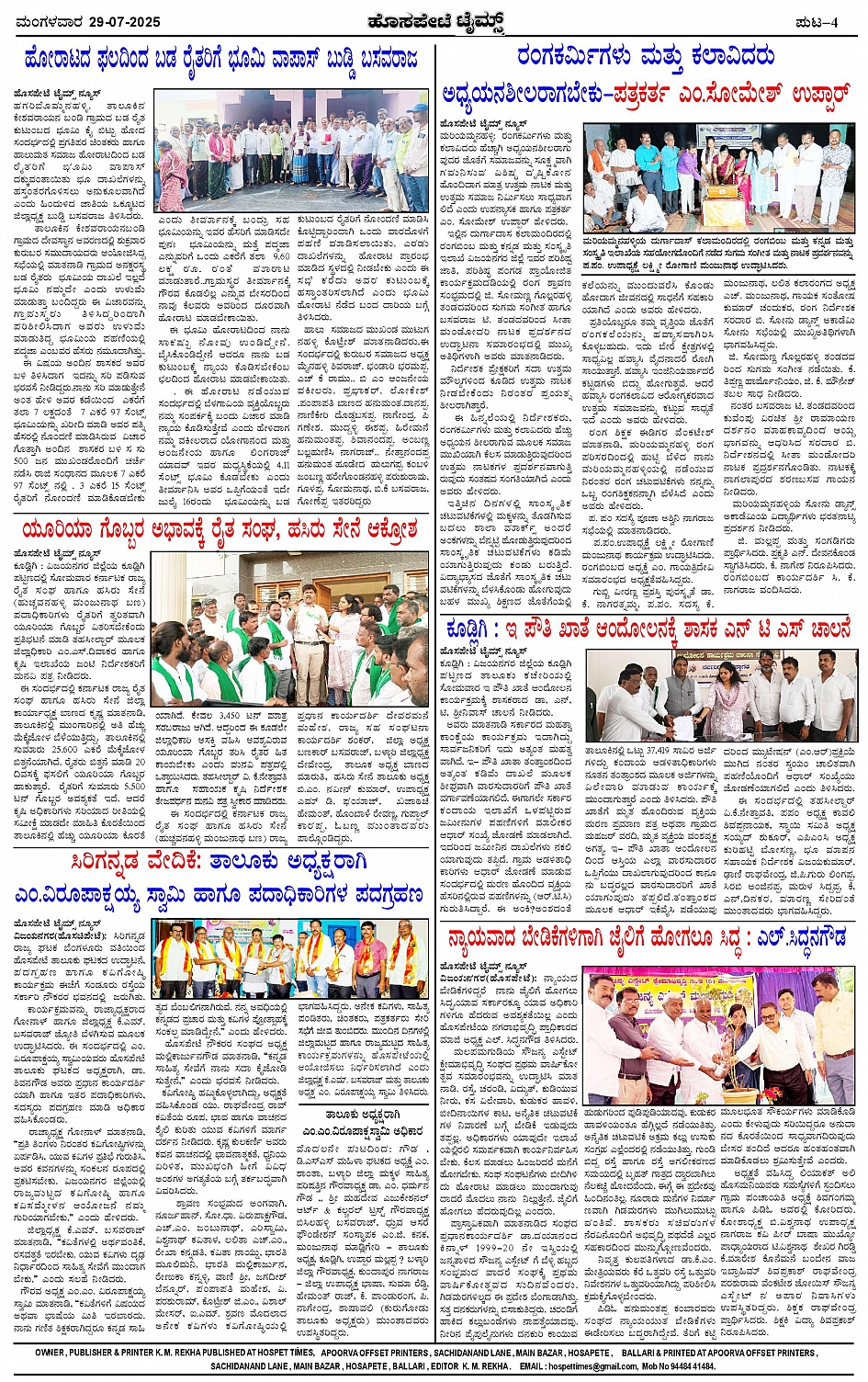 ಮಾಧ್ಯಮ ಅಕಾಡೆಮಿ ಪ್ರಶಸ್ತಿ ಪುರಸ್ಕೃತ 'ಹೊಸಪೇಟೆ ಟೈಮ್ಸ್' Page: 4 July 29, 2025 << First << 4 >> Last >> Page 1Page 2Page 3Page 4 × ಮಾಧ್ಯಮ ಅಕಾಡೆಮಿ ಪ್ರಶಸ್ತಿ ಪುರಸ್ಕೃತ 'ಹೊಸಪೇಟೆ ಟೈಮ್ಸ್' HPT-29072025-4-PAGE-page-001HPT-29072025-4-PAGE-page-002HPT-29072025-4-PAGE-page-003HPT-29072025-4-PAGE-page-004 << First << 4 >> Last >> HPT-29072025-4-PAGE-page-001HPT-29072025-4-PAGE-page-002HPT-29072025-4-PAGE-page-003HPT-29072025-4-PAGE-page-004 HPT-29072025-4-PAGE-page-004