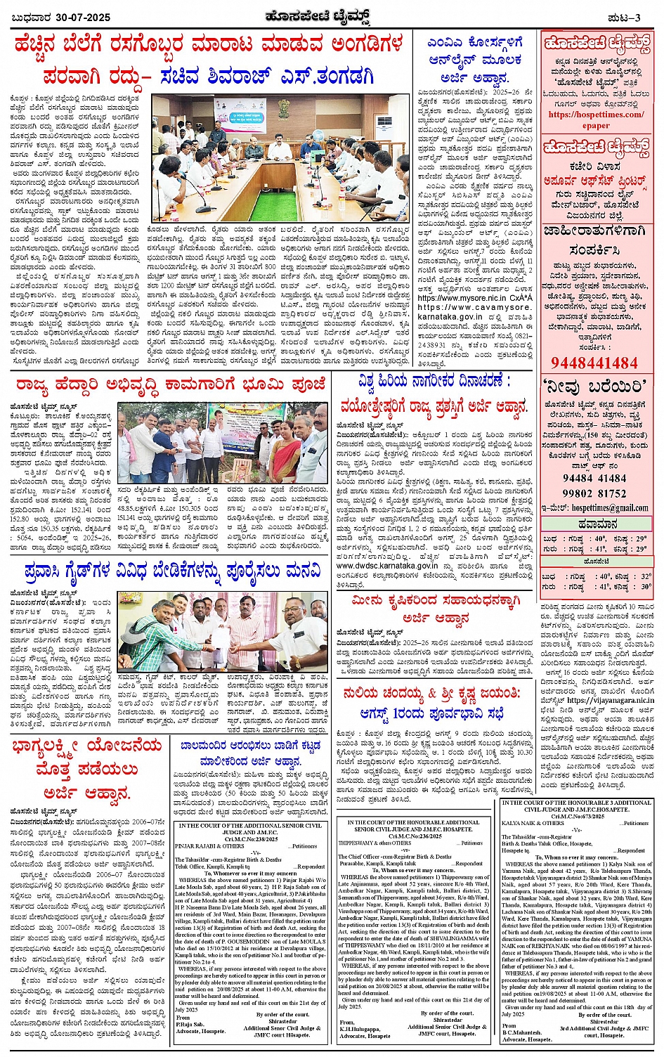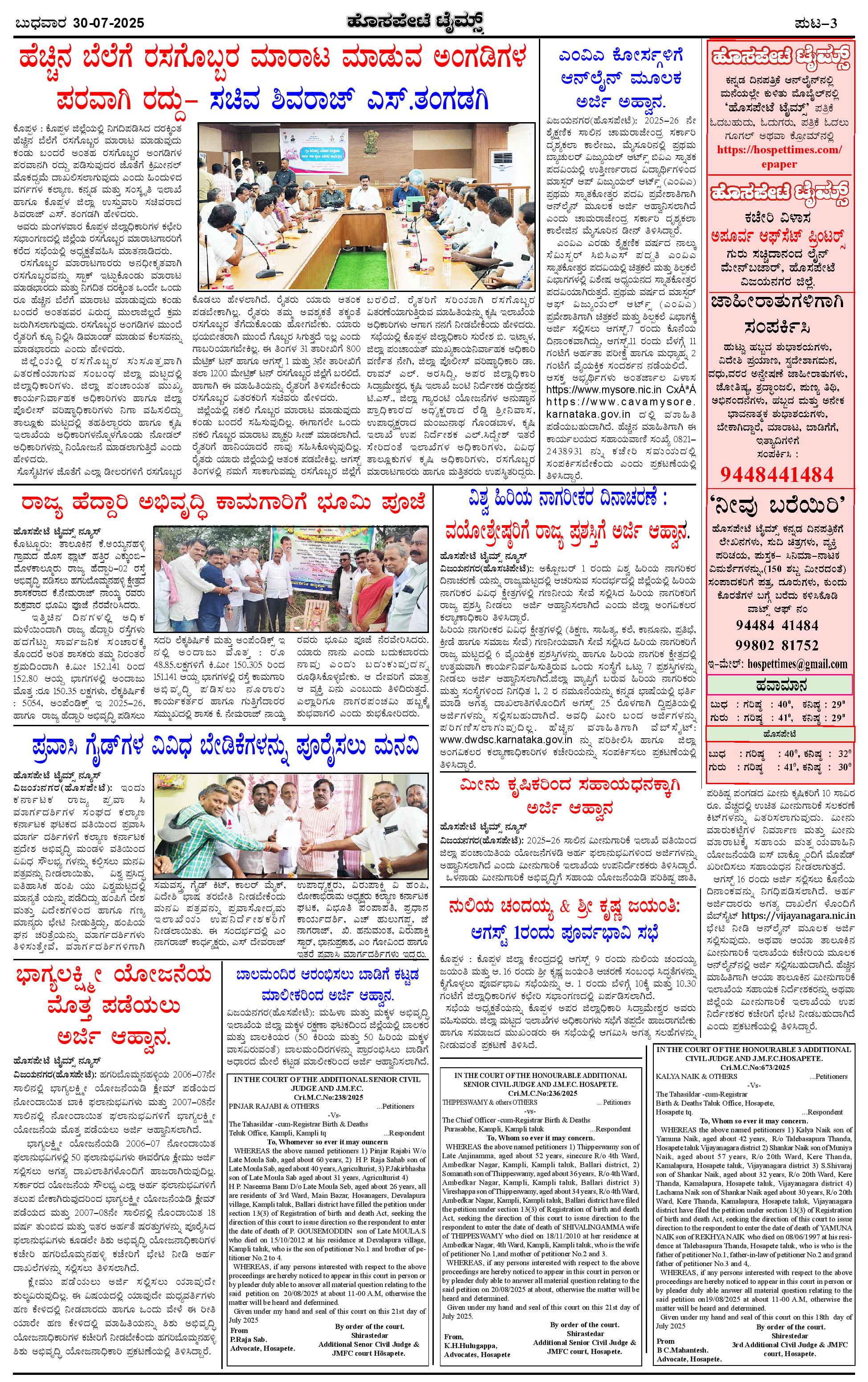 ಮಾಧ್ಯಮ ಅಕಾಡೆಮಿ ಪ್ರಶಸ್ತಿ ಪುರಸ್ಕೃತ 'ಹೊಸಪೇಟೆ ಟೈಮ್ಸ್' Page: 3 July 30, 2025 << First << 3 >> Last >> Page 1Page 2Page 3Page 4 × ಮಾಧ್ಯಮ ಅಕಾಡೆಮಿ ಪ್ರಶಸ್ತಿ ಪುರಸ್ಕೃತ 'ಹೊಸಪೇಟೆ ಟೈಮ್ಸ್' HPT-30072025--4-page-001HPT-30072025--4-page-002HPT-30072025--4-page-003HPT-30072025--4-page-004 << First << 3 >> Last >> HPT-30072025--4-page-001HPT-30072025--4-page-002HPT-30072025--4-page-003HPT-30072025--4-page-004 HPT-30072025--4-page-003