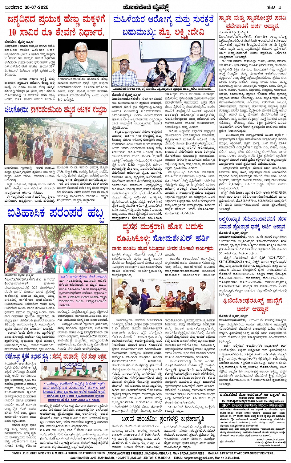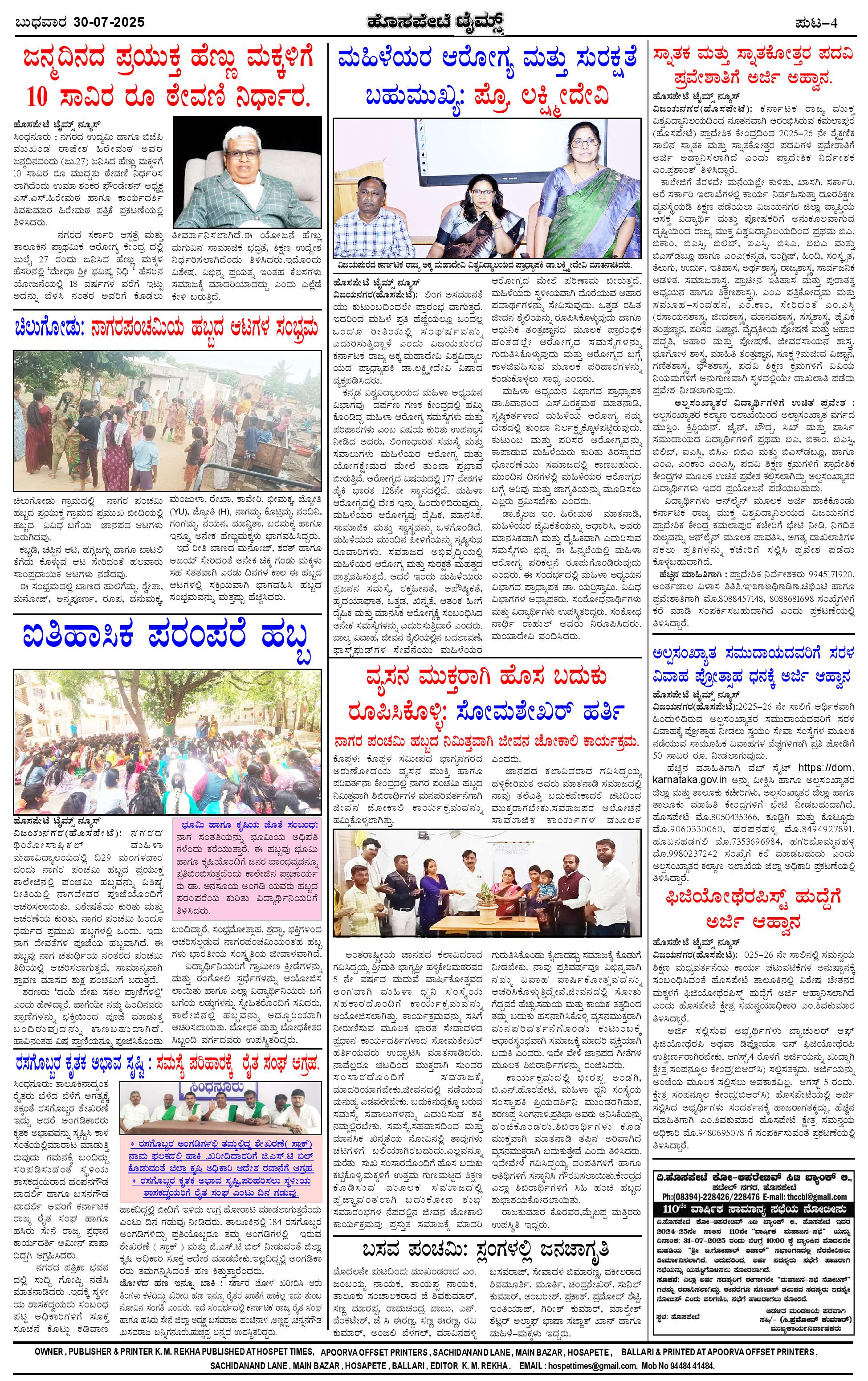 ಮಾಧ್ಯಮ ಅಕಾಡೆಮಿ ಪ್ರಶಸ್ತಿ ಪುರಸ್ಕೃತ 'ಹೊಸಪೇಟೆ ಟೈಮ್ಸ್' Page: 4 July 30, 2025 << First << 4 >> Last >> Page 1Page 2Page 3Page 4 × ಮಾಧ್ಯಮ ಅಕಾಡೆಮಿ ಪ್ರಶಸ್ತಿ ಪುರಸ್ಕೃತ 'ಹೊಸಪೇಟೆ ಟೈಮ್ಸ್' HPT-30072025--4-page-001HPT-30072025--4-page-002HPT-30072025--4-page-003HPT-30072025--4-page-004 << First << 4 >> Last >> HPT-30072025--4-page-001HPT-30072025--4-page-002HPT-30072025--4-page-003HPT-30072025--4-page-004 HPT-30072025--4-page-004