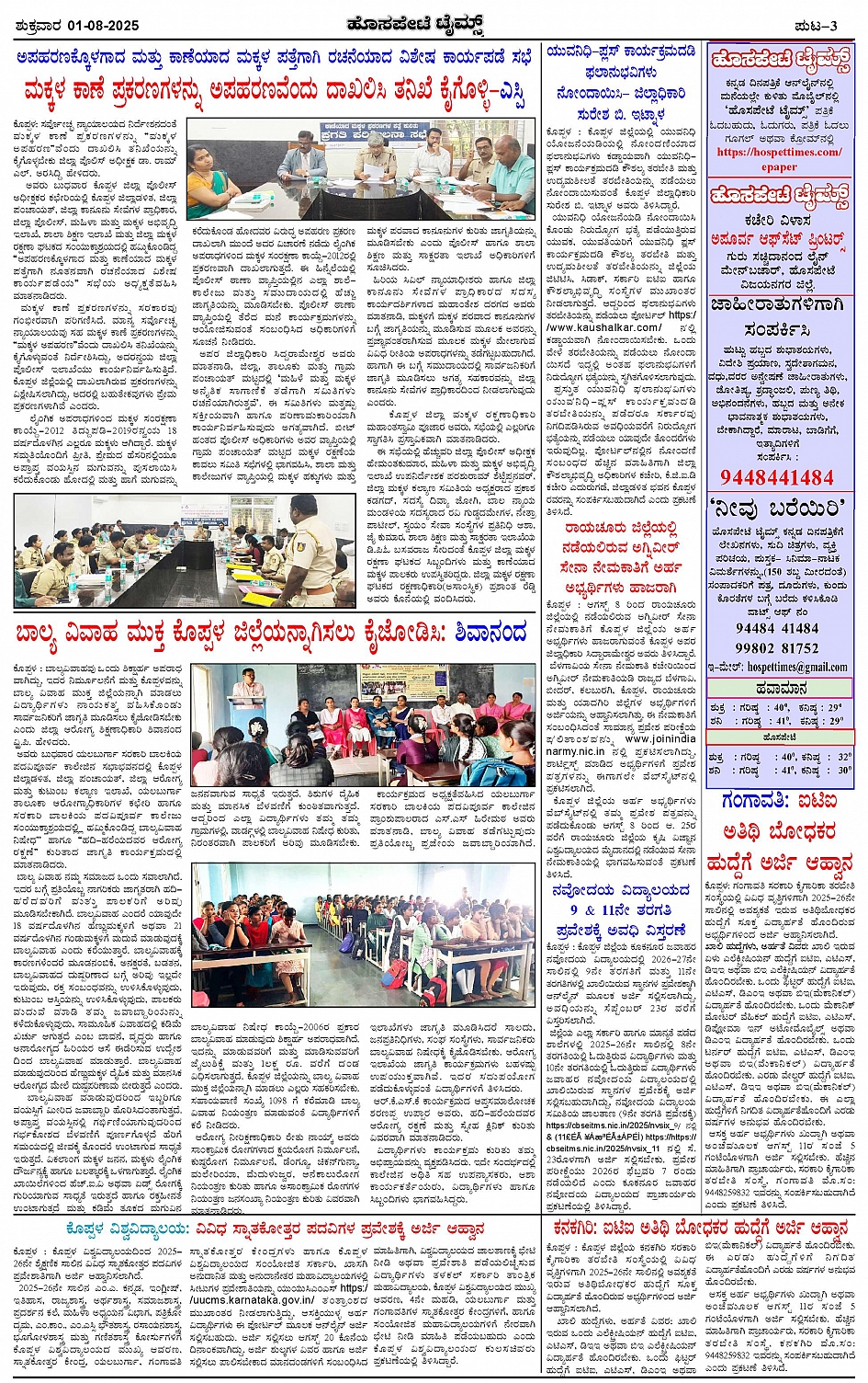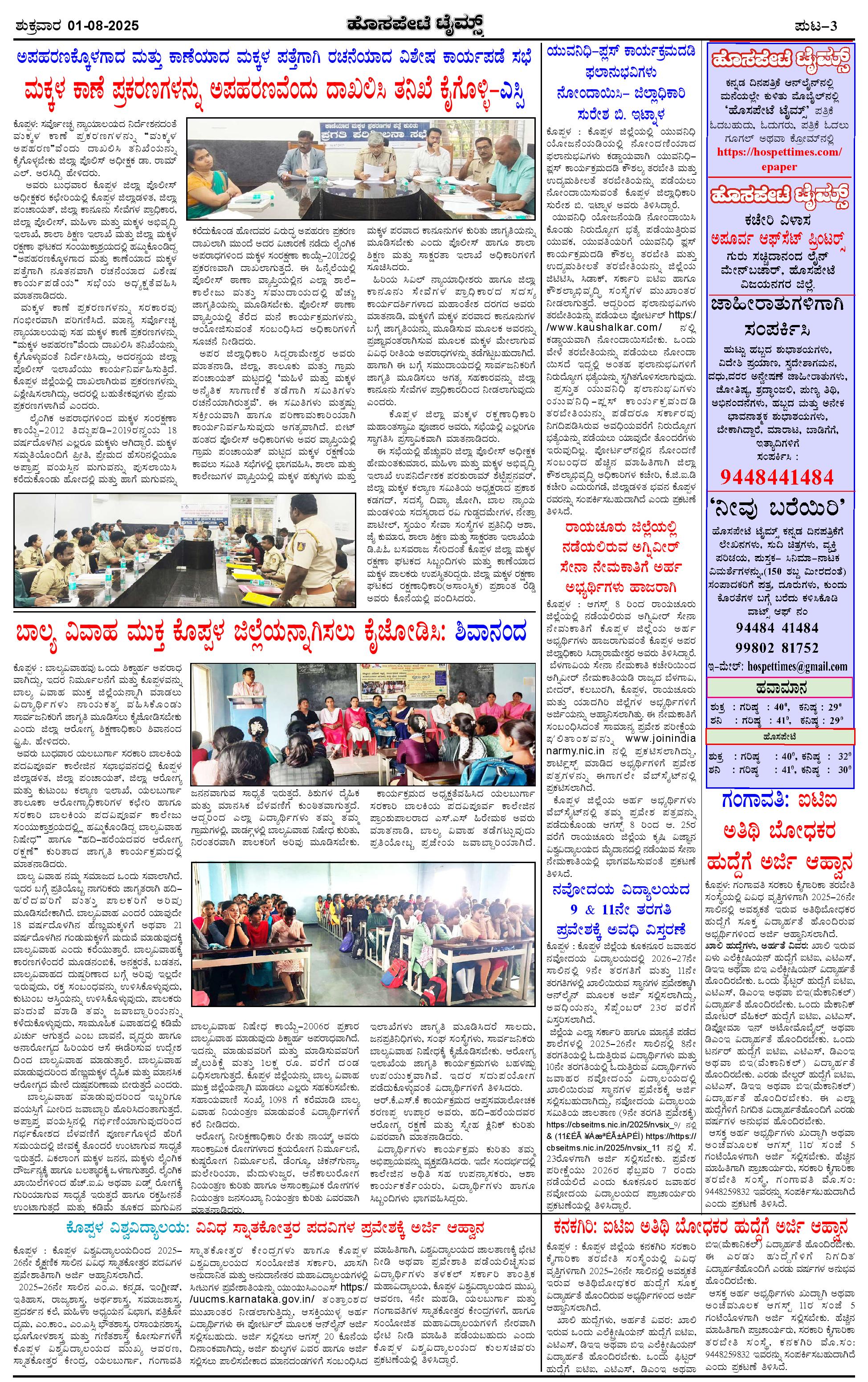 ಮಾಧ್ಯಮ ಅಕಾಡೆಮಿ ಪ್ರಶಸ್ತಿ ಪುರಸ್ಕೃತ 'ಹೊಸಪೇಟೆ ಟೈಮ್ಸ್' Page: 3 August 01, 2025 << First << 3 >> Last >> Page 1Page 2Page 3Page 4 × ಮಾಧ್ಯಮ ಅಕಾಡೆಮಿ ಪ್ರಶಸ್ತಿ ಪುರಸ್ಕೃತ 'ಹೊಸಪೇಟೆ ಟೈಮ್ಸ್' HPT-01082025--4-page-001HPT-01082025--4-page-002HPT-01082025--4-page-003HPT-01082025--4-page-004 << First << 3 >> Last >> HPT-01082025--4-page-001HPT-01082025--4-page-002HPT-01082025--4-page-003HPT-01082025--4-page-004 HPT-01082025--4-page-003