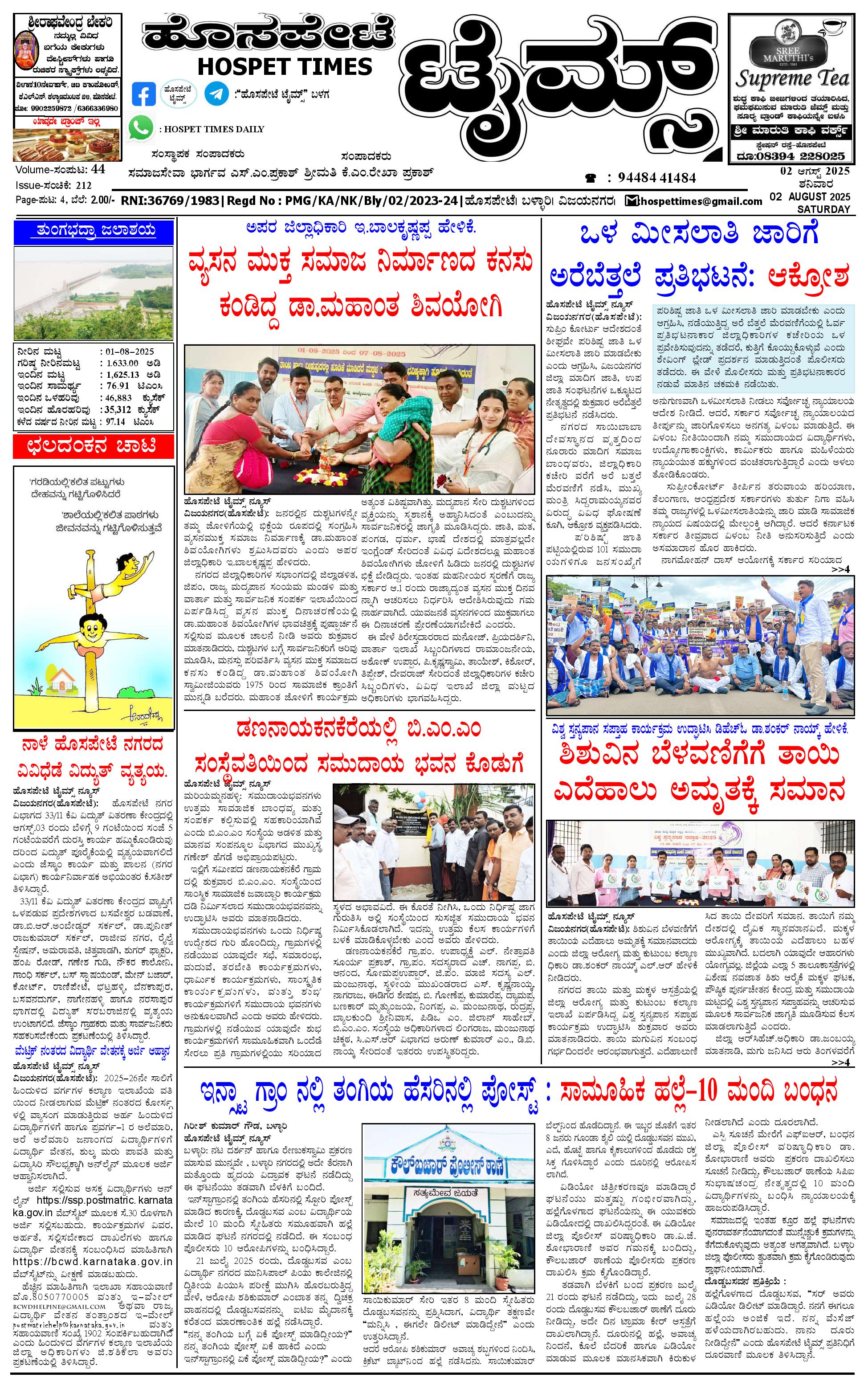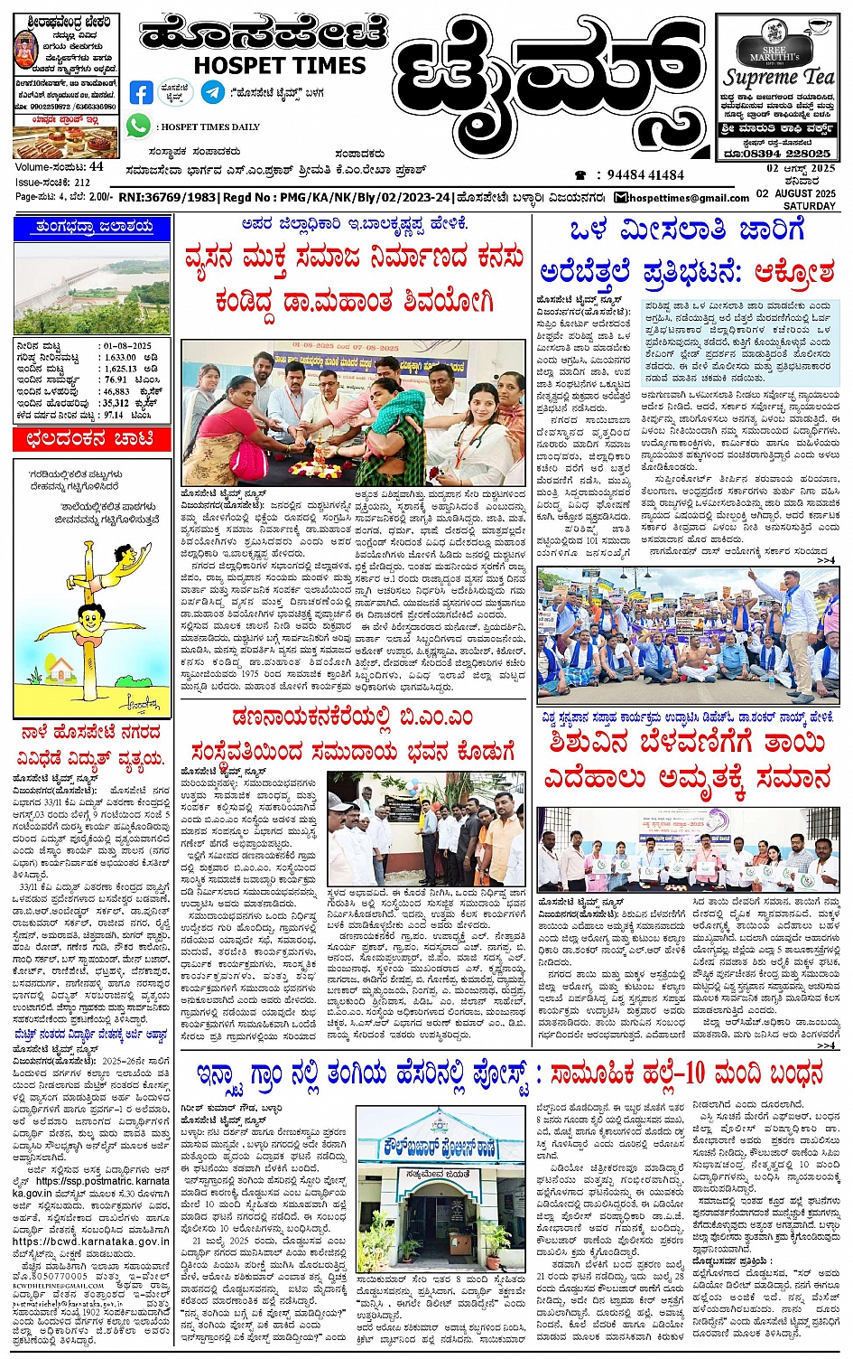 ಮಾಧ್ಯಮ ಅಕಾಡೆಮಿ ಪ್ರಶಸ್ತಿ ಪುರಸ್ಕೃತ 'ಹೊಸಪೇಟೆ ಟೈಮ್ಸ್' August 02, 2025 << First << 1 >> Last >> Page 1Page 2Page 3Page 4 × ಮಾಧ್ಯಮ ಅಕಾಡೆಮಿ ಪ್ರಶಸ್ತಿ ಪುರಸ್ಕೃತ 'ಹೊಸಪೇಟೆ ಟೈಮ್ಸ್' HPT-02082025--4-page-001HPT-02082025--4-page-002HPT-02082025--4-page-003HPT-02082025--4-page-004 << First << 1 >> Last >> HPT-02082025--4-page-001HPT-02082025--4-page-002HPT-02082025--4-page-003HPT-02082025--4-page-004 HPT-02082025--4-page-001