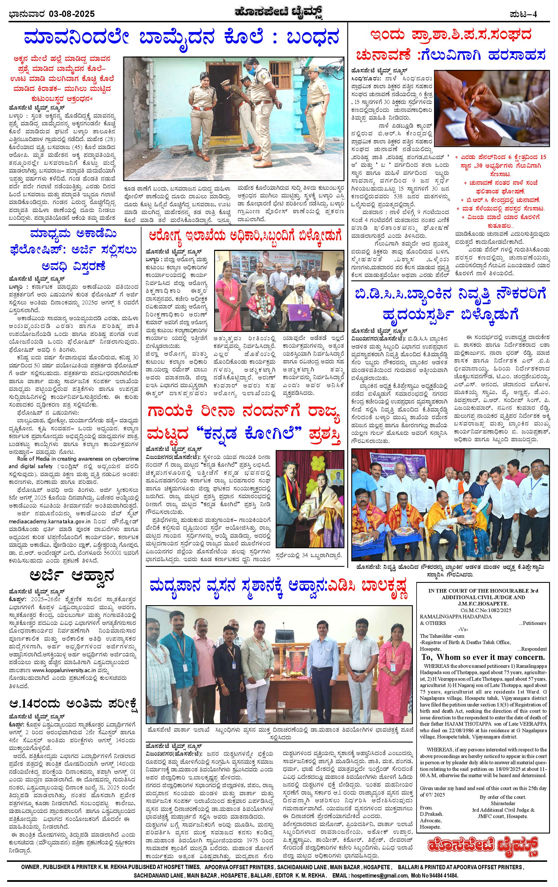 ಮಾಧ್ಯಮ ಅಕಾಡೆಮಿ ಪ್ರಶಸ್ತಿ ಪುರಸ್ಕೃತ 'ಹೊಸಪೇಟೆ ಟೈಮ್ಸ್' Page: 4 August 03, 2025 ಸ್ಥಳೀಯ ಸುದ್ದಿಗಳ ಪ್ರತಿಬಿಂಬ << First << 4 >> Last >> Page 1Page 2Page 3Page 4 × ಮಾಧ್ಯಮ ಅಕಾಡೆಮಿ ಪ್ರಶಸ್ತಿ ಪುರಸ್ಕೃತ 'ಹೊಸಪೇಟೆ ಟೈಮ್ಸ್' HPT03082025-page-001HPT03082025-page-002HPT03082025-page-003HPT03082025-page-004 << First << 4 >> Last >> HPT03082025-page-001HPT03082025-page-002HPT03082025-page-003HPT03082025-page-004 HPT03082025-page-004