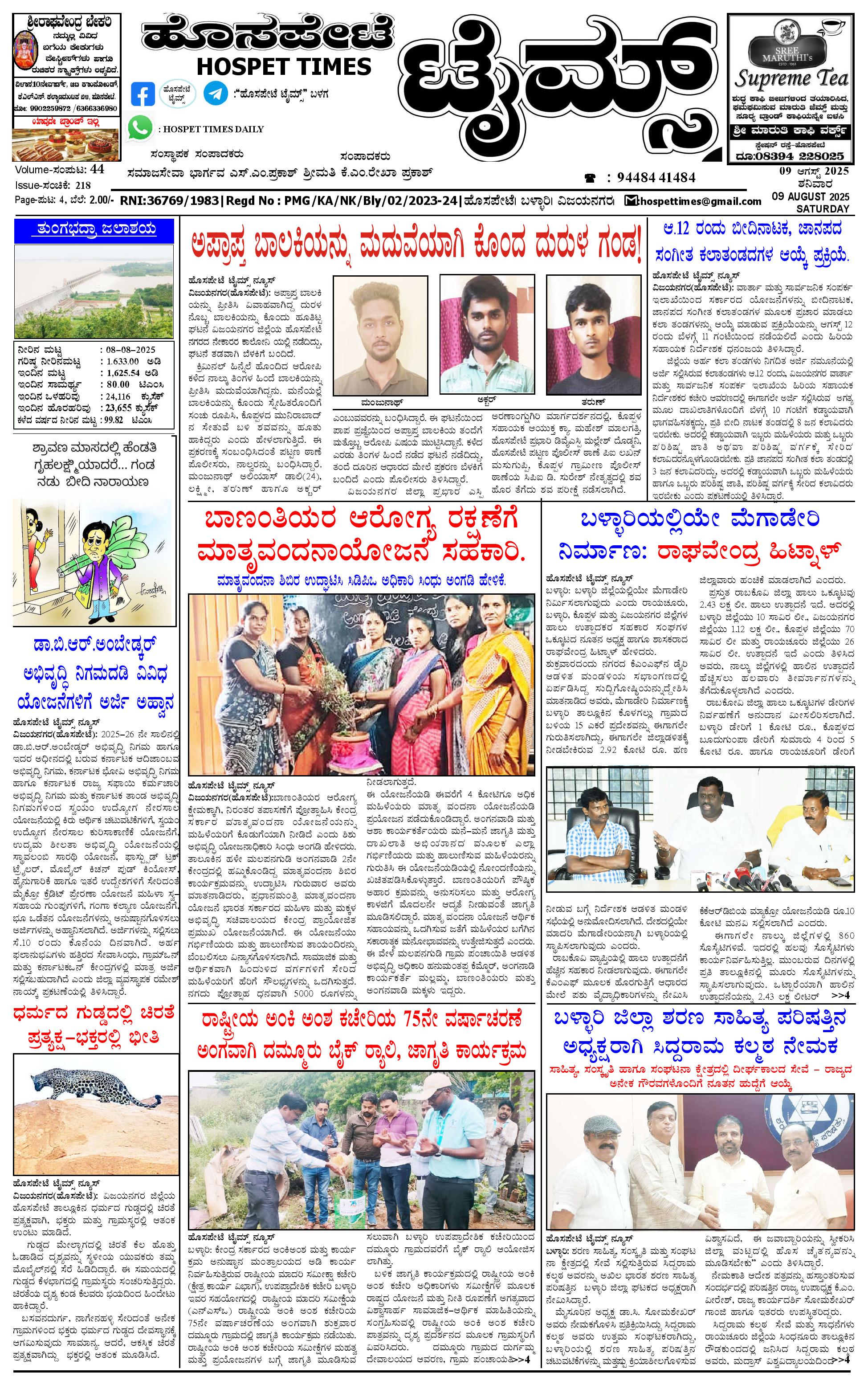 ಮಾಧ್ಯಮ ಅಕಾಡೆಮಿ ಪ್ರಶಸ್ತಿ ಪುರಸ್ಕೃತ 'ಹೊಸಪೇಟೆ ಟೈಮ್ಸ್' August 09, 2025 << First << 1 >> Last >> Page 1Page 2Page 3Page 4 × ಮಾಧ್ಯಮ ಅಕಾಡೆಮಿ ಪ್ರಶಸ್ತಿ ಪುರಸ್ಕೃತ 'ಹೊಸಪೇಟೆ ಟೈಮ್ಸ್' HPT-09082025--4-page-001HPT-09082025--4-page-002HPT-09082025--4-page-003HPT-09082025--4-page-004 << First << 1 >> Last >> HPT-09082025--4-page-001HPT-09082025--4-page-002HPT-09082025--4-page-003HPT-09082025--4-page-004 HPT-09082025--4-page-001