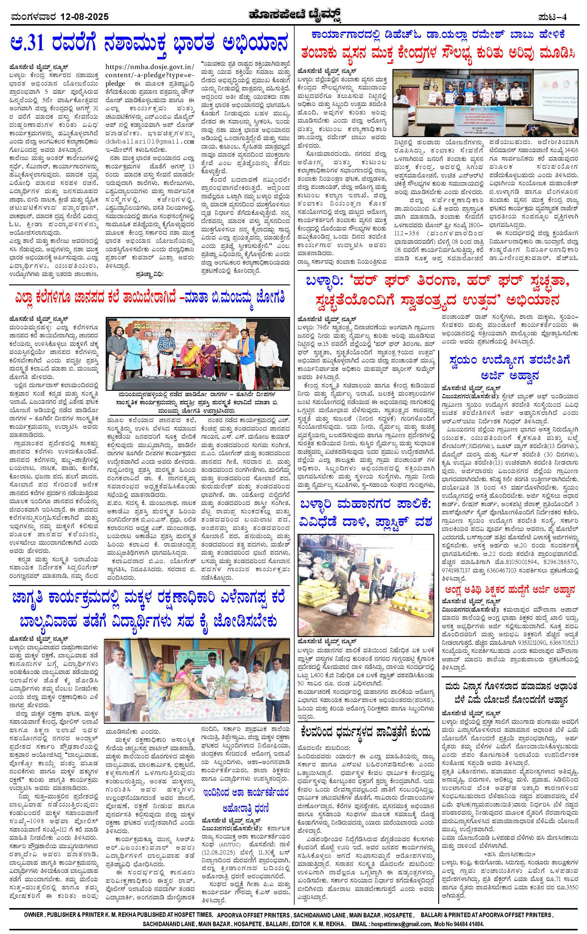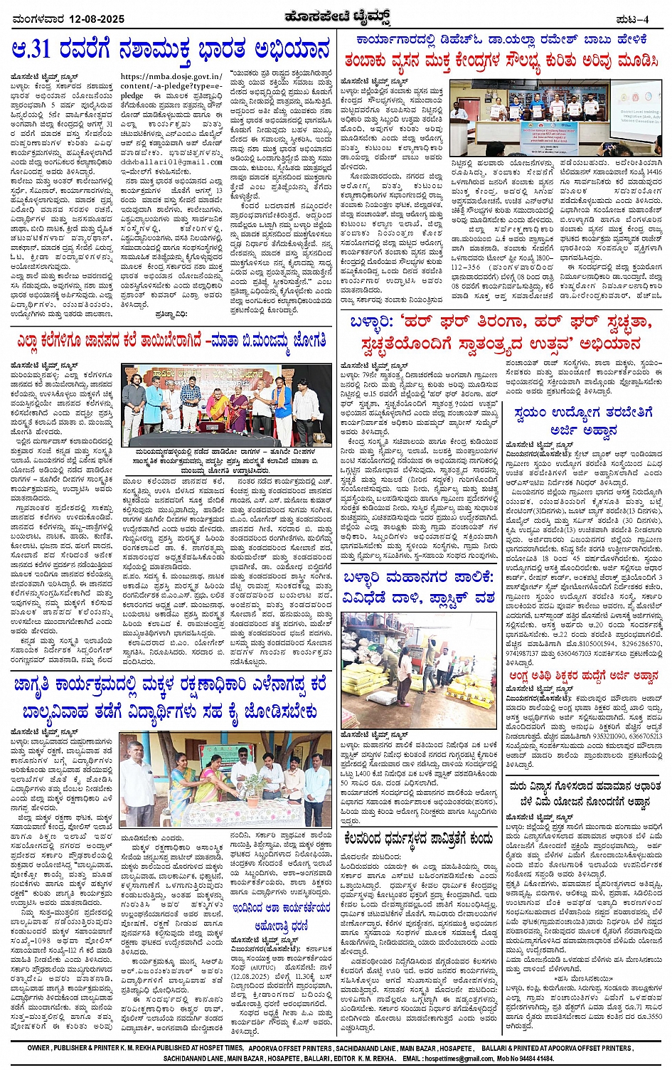 ಮಾಧ್ಯಮ ಅಕಾಡೆಮಿ ಪ್ರಶಸ್ತಿ ಪುರಸ್ಕೃತ 'ಹೊಸಪೇಟೆ ಟೈಮ್ಸ್' Page: 4 August 12, 2025 << First << 4 >> Last >> Page 1Page 2Page 3Page 4 × ಮಾಧ್ಯಮ ಅಕಾಡೆಮಿ ಪ್ರಶಸ್ತಿ ಪುರಸ್ಕೃತ 'ಹೊಸಪೇಟೆ ಟೈಮ್ಸ್' HPT-12082025--4-page-001HPT-12082025--4-page-002HPT-12082025--4-page-003HPT-12082025--4-page-004 << First << 4 >> Last >> HPT-12082025--4-page-001HPT-12082025--4-page-002HPT-12082025--4-page-003HPT-12082025--4-page-004 HPT-12082025--4-page-004
