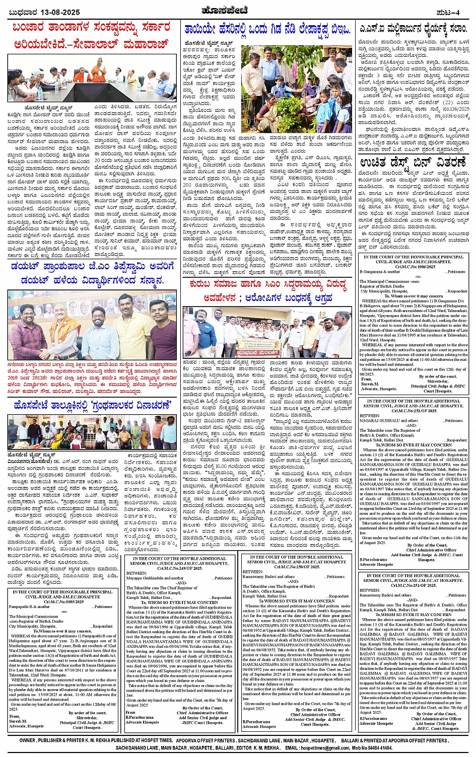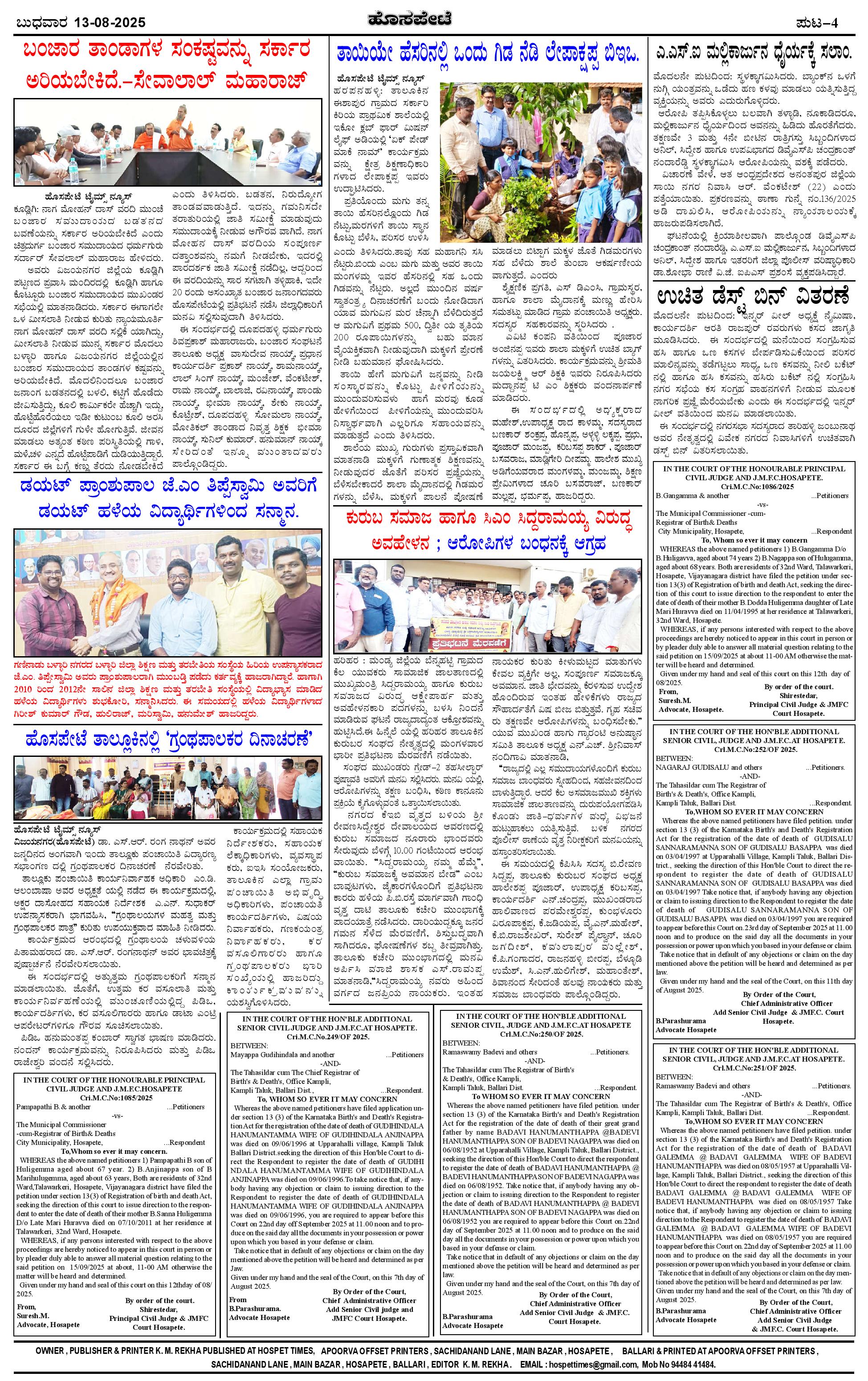 ಮಾಧ್ಯಮ ಅಕಾಡೆಮಿ ಪ್ರಶಸ್ತಿ ಪುರಸ್ಕೃತ 'ಹೊಸಪೇಟೆ ಟೈಮ್ಸ್' Page: 4 August 13, 2025 << First << 4 >> Last >> Page 1Page 2Page 3Page 4 × ಮಾಧ್ಯಮ ಅಕಾಡೆಮಿ ಪ್ರಶಸ್ತಿ ಪುರಸ್ಕೃತ 'ಹೊಸಪೇಟೆ ಟೈಮ್ಸ್' HPT-13082025-4-page-001HPT-13082025-4-page-002HPT-13082025-4-page-003HPT-13082025-4-page-004 << First << 4 >> Last >> HPT-13082025-4-page-001HPT-13082025-4-page-002HPT-13082025-4-page-003HPT-13082025-4-page-004 HPT-13082025-4-page-004