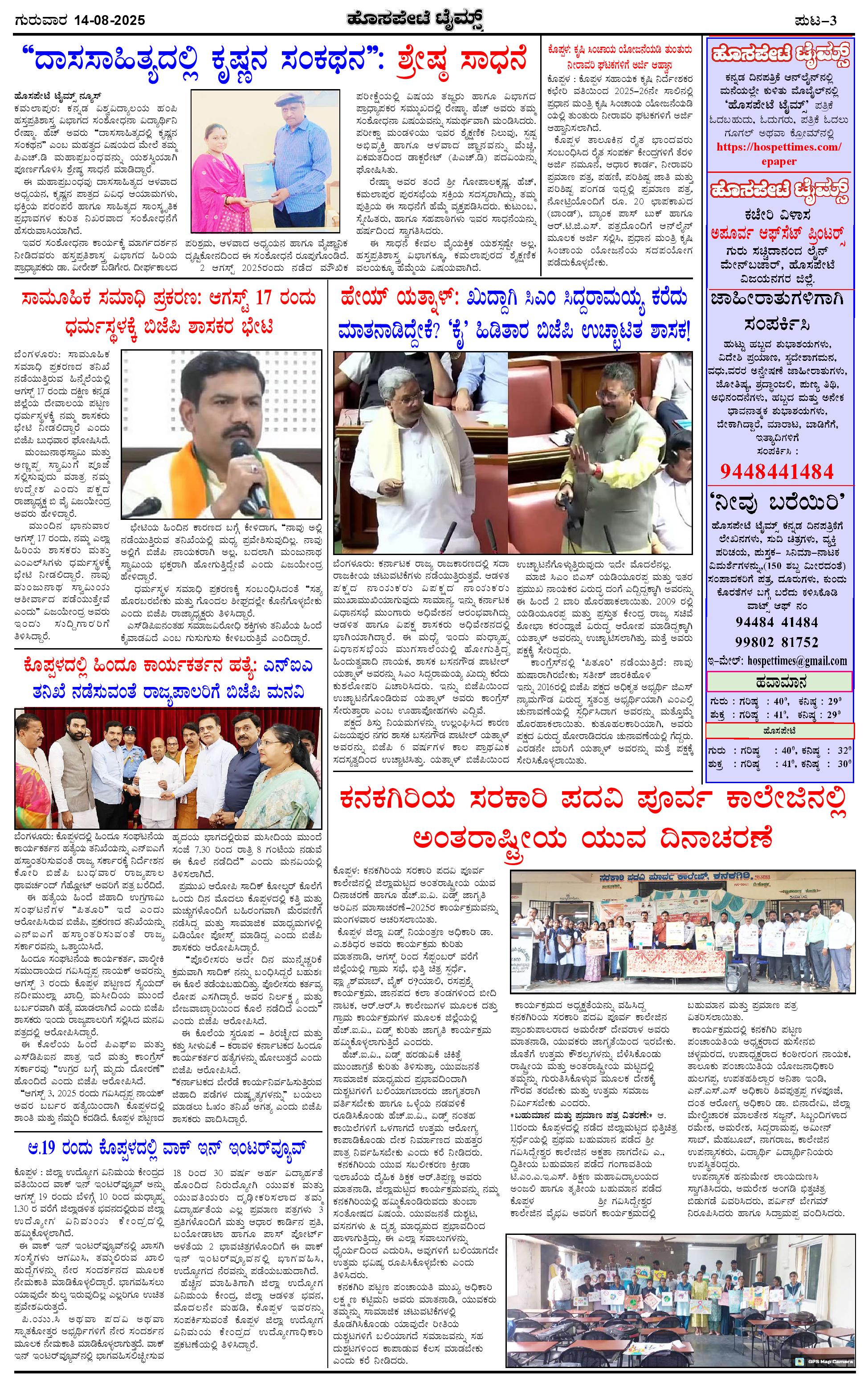 ಮಾಧ್ಯಮ ಅಕಾಡೆಮಿ ಪ್ರಶಸ್ತಿ ಪುರಸ್ಕೃತ 'ಹೊಸಪೇಟೆ ಟೈಮ್ಸ್' Page: 3 August 14, 2025 << First << 3 >> Last >> Page 1Page 2Page 3Page 4 × ಮಾಧ್ಯಮ ಅಕಾಡೆಮಿ ಪ್ರಶಸ್ತಿ ಪುರಸ್ಕೃತ 'ಹೊಸಪೇಟೆ ಟೈಮ್ಸ್' HPT-14082025--4-page-001HPT-14082025--4-page-002HPT-14082025--4-page-003HPT-14082025--4-page-004 << First << 3 >> Last >> HPT-14082025--4-page-001HPT-14082025--4-page-002HPT-14082025--4-page-003HPT-14082025--4-page-004 HPT-14082025--4-page-003