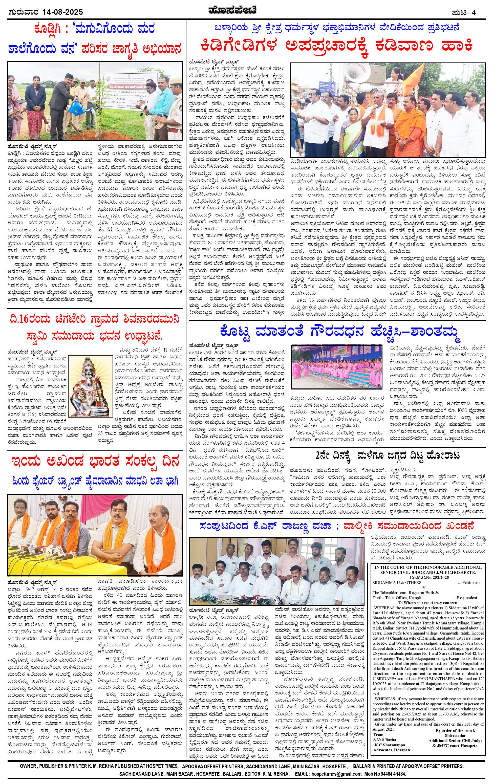 ಮಾಧ್ಯಮ ಅಕಾಡೆಮಿ ಪ್ರಶಸ್ತಿ ಪುರಸ್ಕೃತ 'ಹೊಸಪೇಟೆ ಟೈಮ್ಸ್' Page: 4 August 14, 2025 << First << 4 >> Last >> Page 1Page 2Page 3Page 4 × ಮಾಧ್ಯಮ ಅಕಾಡೆಮಿ ಪ್ರಶಸ್ತಿ ಪುರಸ್ಕೃತ 'ಹೊಸಪೇಟೆ ಟೈಮ್ಸ್' HPT-14082025--4-page-001HPT-14082025--4-page-002HPT-14082025--4-page-003HPT-14082025--4-page-004 << First << 4 >> Last >> HPT-14082025--4-page-001HPT-14082025--4-page-002HPT-14082025--4-page-003HPT-14082025--4-page-004 HPT-14082025--4-page-004