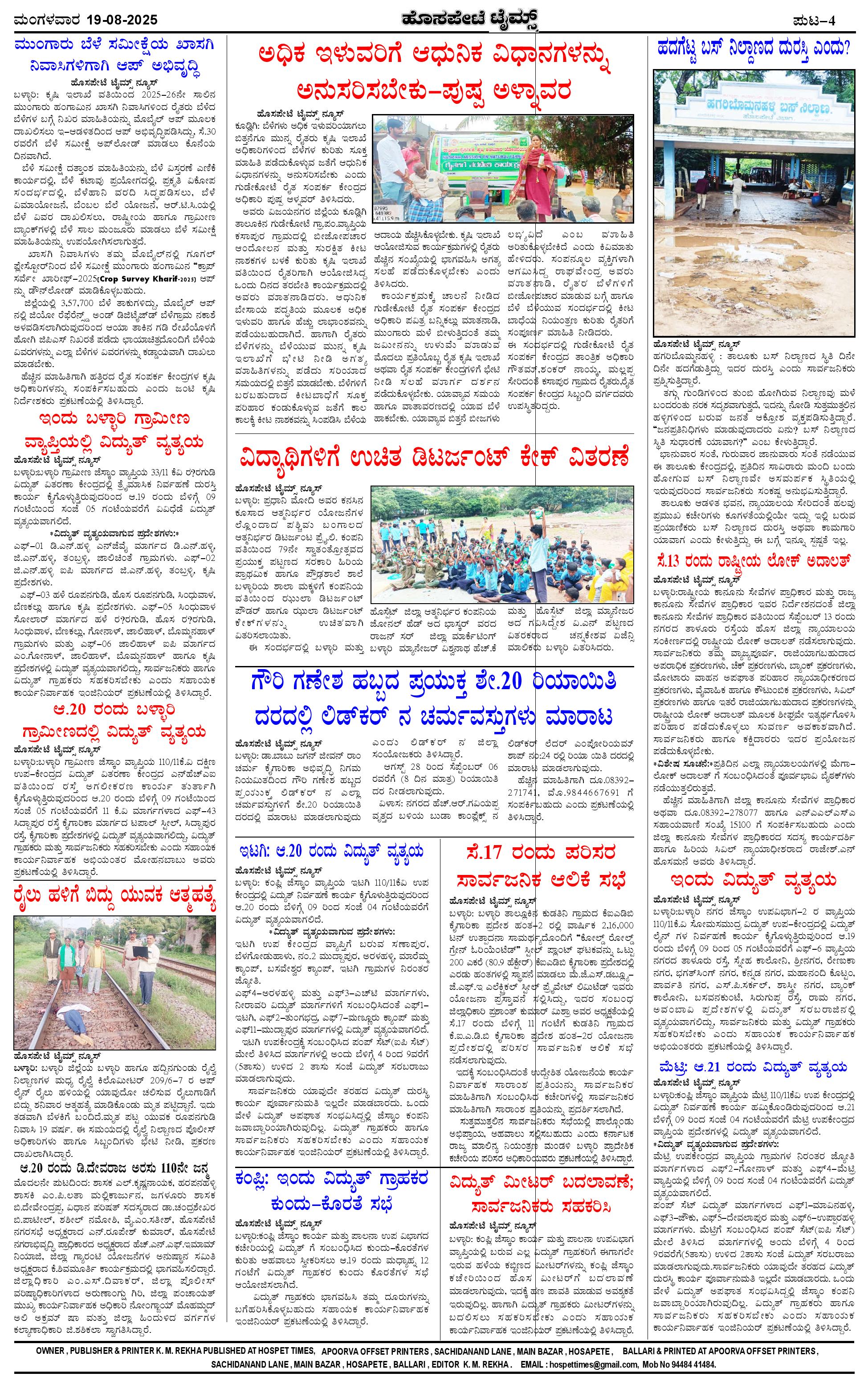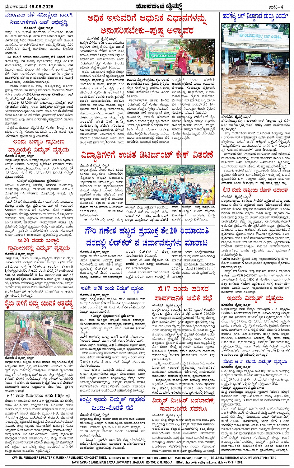 ಮಾಧ್ಯಮ ಅಕಾಡೆಮಿ ಪ್ರಶಸ್ತಿ ಪುರಸ್ಕೃತ 'ಹೊಸಪೇಟೆ ಟೈಮ್ಸ್' Page: 4 August 19, 2025 << First << 4 >> Last >> Page 1Page 2Page 3Page 4 × ಮಾಧ್ಯಮ ಅಕಾಡೆಮಿ ಪ್ರಶಸ್ತಿ ಪುರಸ್ಕೃತ 'ಹೊಸಪೇಟೆ ಟೈಮ್ಸ್' HPT-19082025-page-001HPT-19082025-page-002HPT-19082025-page-003HPT-19082025-page-004 << First << 4 >> Last >> HPT-19082025-page-001HPT-19082025-page-002HPT-19082025-page-003HPT-19082025-page-004 HPT-19082025-page-004