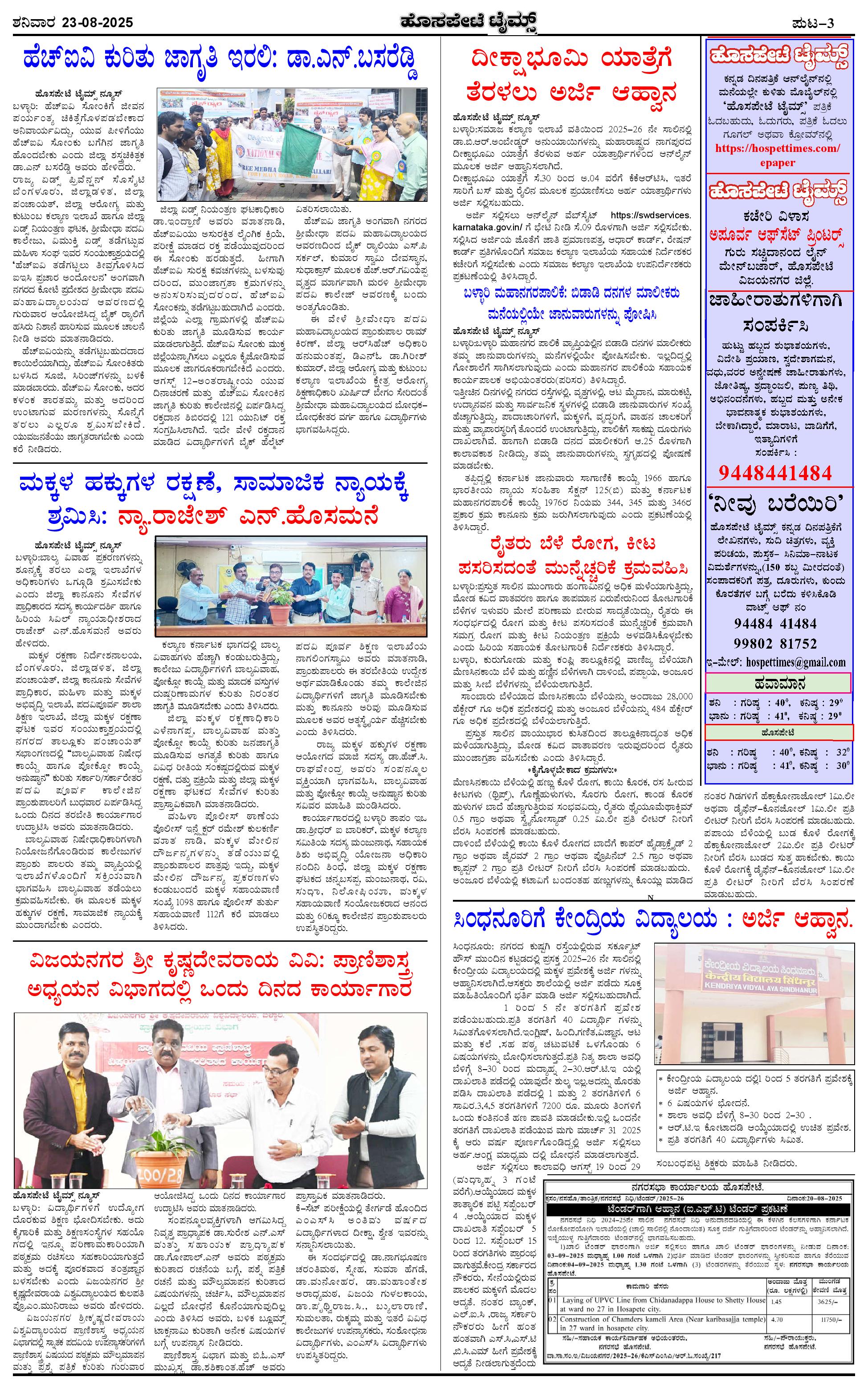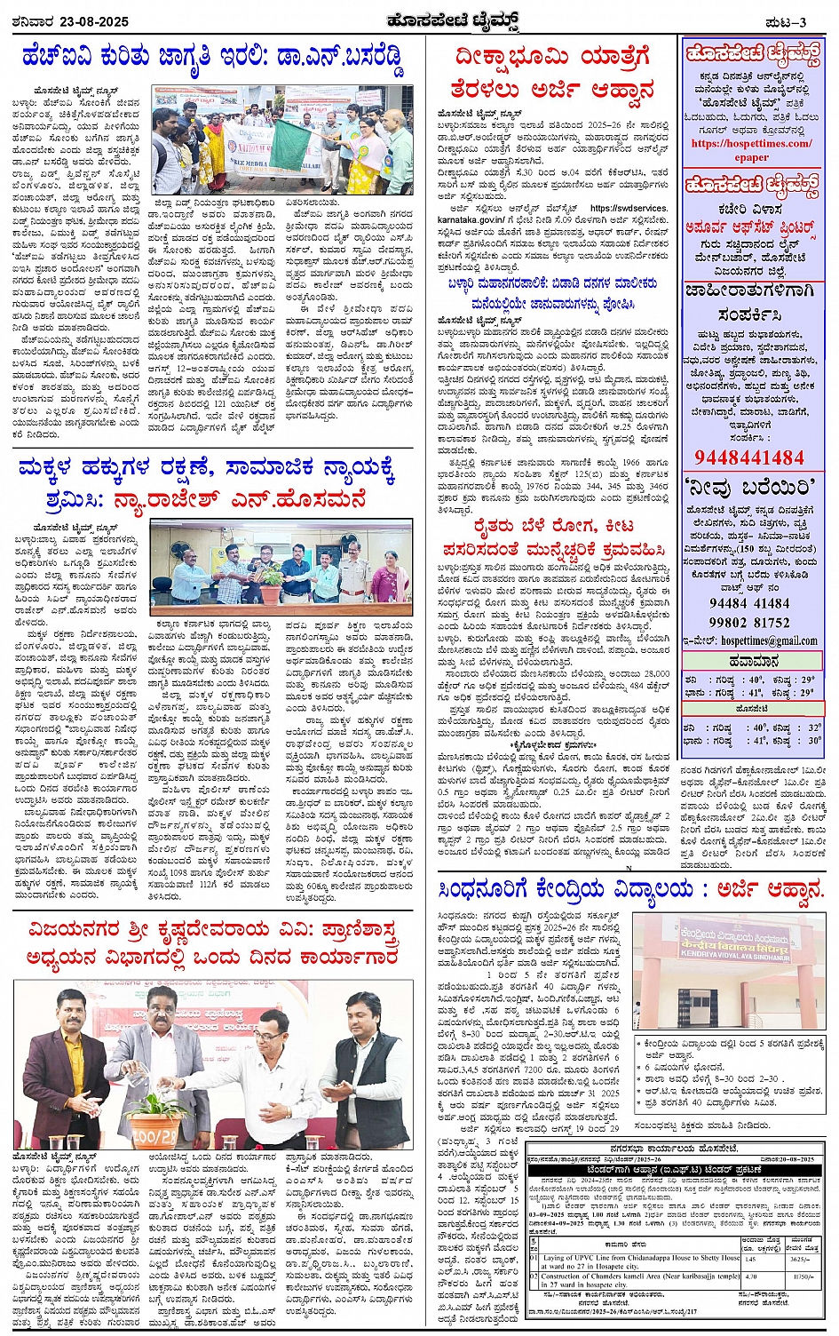 ಮಾಧ್ಯಮ ಅಕಾಡೆಮಿ ಪ್ರಶಸ್ತಿ ಪುರಸ್ಕೃತ 'ಹೊಸಪೇಟೆ ಟೈಮ್ಸ್' Page: 3 August 23, 2025 << First << 3 >> Last >> Page 1Page 2Page 3Page 4 × ಮಾಧ್ಯಮ ಅಕಾಡೆಮಿ ಪ್ರಶಸ್ತಿ ಪುರಸ್ಕೃತ 'ಹೊಸಪೇಟೆ ಟೈಮ್ಸ್' HPT-23082025--4-page-001HPT-23082025--4-page-002HPT-23082025--4-page-003HPT-23082025--4-page-004 << First << 3 >> Last >> HPT-23082025--4-page-001HPT-23082025--4-page-002HPT-23082025--4-page-003HPT-23082025--4-page-004 HPT-23082025--4-page-003