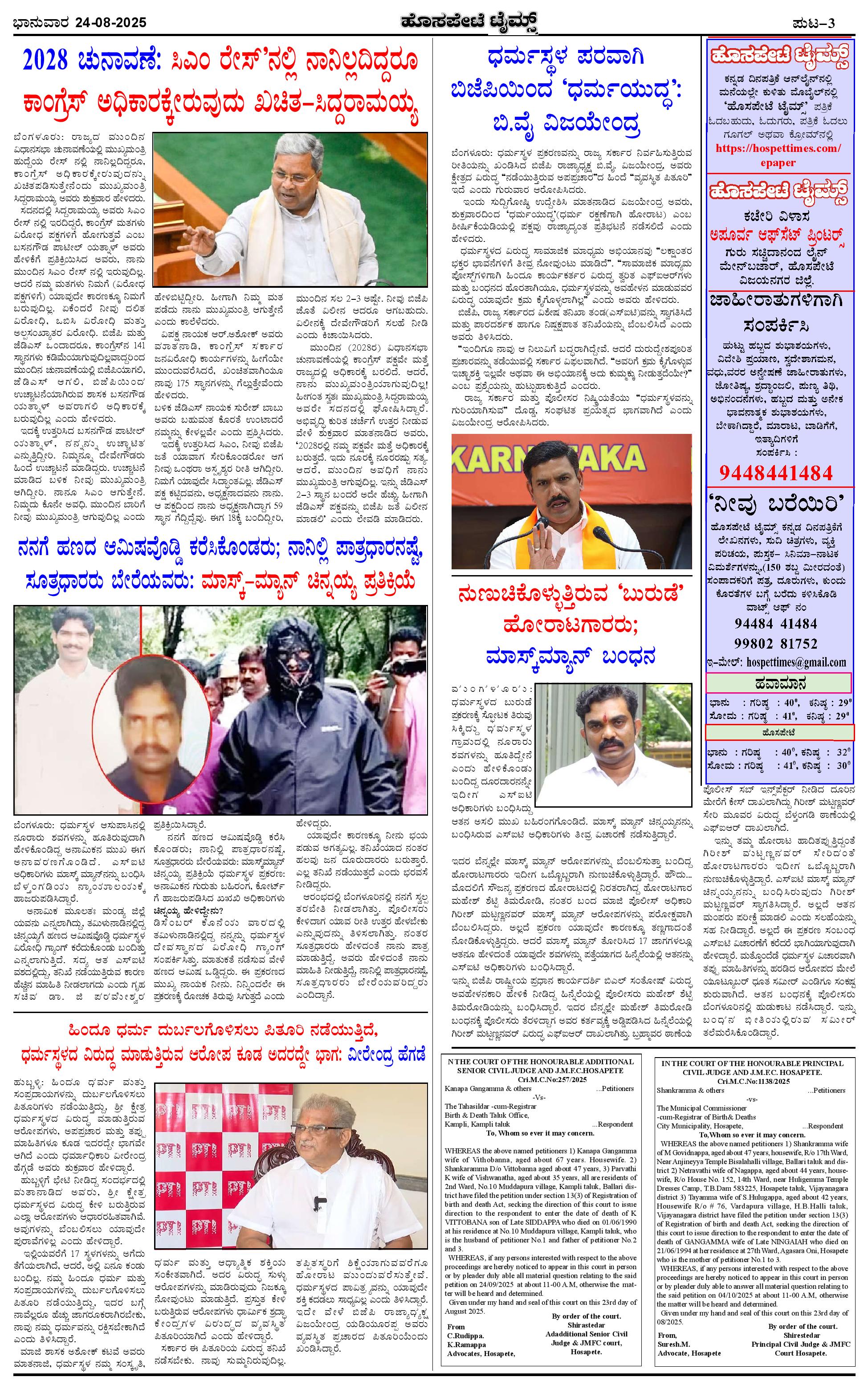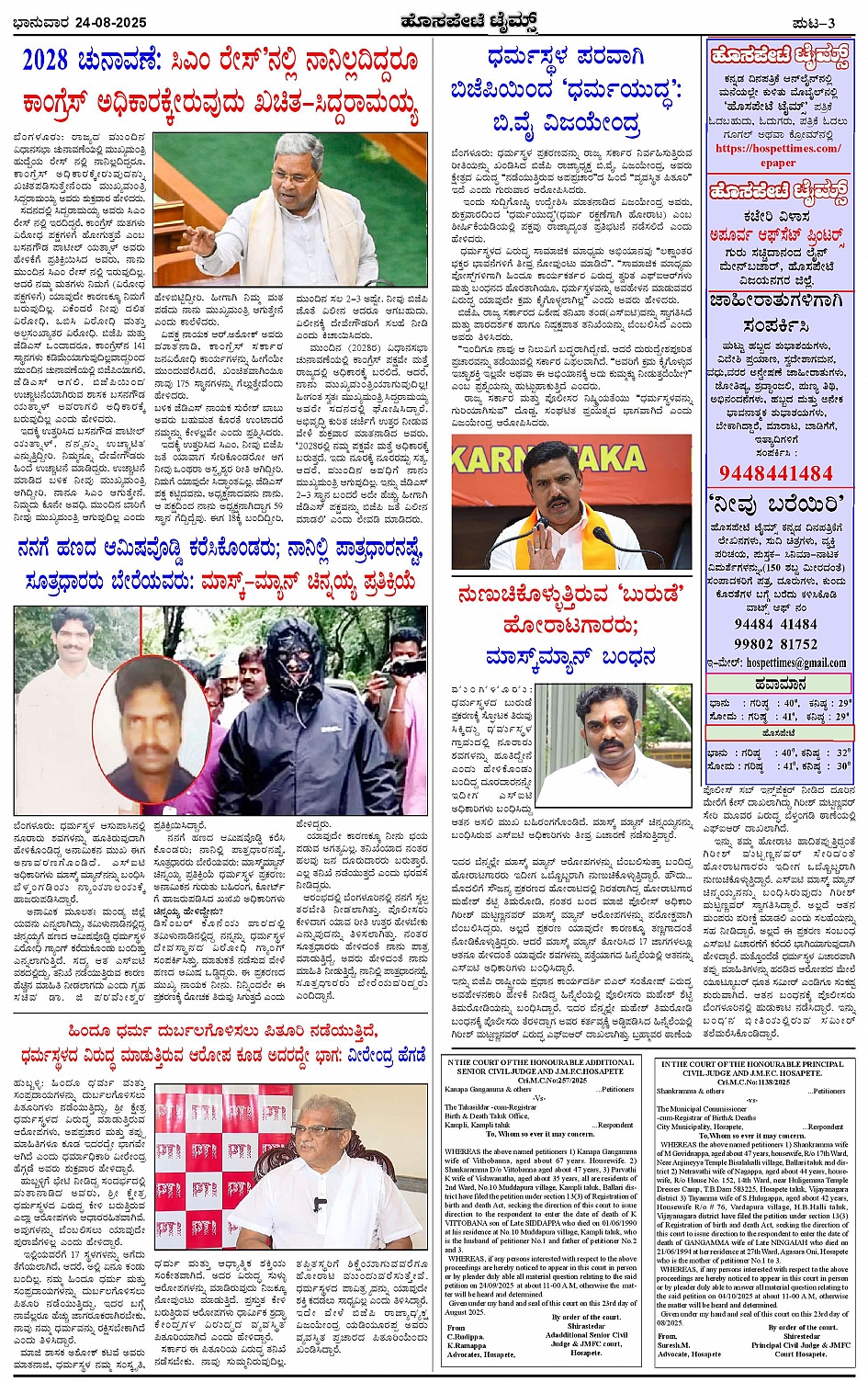 ಮಾಧ್ಯಮ ಅಕಾಡೆಮಿ ಪ್ರಶಸ್ತಿ ಪುರಸ್ಕೃತ 'ಹೊಸಪೇಟೆ ಟೈಮ್ಸ್' Page: 3 August 24, 2025 << First << 3 >> Last >> Page 1Page 2Page 3Page 4 × ಮಾಧ್ಯಮ ಅಕಾಡೆಮಿ ಪ್ರಶಸ್ತಿ ಪುರಸ್ಕೃತ 'ಹೊಸಪೇಟೆ ಟೈಮ್ಸ್' HPT-24082025--4-page-001HPT-24082025--4-page-002HPT-24082025--4-page-003HPT-24082025--4-page-004 << First << 3 >> Last >> HPT-24082025--4-page-001HPT-24082025--4-page-002HPT-24082025--4-page-003HPT-24082025--4-page-004 HPT-24082025--4-page-003