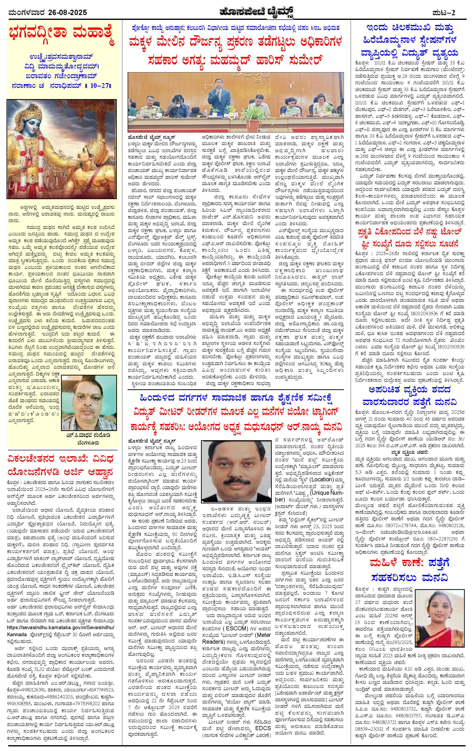 ಮಾಧ್ಯಮ ಅಕಾಡೆಮಿ ಪ್ರಶಸ್ತಿ ಪುರಸ್ಕೃತ 'ಹೊಸಪೇಟೆ ಟೈಮ್ಸ್' Page: 2 August 26, 2025 << First << 2 >> Last >> Page 1Page 2Page 3Page 4 × ಮಾಧ್ಯಮ ಅಕಾಡೆಮಿ ಪ್ರಶಸ್ತಿ ಪುರಸ್ಕೃತ 'ಹೊಸಪೇಟೆ ಟೈಮ್ಸ್' HPT-26082025-4-page-001HPT-26082025-4-page-002HPT-26082025-4-page-003HPT-26082025-4-page-004 << First << 2 >> Last >> HPT-26082025-4-page-001HPT-26082025-4-page-002HPT-26082025-4-page-003HPT-26082025-4-page-004 HPT-26082025-4-page-002