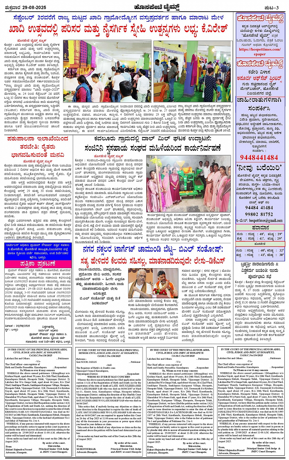 ಮಾಧ್ಯಮ ಅಕಾಡೆಮಿ ಪ್ರಶಸ್ತಿ ಪುರಸ್ಕೃತ 'ಹೊಸಪೇಟೆ ಟೈಮ್ಸ್' Page: 3 August 29, 2025 << First << 3 >> Last >> Page 1Page 2Page 3Page 4 × ಮಾಧ್ಯಮ ಅಕಾಡೆಮಿ ಪ್ರಶಸ್ತಿ ಪುರಸ್ಕೃತ 'ಹೊಸಪೇಟೆ ಟೈಮ್ಸ್' HPT-29082025-4 PAGE-page-001HPT-29082025-4 PAGE-page-002HPT-29082025-4 PAGE-page-003HPT-29082025-4 PAGE-page-004 << First << 3 >> Last >> HPT-29082025-4 PAGE-page-001HPT-29082025-4 PAGE-page-002HPT-29082025-4 PAGE-page-003HPT-29082025-4 PAGE-page-004 HPT-29082025-4 PAGE-page-003