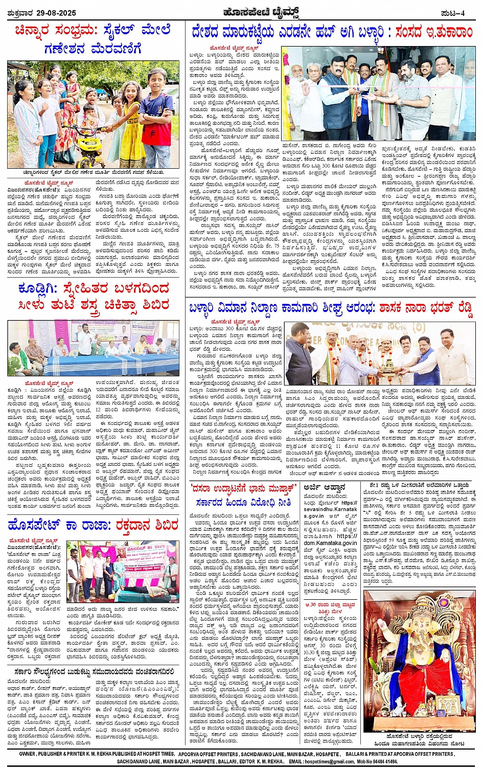 ಮಾಧ್ಯಮ ಅಕಾಡೆಮಿ ಪ್ರಶಸ್ತಿ ಪುರಸ್ಕೃತ 'ಹೊಸಪೇಟೆ ಟೈಮ್ಸ್' Page: 4 August 29, 2025 << First << 4 >> Last >> Page 1Page 2Page 3Page 4 × ಮಾಧ್ಯಮ ಅಕಾಡೆಮಿ ಪ್ರಶಸ್ತಿ ಪುರಸ್ಕೃತ 'ಹೊಸಪೇಟೆ ಟೈಮ್ಸ್' HPT-29082025-4 PAGE-page-001HPT-29082025-4 PAGE-page-002HPT-29082025-4 PAGE-page-003HPT-29082025-4 PAGE-page-004 << First << 4 >> Last >> HPT-29082025-4 PAGE-page-001HPT-29082025-4 PAGE-page-002HPT-29082025-4 PAGE-page-003HPT-29082025-4 PAGE-page-004 HPT-29082025-4 PAGE-page-004