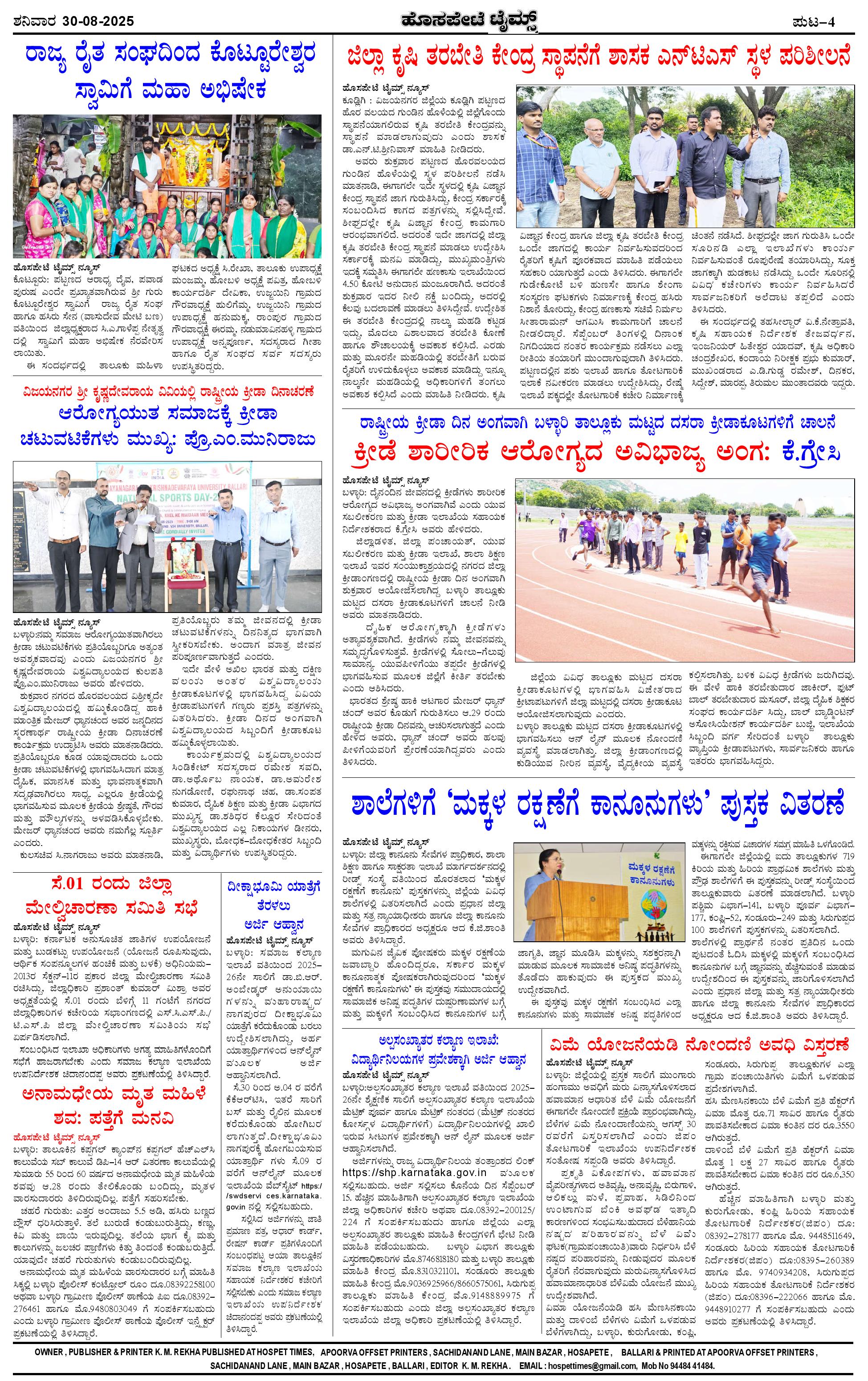 ಮಾಧ್ಯಮ ಅಕಾಡೆಮಿ ಪ್ರಶಸ್ತಿ ಪುರಸ್ಕೃತ 'ಹೊಸಪೇಟೆ ಟೈಮ್ಸ್' Page: 4 August 30, 2025 << First << 4 >> Last >> Page 1Page 2Page 3Page 4 × ಮಾಧ್ಯಮ ಅಕಾಡೆಮಿ ಪ್ರಶಸ್ತಿ ಪುರಸ್ಕೃತ 'ಹೊಸಪೇಟೆ ಟೈಮ್ಸ್' HPT-30082025--4-page-001HPT-30082025--4-page-002HPT-30082025--4-page-003HPT-30082025--4-page-004 << First << 4 >> Last >> HPT-30082025--4-page-001HPT-30082025--4-page-002HPT-30082025--4-page-003HPT-30082025--4-page-004 HPT-30082025--4-page-004