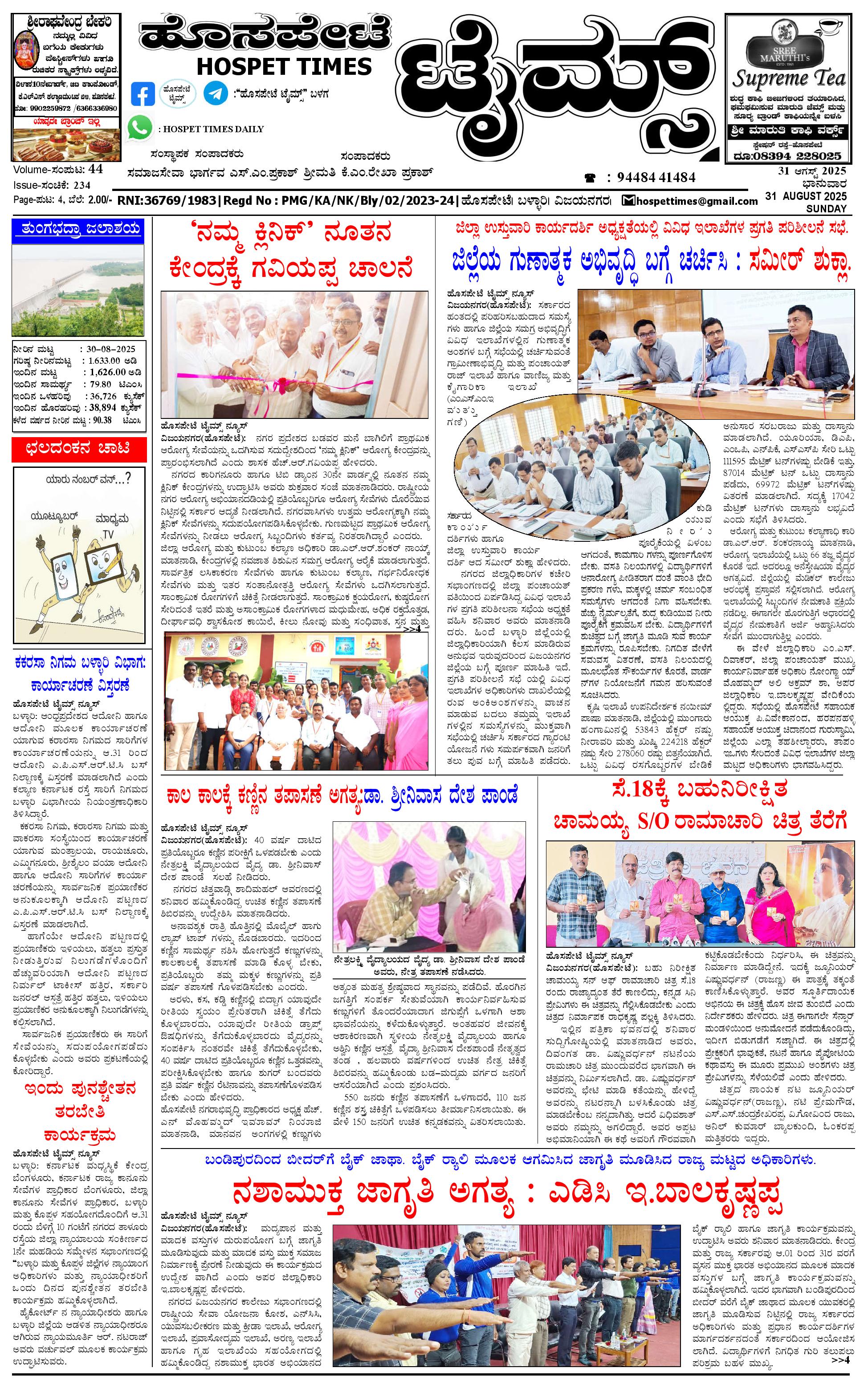 ಮಾಧ್ಯಮ ಅಕಾಡೆಮಿ ಪ್ರಶಸ್ತಿ ಪುರಸ್ಕೃತ 'ಹೊಸಪೇಟೆ ಟೈಮ್ಸ್' August 31, 2025 << First << 1 >> Last >> Page 1Page 2Page 3Page 4 × ಮಾಧ್ಯಮ ಅಕಾಡೆಮಿ ಪ್ರಶಸ್ತಿ ಪುರಸ್ಕೃತ 'ಹೊಸಪೇಟೆ ಟೈಮ್ಸ್' HPT-31082025--4-page-001HPT-31082025--4-page-002HPT-31082025--4-page-003HPT-31082025--4-page-004 << First << 1 >> Last >> HPT-31082025--4-page-001HPT-31082025--4-page-002HPT-31082025--4-page-003HPT-31082025--4-page-004 HPT-31082025--4-page-001