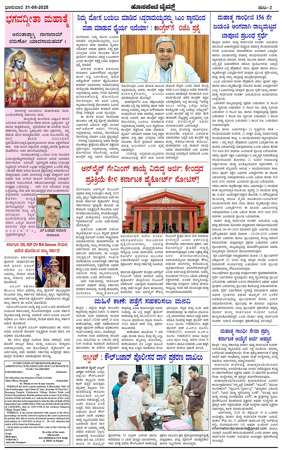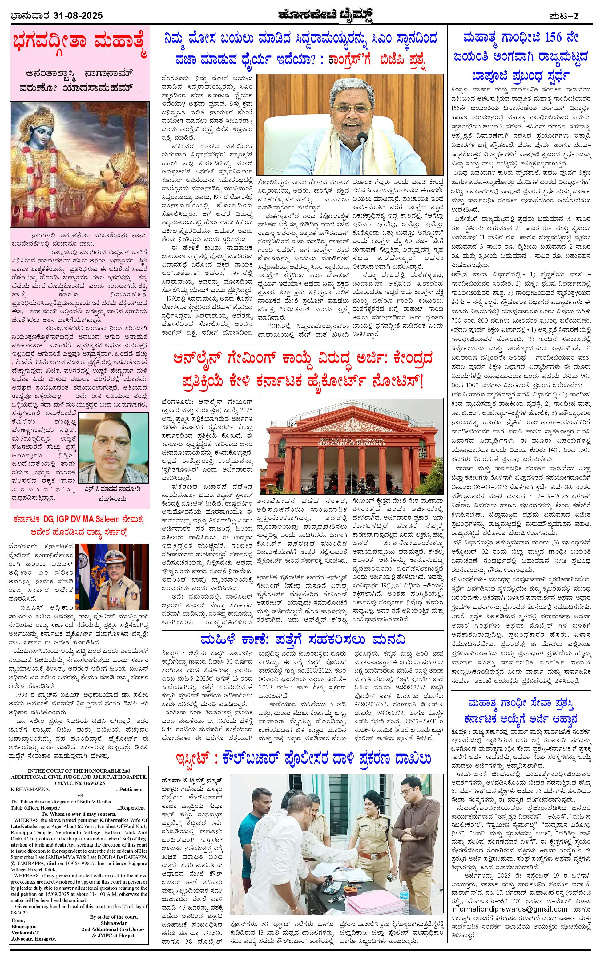 ಮಾಧ್ಯಮ ಅಕಾಡೆಮಿ ಪ್ರಶಸ್ತಿ ಪುರಸ್ಕೃತ 'ಹೊಸಪೇಟೆ ಟೈಮ್ಸ್' Page: 2 August 31, 2025 << First << 2 >> Last >> Page 1Page 2Page 3Page 4 × ಮಾಧ್ಯಮ ಅಕಾಡೆಮಿ ಪ್ರಶಸ್ತಿ ಪುರಸ್ಕೃತ 'ಹೊಸಪೇಟೆ ಟೈಮ್ಸ್' HPT-31082025--4-page-001HPT-31082025--4-page-002HPT-31082025--4-page-003HPT-31082025--4-page-004 << First << 2 >> Last >> HPT-31082025--4-page-001HPT-31082025--4-page-002HPT-31082025--4-page-003HPT-31082025--4-page-004 HPT-31082025--4-page-002