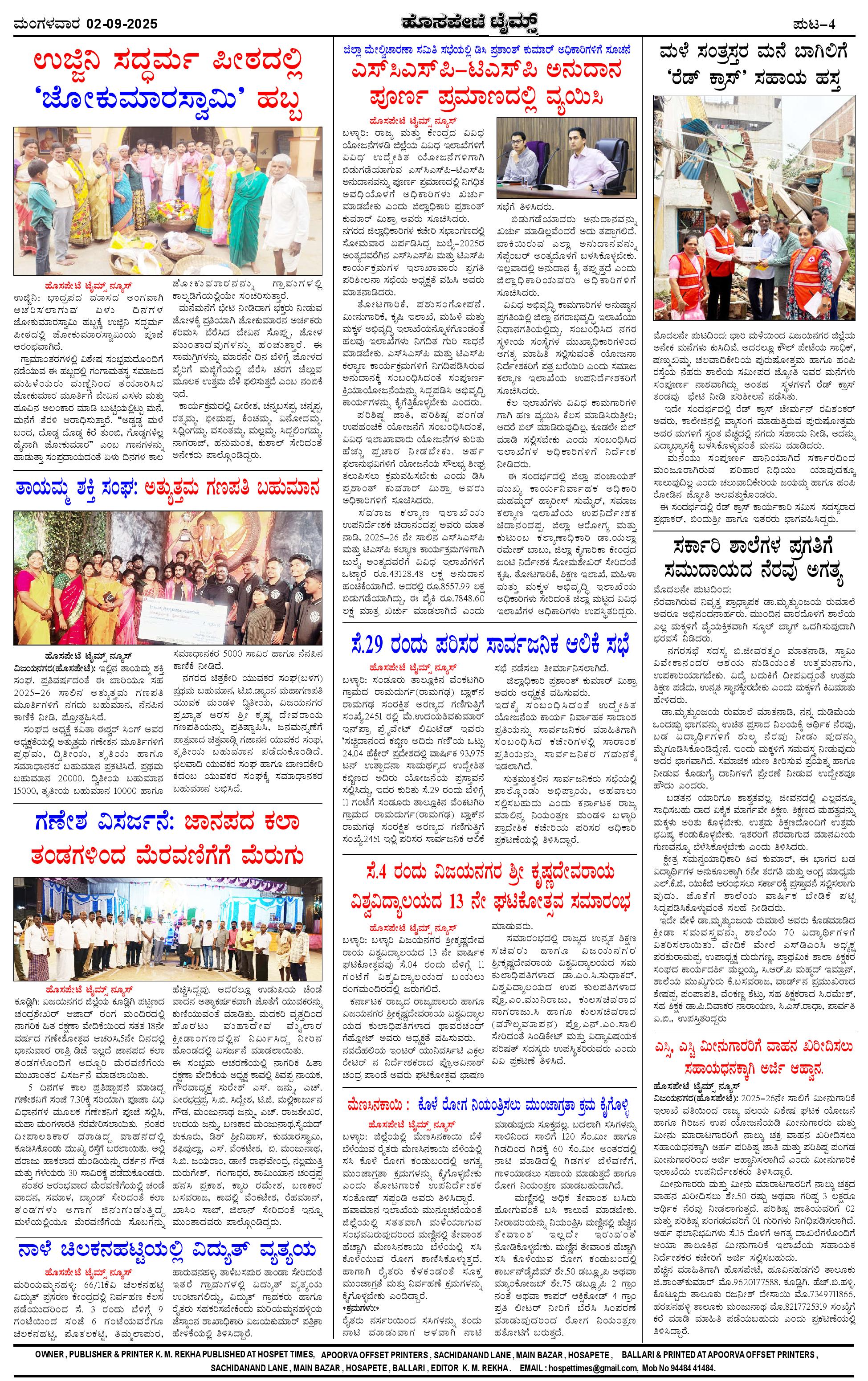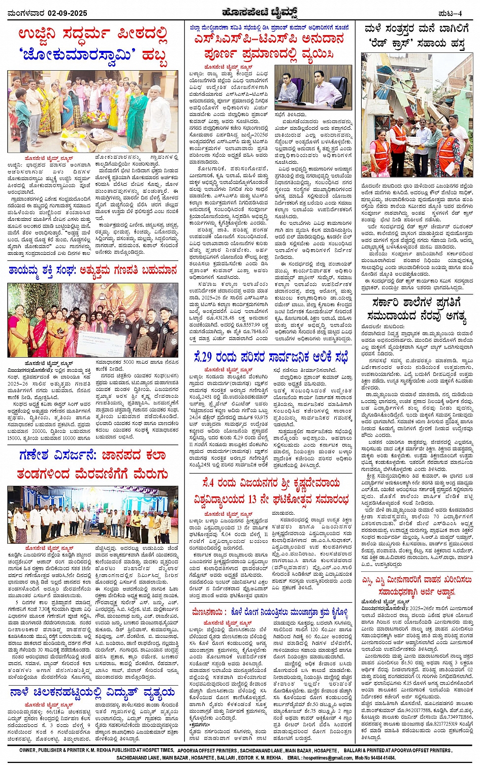 ಮಾಧ್ಯಮ ಅಕಾಡೆಮಿ ಪ್ರಶಸ್ತಿ ಪುರಸ್ಕೃತ 'ಹೊಸಪೇಟೆ ಟೈಮ್ಸ್' Page: 4 September 02, 2025 << First << 4 >> Last >> Page 1Page 2Page 3Page 4 × ಮಾಧ್ಯಮ ಅಕಾಡೆಮಿ ಪ್ರಶಸ್ತಿ ಪುರಸ್ಕೃತ 'ಹೊಸಪೇಟೆ ಟೈಮ್ಸ್' HPT-02092025-4-page-001HPT-02092025-4-page-002HPT-02092025-4-page-003HPT-02092025-4-page-004 << First << 4 >> Last >> HPT-02092025-4-page-001HPT-02092025-4-page-002HPT-02092025-4-page-003HPT-02092025-4-page-004 HPT-02092025-4-page-004