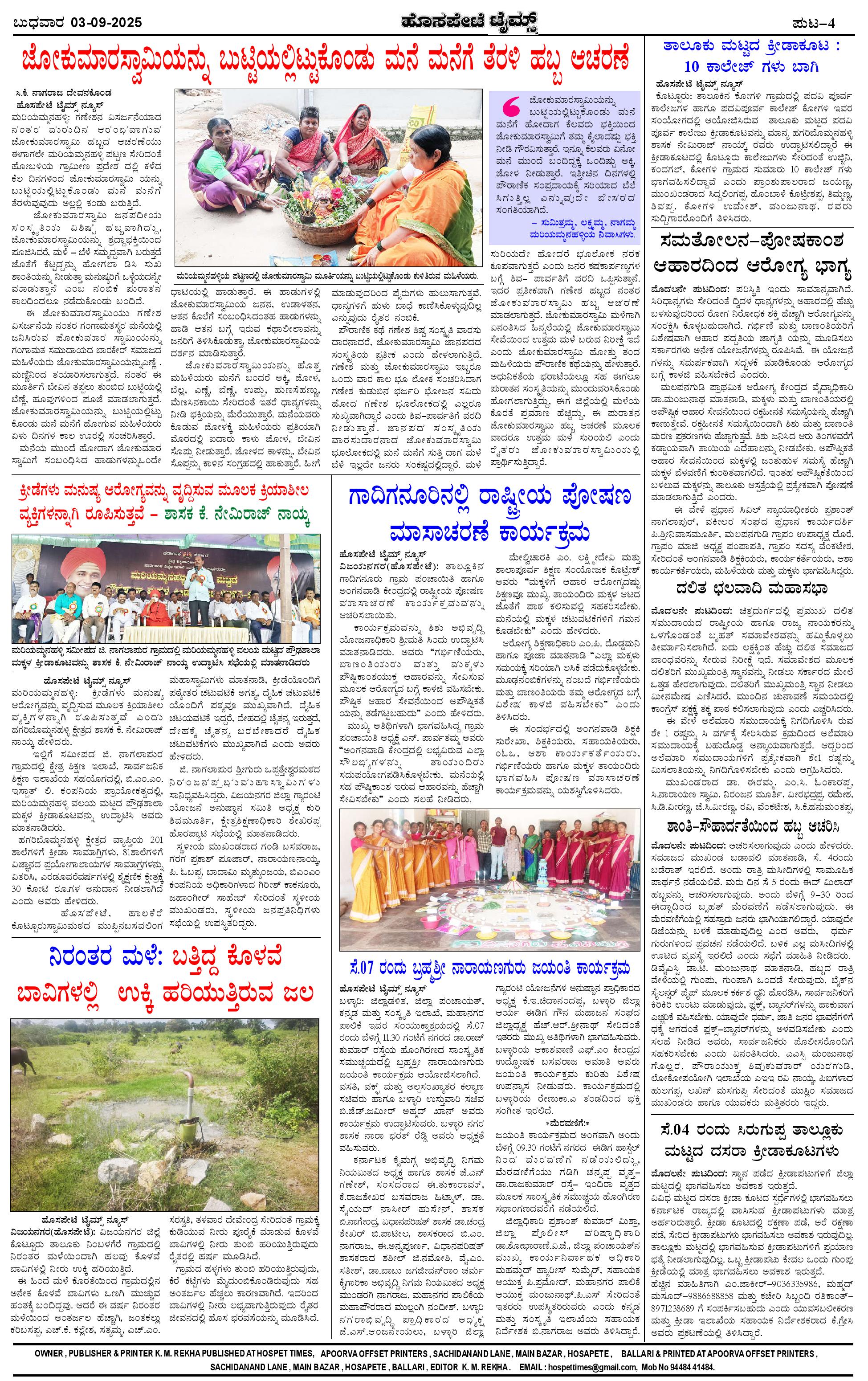ಮಾಧ್ಯಮ ಅಕಾಡೆಮಿ ಪ್ರಶಸ್ತಿ ಪುರಸ್ಕೃತ 'ಹೊಸಪೇಟೆ ಟೈಮ್ಸ್' Page: 4 September 03, 2025 << First << 4 >> Last >> Page 1Page 2Page 3Page 4 × ಮಾಧ್ಯಮ ಅಕಾಡೆಮಿ ಪ್ರಶಸ್ತಿ ಪುರಸ್ಕೃತ 'ಹೊಸಪೇಟೆ ಟೈಮ್ಸ್' HPT-03092025--4-page-001HPT-03092025--4-page-002HPT-03092025--4-page-003HPT-03092025--4-page-004 << First << 4 >> Last >> HPT-03092025--4-page-001HPT-03092025--4-page-002HPT-03092025--4-page-003HPT-03092025--4-page-004 HPT-03092025--4-page-004