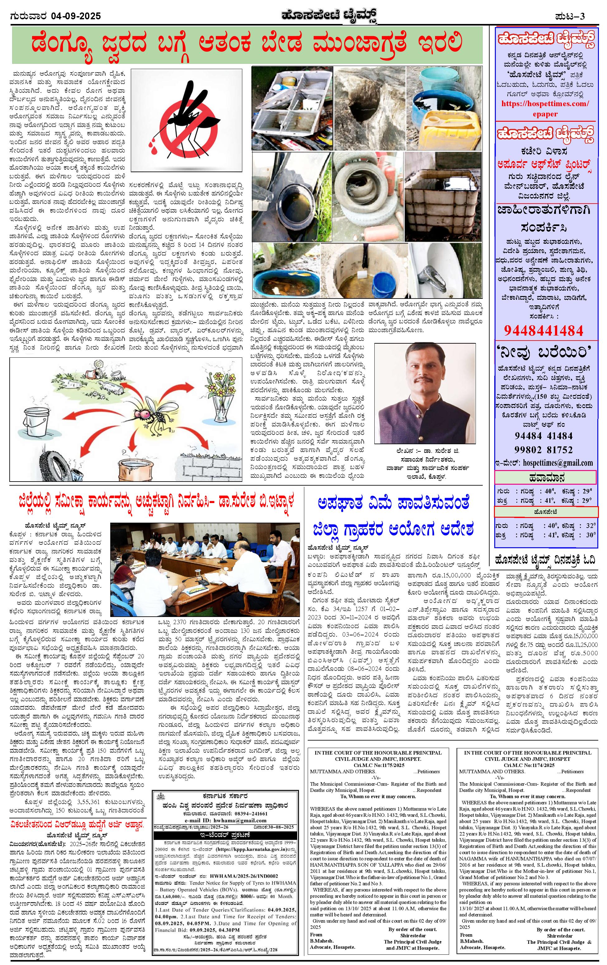 ಮಾಧ್ಯಮ ಅಕಾಡೆಮಿ ಪ್ರಶಸ್ತಿ ಪುರಸ್ಕೃತ 'ಹೊಸಪೇಟೆ ಟೈಮ್ಸ್' Page: 3 September 04, 2025 << First << 3 >> Last >> Page 1Page 2Page 3Page 4 × ಮಾಧ್ಯಮ ಅಕಾಡೆಮಿ ಪ್ರಶಸ್ತಿ ಪುರಸ್ಕೃತ 'ಹೊಸಪೇಟೆ ಟೈಮ್ಸ್' HPT-04092025-4-page-001HPT-04092025-4-page-002HPT-04092025-4-page-003HPT-04092025-4-page-004 << First << 3 >> Last >> HPT-04092025-4-page-001HPT-04092025-4-page-002HPT-04092025-4-page-003HPT-04092025-4-page-004 HPT-04092025-4-page-003