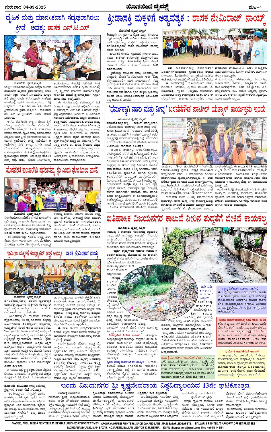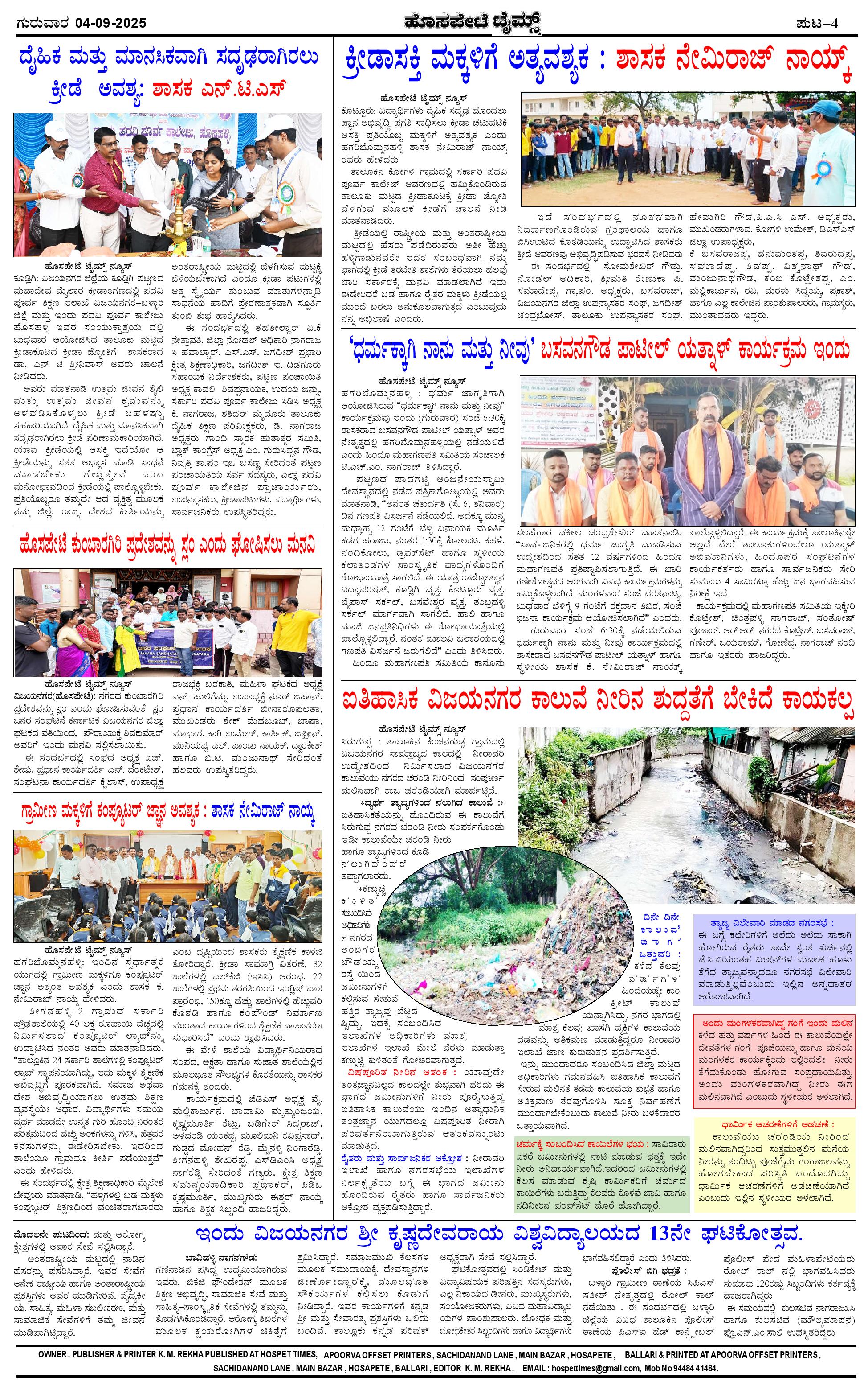 ಮಾಧ್ಯಮ ಅಕಾಡೆಮಿ ಪ್ರಶಸ್ತಿ ಪುರಸ್ಕೃತ 'ಹೊಸಪೇಟೆ ಟೈಮ್ಸ್' Page: 4 September 04, 2025 << First << 4 >> Last >> Page 1Page 2Page 3Page 4 × ಮಾಧ್ಯಮ ಅಕಾಡೆಮಿ ಪ್ರಶಸ್ತಿ ಪುರಸ್ಕೃತ 'ಹೊಸಪೇಟೆ ಟೈಮ್ಸ್' HPT-04092025-4-page-001HPT-04092025-4-page-002HPT-04092025-4-page-003HPT-04092025-4-page-004 << First << 4 >> Last >> HPT-04092025-4-page-001HPT-04092025-4-page-002HPT-04092025-4-page-003HPT-04092025-4-page-004 HPT-04092025-4-page-004