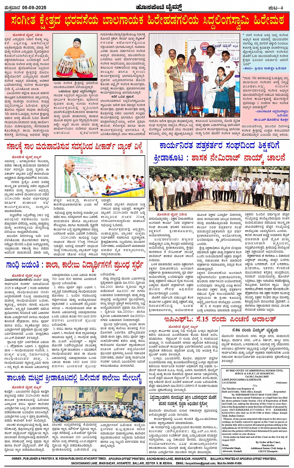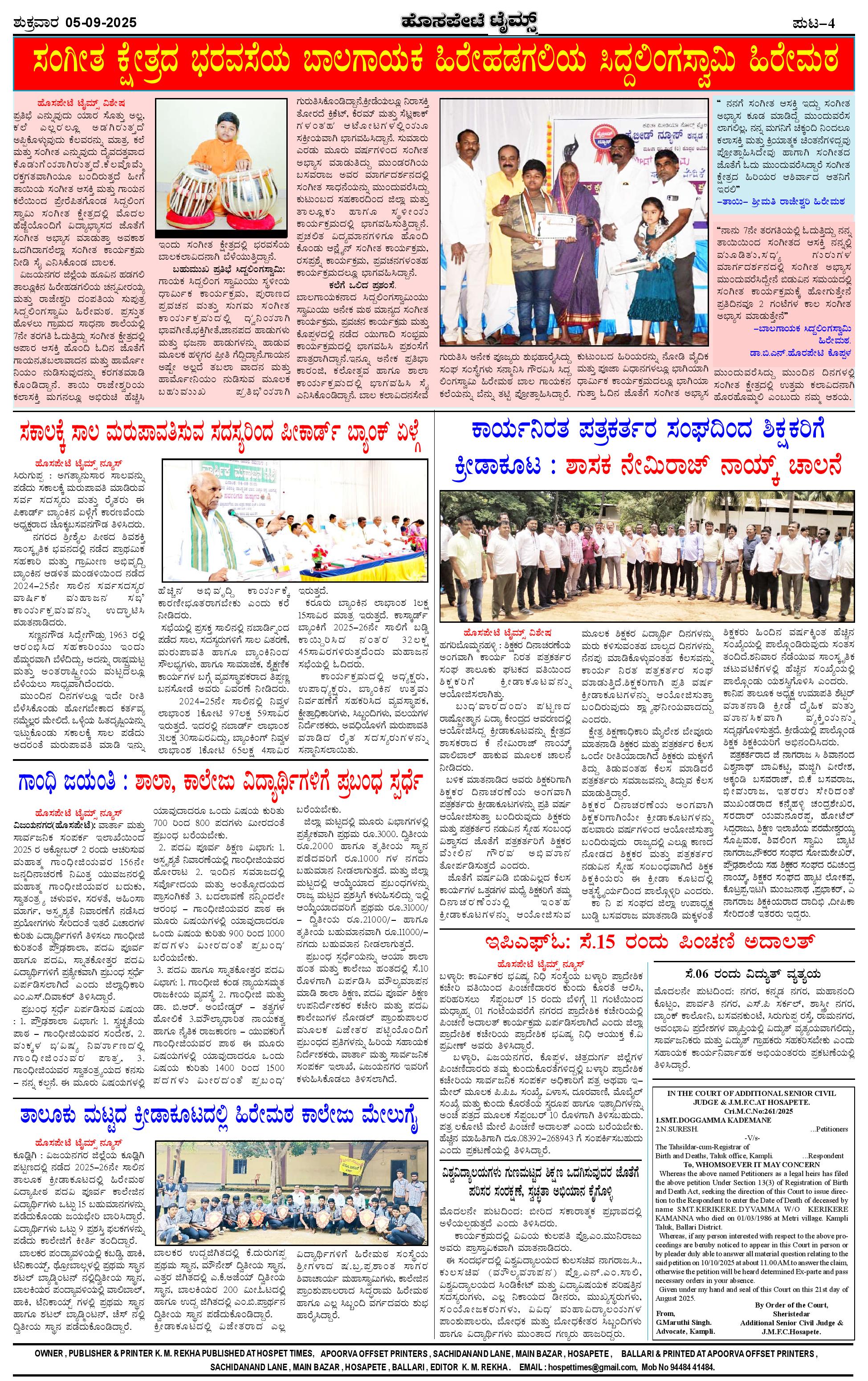 ಮಾಧ್ಯಮ ಅಕಾಡೆಮಿ ಪ್ರಶಸ್ತಿ ಪುರಸ್ಕೃತ 'ಹೊಸಪೇಟೆ ಟೈಮ್ಸ್' Page: 4 September 05, 2025 << First << 4 >> Last >> Page 1Page 2Page 3Page 4 × ಮಾಧ್ಯಮ ಅಕಾಡೆಮಿ ಪ್ರಶಸ್ತಿ ಪುರಸ್ಕೃತ 'ಹೊಸಪೇಟೆ ಟೈಮ್ಸ್' HPT-05092025-4 PAGE-page-001HPT-05092025-4 PAGE-page-002HPT-05092025-4 PAGE-page-003HPT-05092025-4 PAGE-page-004 << First << 4 >> Last >> HPT-05092025-4 PAGE-page-001HPT-05092025-4 PAGE-page-002HPT-05092025-4 PAGE-page-003HPT-05092025-4 PAGE-page-004 HPT-05092025-4 PAGE-page-004