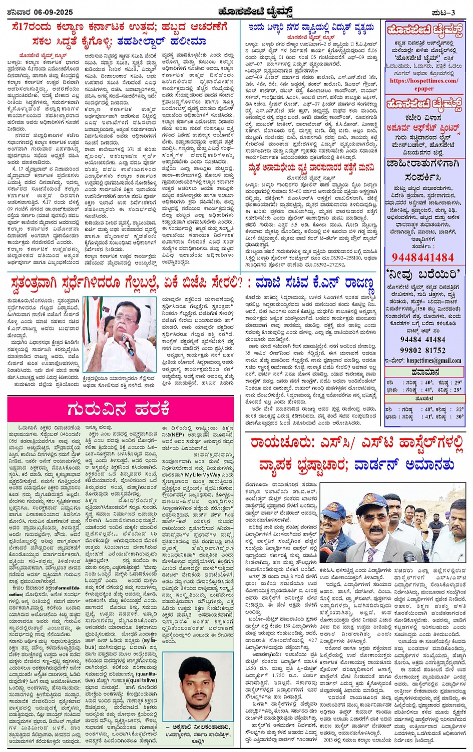 ಮಾಧ್ಯಮ ಅಕಾಡೆಮಿ ಪ್ರಶಸ್ತಿ ಪುರಸ್ಕೃತ 'ಹೊಸಪೇಟೆ ಟೈಮ್ಸ್' Page: 3 September 06, 2025 << First << 3 >> Last >> Page 1Page 2Page 3Page 4 × ಮಾಧ್ಯಮ ಅಕಾಡೆಮಿ ಪ್ರಶಸ್ತಿ ಪುರಸ್ಕೃತ 'ಹೊಸಪೇಟೆ ಟೈಮ್ಸ್' HPT-06092025--4-page-001HPT-06092025--4-page-002HPT-06092025--4-page-003HPT-06092025--4-page-004 << First << 3 >> Last >> HPT-06092025--4-page-001HPT-06092025--4-page-002HPT-06092025--4-page-003HPT-06092025--4-page-004 HPT-06092025--4-page-003