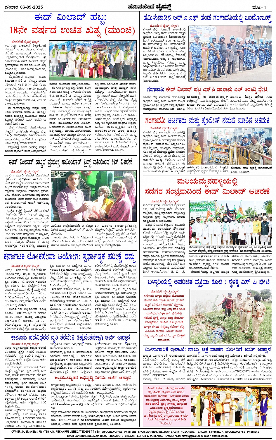 ಮಾಧ್ಯಮ ಅಕಾಡೆಮಿ ಪ್ರಶಸ್ತಿ ಪುರಸ್ಕೃತ 'ಹೊಸಪೇಟೆ ಟೈಮ್ಸ್' Page: 4 September 06, 2025 << First << 4 >> Last >> Page 1Page 2Page 3Page 4 × ಮಾಧ್ಯಮ ಅಕಾಡೆಮಿ ಪ್ರಶಸ್ತಿ ಪುರಸ್ಕೃತ 'ಹೊಸಪೇಟೆ ಟೈಮ್ಸ್' HPT-06092025--4-page-001HPT-06092025--4-page-002HPT-06092025--4-page-003HPT-06092025--4-page-004 << First << 4 >> Last >> HPT-06092025--4-page-001HPT-06092025--4-page-002HPT-06092025--4-page-003HPT-06092025--4-page-004 HPT-06092025--4-page-004
