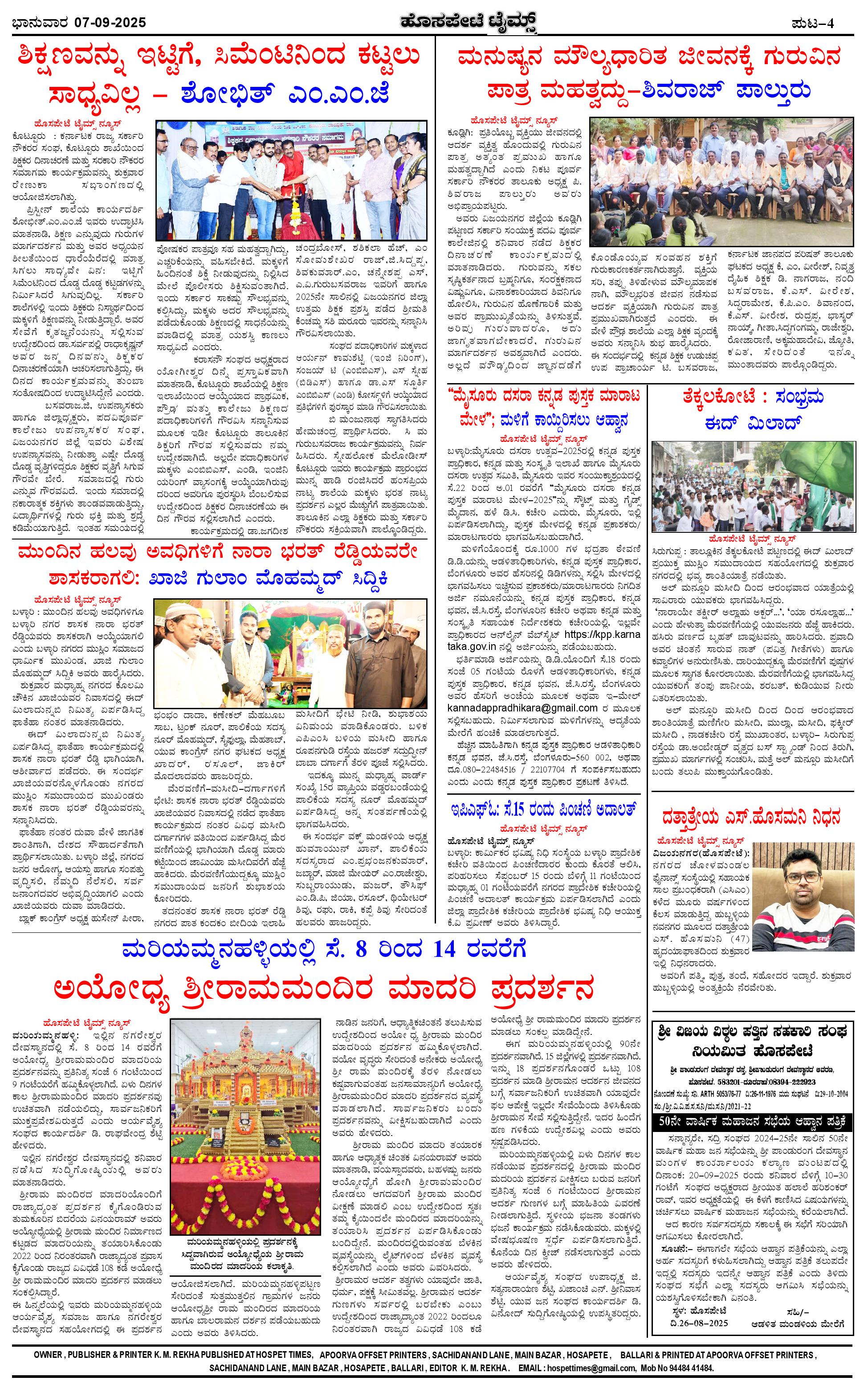 ಮಾಧ್ಯಮ ಅಕಾಡೆಮಿ ಪ್ರಶಸ್ತಿ ಪುರಸ್ಕೃತ 'ಹೊಸಪೇಟೆ ಟೈಮ್ಸ್' Page: 4 September 07, 2025 << First << 4 >> Last >> Page 1Page 2Page 3Page 4 × ಮಾಧ್ಯಮ ಅಕಾಡೆಮಿ ಪ್ರಶಸ್ತಿ ಪುರಸ್ಕೃತ 'ಹೊಸಪೇಟೆ ಟೈಮ್ಸ್' pdf&rendition=1-1 (2)-page-001pdf&rendition=1-1 (2)-page-002pdf&rendition=1-1 (2)-page-003pdf&rendition=1-1 (2)-page-004 << First << 4 >> Last >> pdf&rendition=1-1 (2)-page-001pdf&rendition=1-1 (2)-page-002pdf&rendition=1-1 (2)-page-003pdf&rendition=1-1 (2)-page-004 pdf&rendition=1-1 (2)-page-004