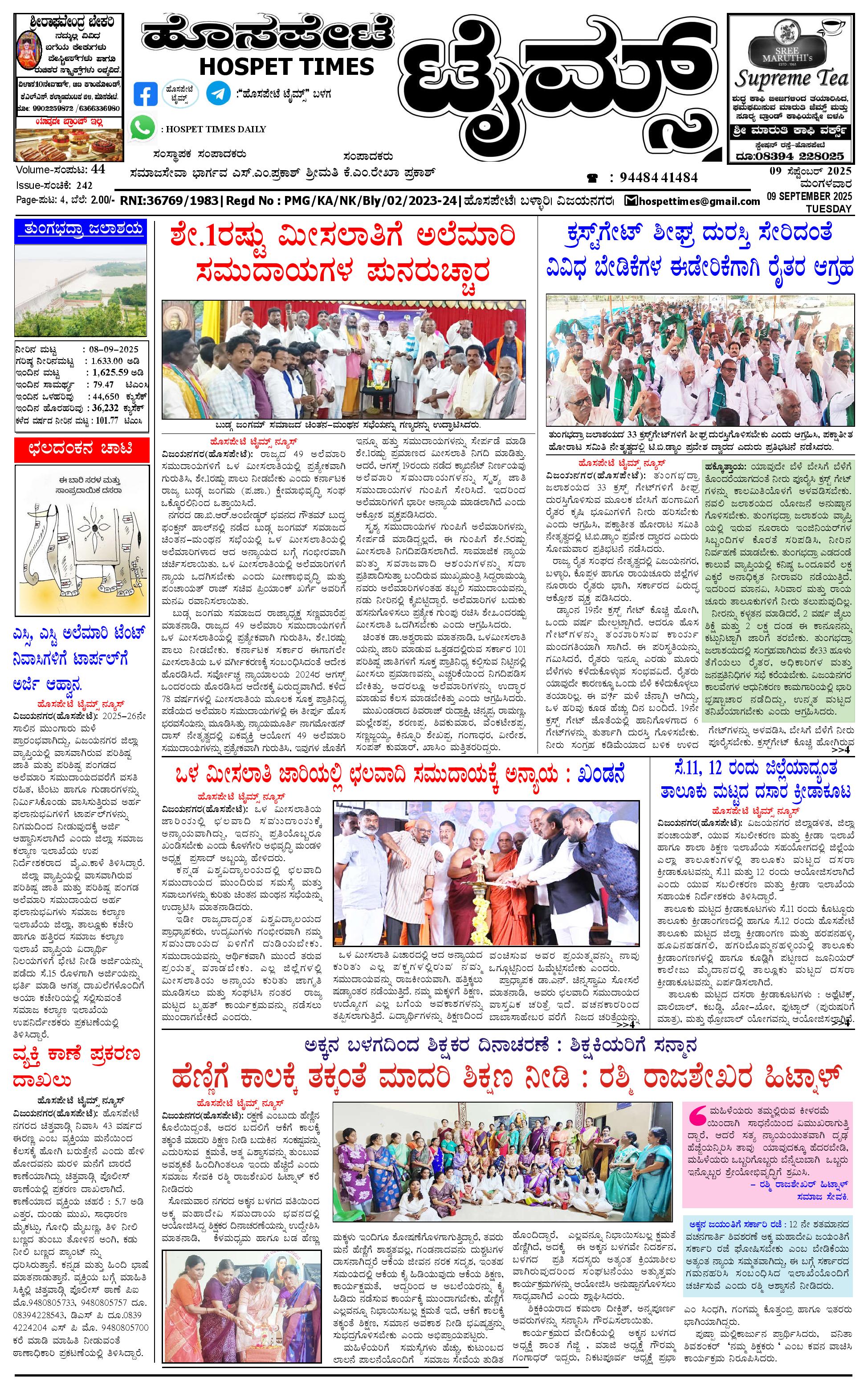 ಮಾಧ್ಯಮ ಅಕಾಡೆಮಿ ಪ್ರಶಸ್ತಿ ಪುರಸ್ಕೃತ 'ಹೊಸಪೇಟೆ ಟೈಮ್ಸ್' September 09, 2025 << First << 1 >> Last >> Page 1Page 2Page 3Page 4 × ಮಾಧ್ಯಮ ಅಕಾಡೆಮಿ ಪ್ರಶಸ್ತಿ ಪುರಸ್ಕೃತ 'ಹೊಸಪೇಟೆ ಟೈಮ್ಸ್' HPT-09092025--4-page-001HPT-09092025--4-page-002HPT-09092025--4-page-003HPT-09092025--4-page-004 << First << 1 >> Last >> HPT-09092025--4-page-001HPT-09092025--4-page-002HPT-09092025--4-page-003HPT-09092025--4-page-004 HPT-09092025--4-page-001