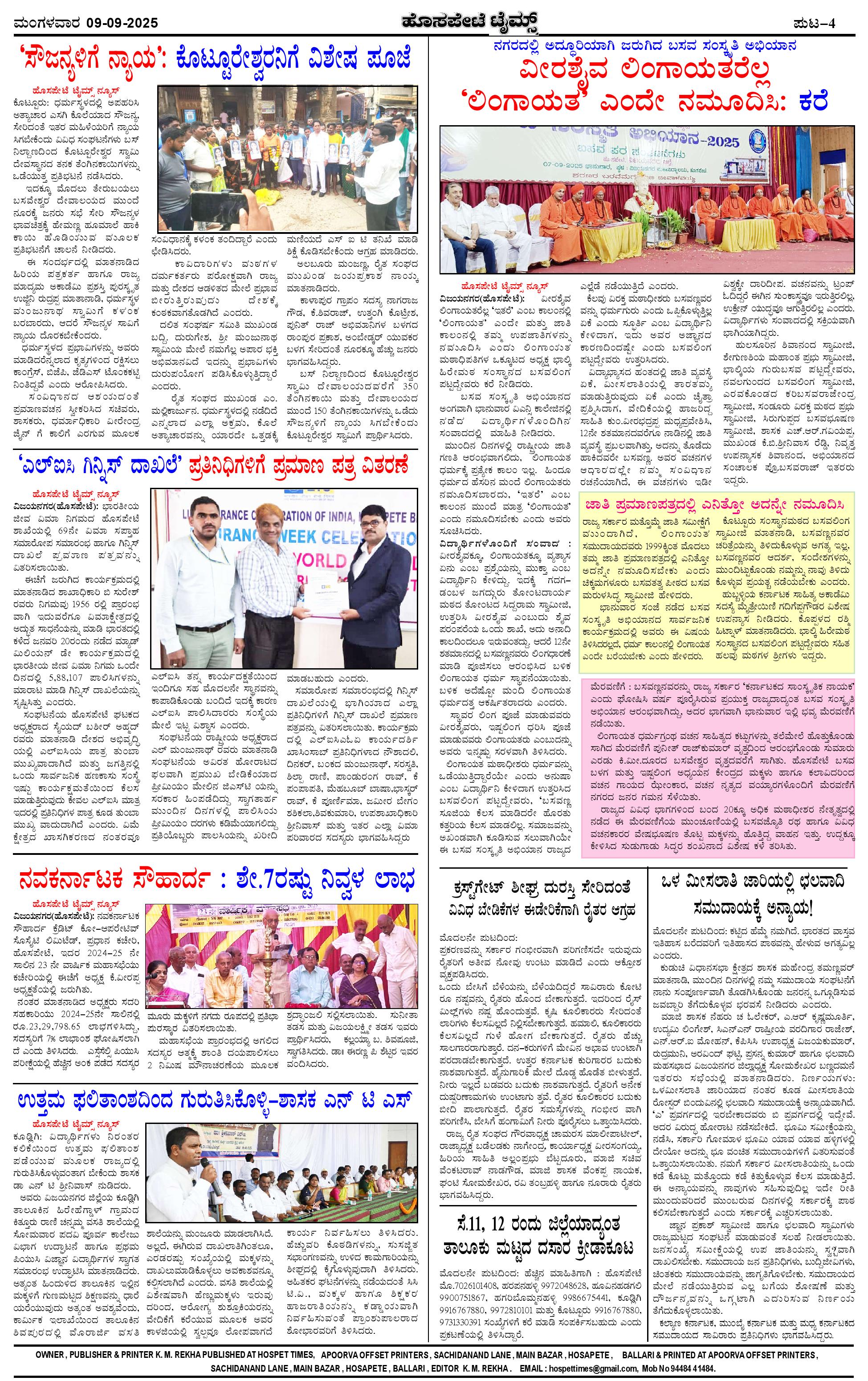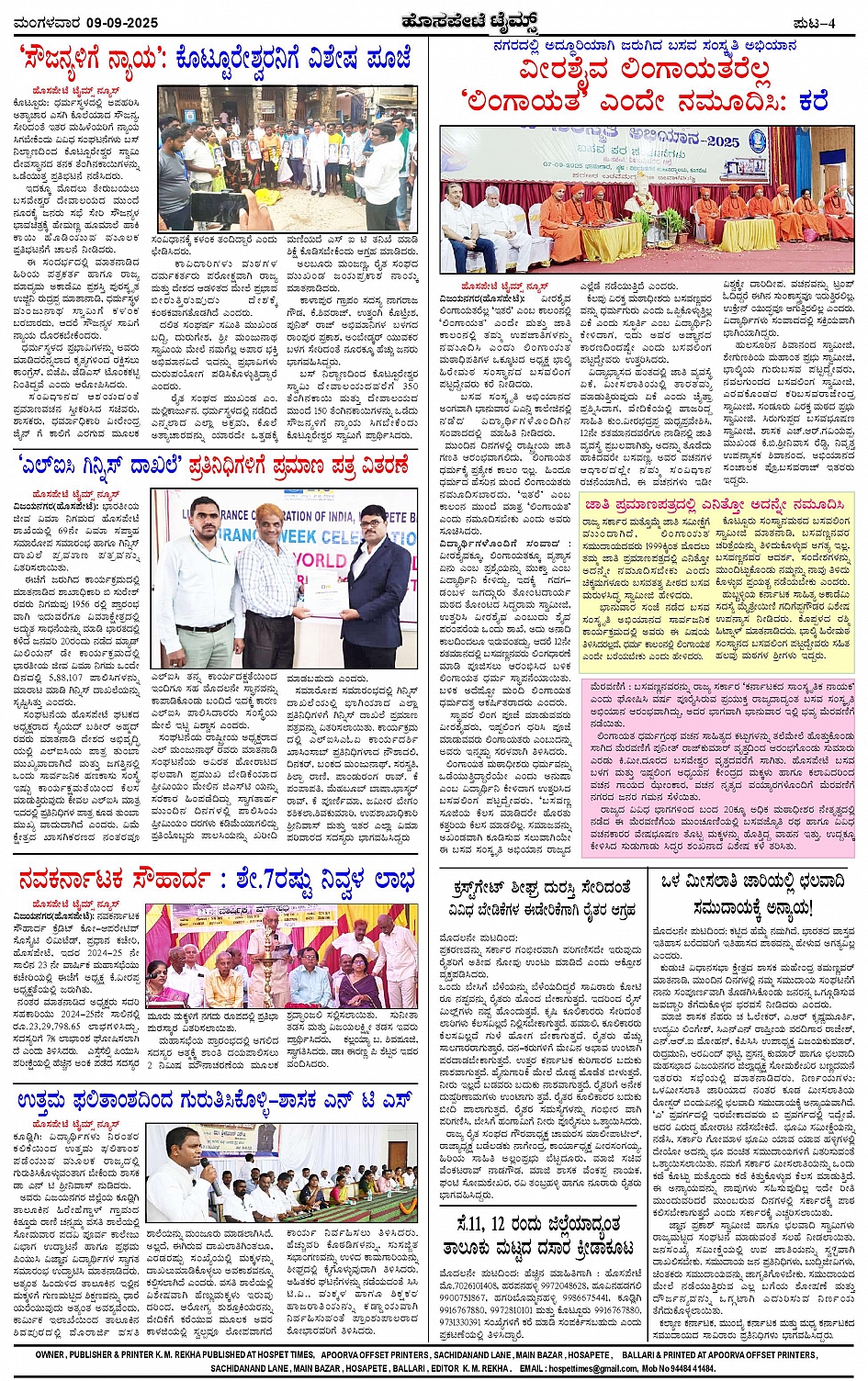 ಮಾಧ್ಯಮ ಅಕಾಡೆಮಿ ಪ್ರಶಸ್ತಿ ಪುರಸ್ಕೃತ 'ಹೊಸಪೇಟೆ ಟೈಮ್ಸ್' Page: 4 September 09, 2025 << First << 4 >> Last >> Page 1Page 2Page 3Page 4 × ಮಾಧ್ಯಮ ಅಕಾಡೆಮಿ ಪ್ರಶಸ್ತಿ ಪುರಸ್ಕೃತ 'ಹೊಸಪೇಟೆ ಟೈಮ್ಸ್' HPT-09092025--4-page-001HPT-09092025--4-page-002HPT-09092025--4-page-003HPT-09092025--4-page-004 << First << 4 >> Last >> HPT-09092025--4-page-001HPT-09092025--4-page-002HPT-09092025--4-page-003HPT-09092025--4-page-004 HPT-09092025--4-page-004