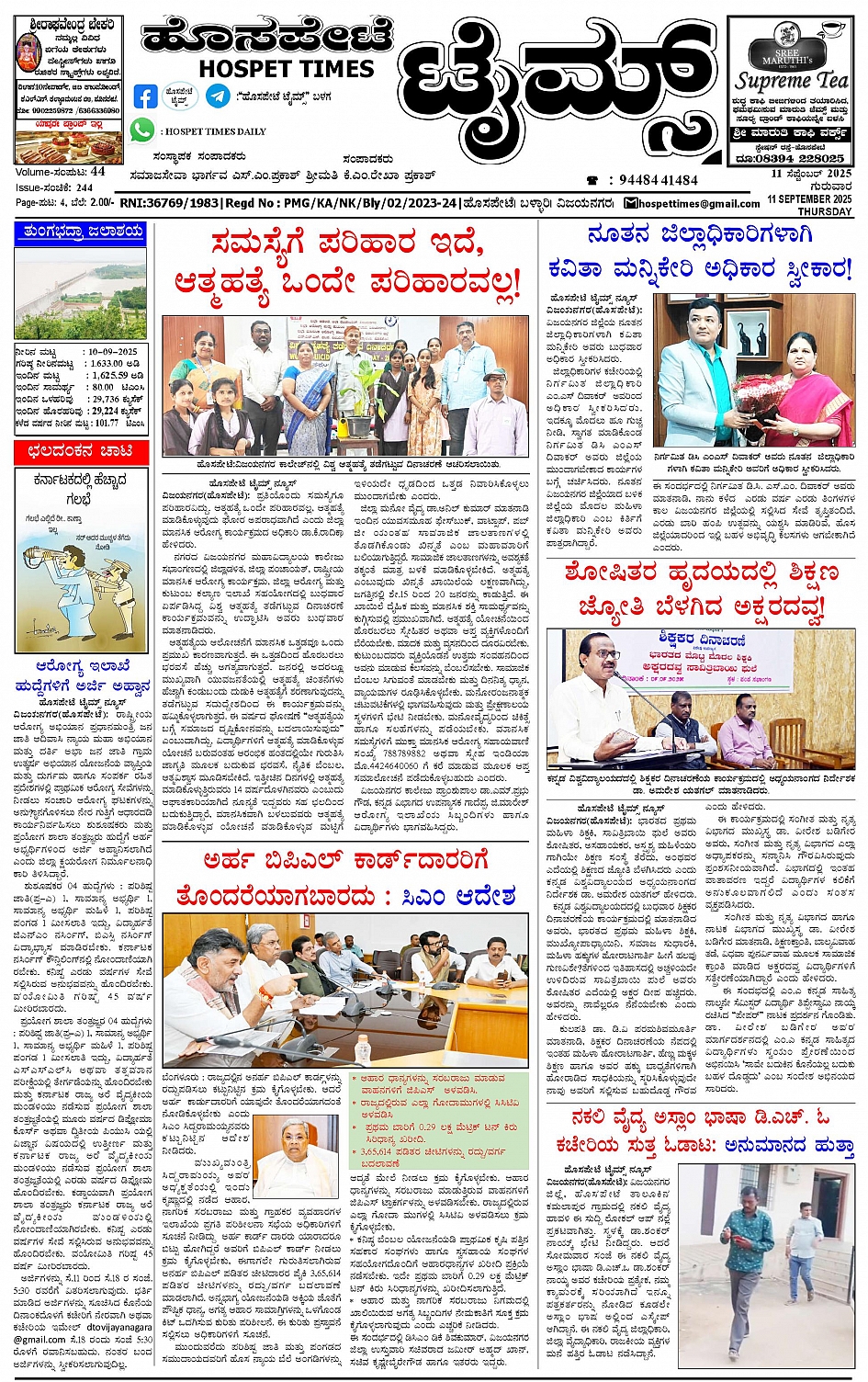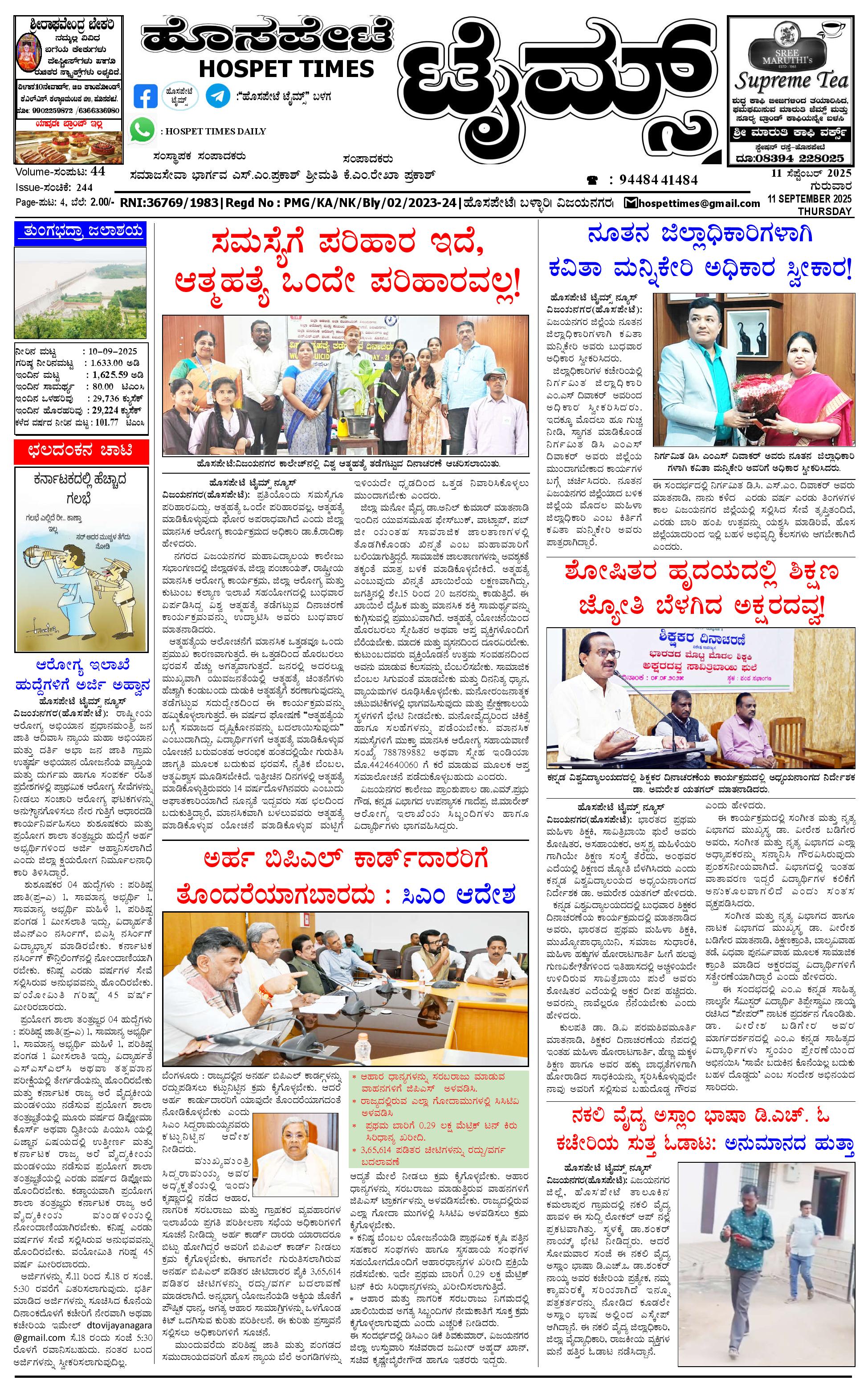 ಮಾಧ್ಯಮ ಅಕಾಡೆಮಿ ಪ್ರಶಸ್ತಿ ಪುರಸ್ಕೃತ 'ಹೊಸಪೇಟೆ ಟೈಮ್ಸ್' September 11, 2025 << First << 1 >> Last >> Page 1Page 2Page 3Page 4 × ಮಾಧ್ಯಮ ಅಕಾಡೆಮಿ ಪ್ರಶಸ್ತಿ ಪುರಸ್ಕೃತ 'ಹೊಸಪೇಟೆ ಟೈಮ್ಸ್' HPT-11092025-4-page-001HPT-11092025-4-page-002HPT-11092025-4-page-003HPT-11092025-4-page-004 << First << 1 >> Last >> HPT-11092025-4-page-001HPT-11092025-4-page-002HPT-11092025-4-page-003HPT-11092025-4-page-004 HPT-11092025-4-page-001