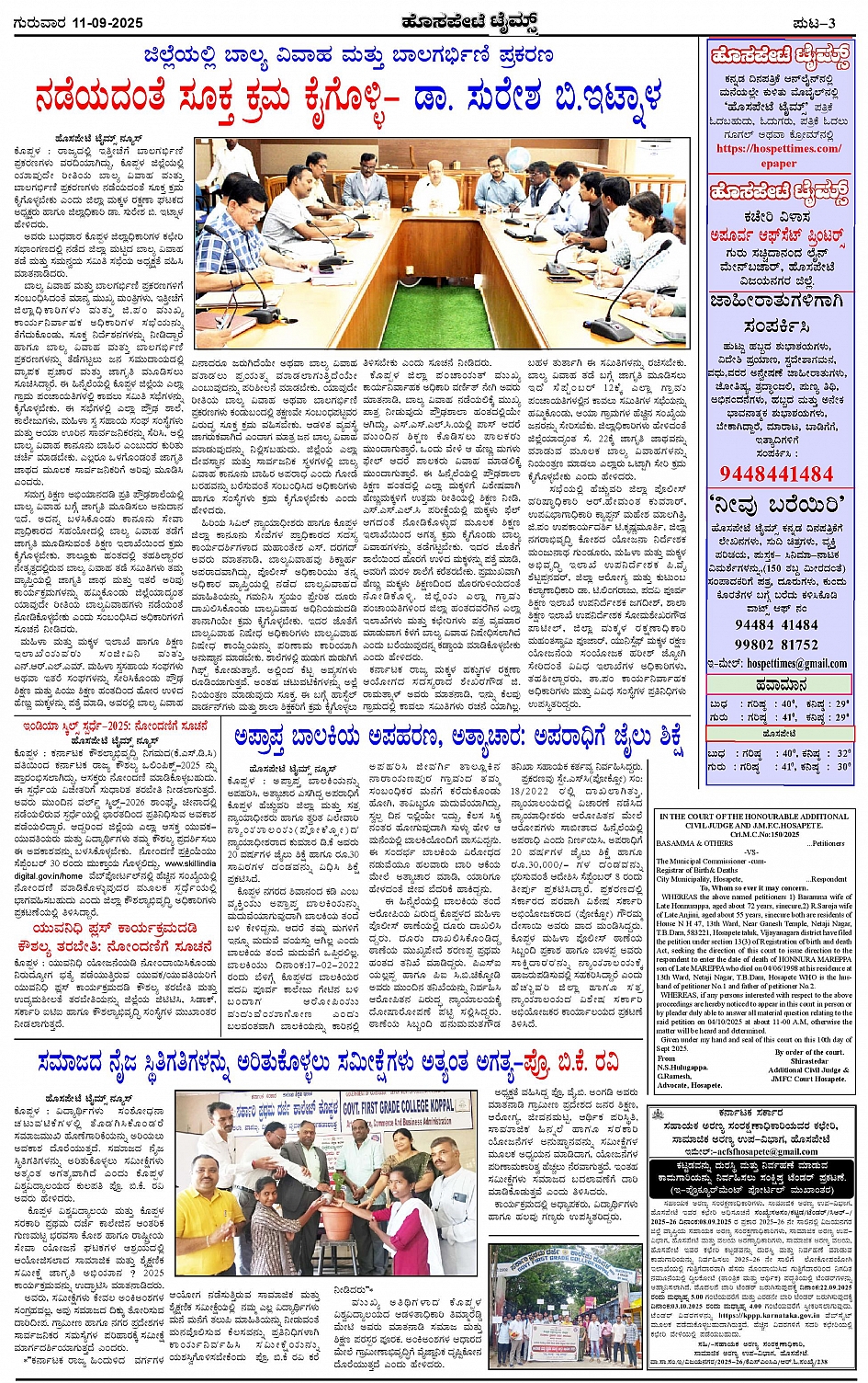 ಮಾಧ್ಯಮ ಅಕಾಡೆಮಿ ಪ್ರಶಸ್ತಿ ಪುರಸ್ಕೃತ 'ಹೊಸಪೇಟೆ ಟೈಮ್ಸ್' Page: 3 September 11, 2025 << First << 3 >> Last >> Page 1Page 2Page 3Page 4 × ಮಾಧ್ಯಮ ಅಕಾಡೆಮಿ ಪ್ರಶಸ್ತಿ ಪುರಸ್ಕೃತ 'ಹೊಸಪೇಟೆ ಟೈಮ್ಸ್' HPT-11092025-4-page-001HPT-11092025-4-page-002HPT-11092025-4-page-003HPT-11092025-4-page-004 << First << 3 >> Last >> HPT-11092025-4-page-001HPT-11092025-4-page-002HPT-11092025-4-page-003HPT-11092025-4-page-004 HPT-11092025-4-page-003