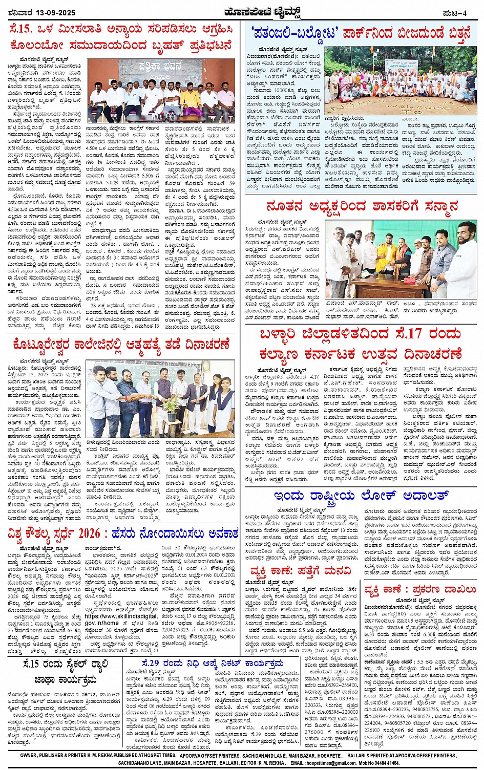 ಮಾಧ್ಯಮ ಅಕಾಡೆಮಿ ಪ್ರಶಸ್ತಿ ಪುರಸ್ಕೃತ 'ಹೊಸಪೇಟೆ ಟೈಮ್ಸ್' Page: 4 September 13, 2025 << First << 4 >> Last >> Page 1Page 2Page 3Page 4 × ಮಾಧ್ಯಮ ಅಕಾಡೆಮಿ ಪ್ರಶಸ್ತಿ ಪುರಸ್ಕೃತ 'ಹೊಸಪೇಟೆ ಟೈಮ್ಸ್' HPT-13092025-4-page-001HPT-13092025-4-page-002HPT-13092025-4-page-003HPT-13092025-4-page-004 << First << 4 >> Last >> HPT-13092025-4-page-001HPT-13092025-4-page-002HPT-13092025-4-page-003HPT-13092025-4-page-004 HPT-13092025-4-page-004