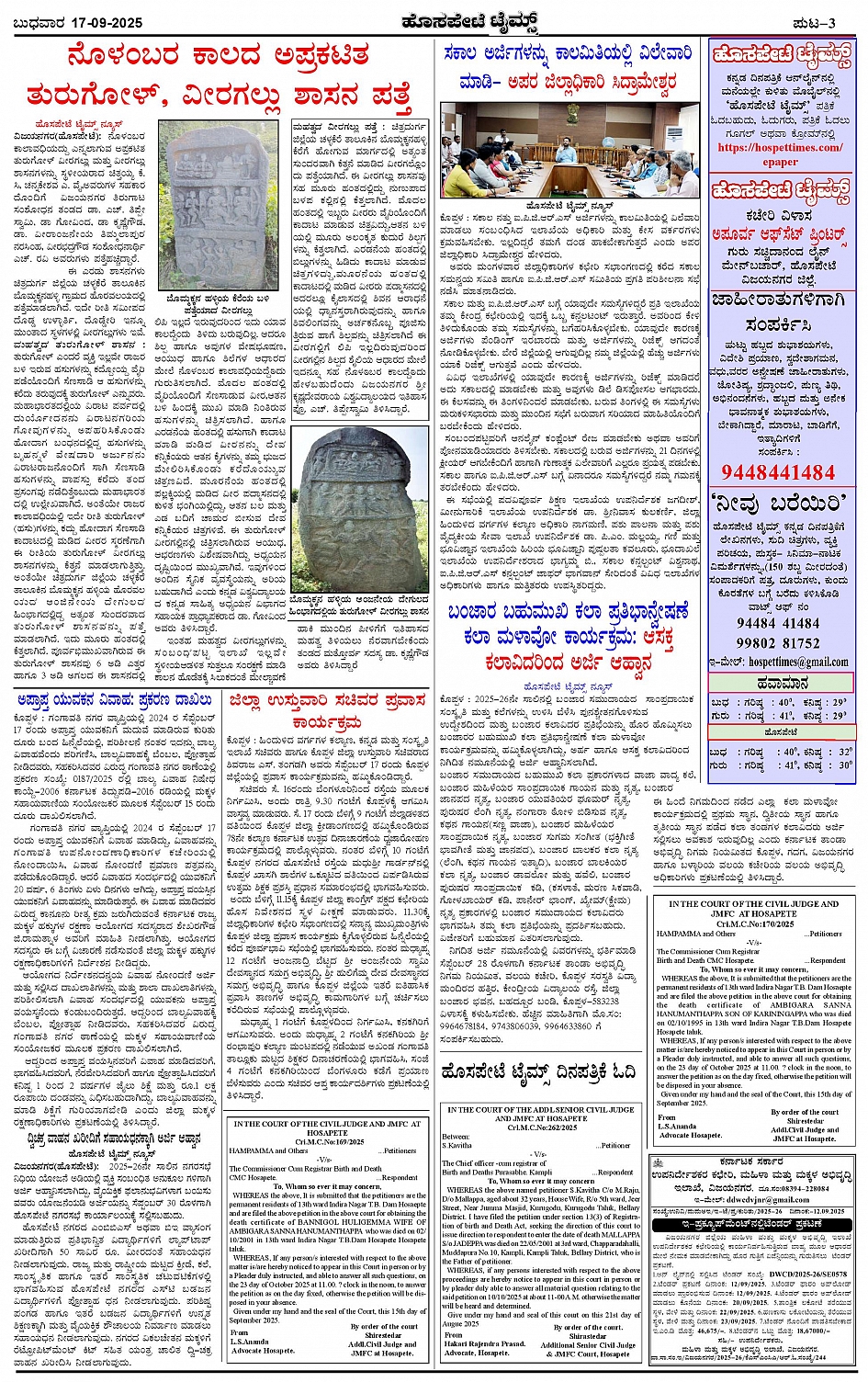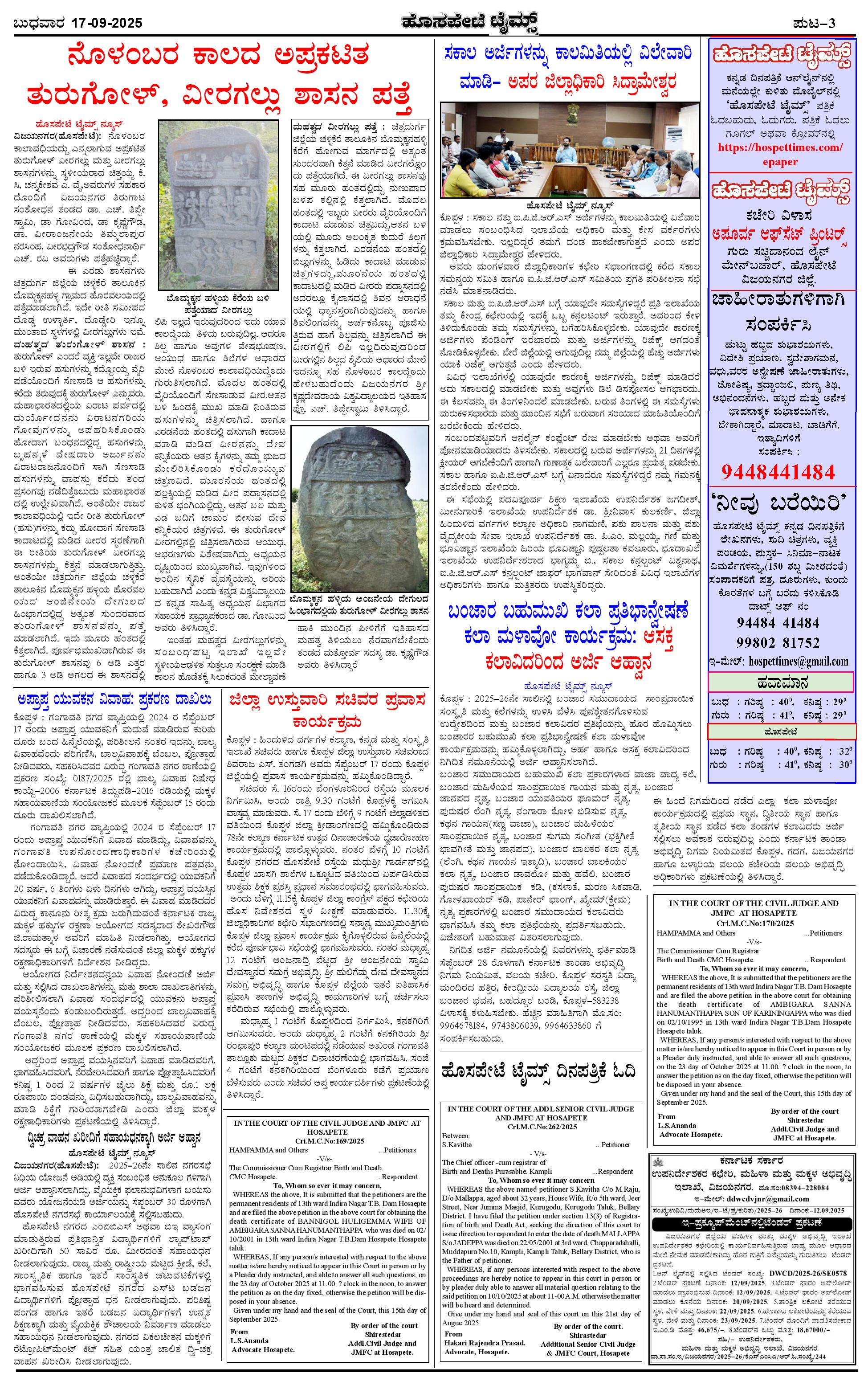 ಮಾಧ್ಯಮ ಅಕಾಡೆಮಿ ಪ್ರಶಸ್ತಿ ಪುರಸ್ಕೃತ 'ಹೊಸಪೇಟೆ ಟೈಮ್ಸ್' Page: 3 September 17, 2025 << First << 3 >> Last >> Page 1Page 2Page 3Page 4 × ಮಾಧ್ಯಮ ಅಕಾಡೆಮಿ ಪ್ರಶಸ್ತಿ ಪುರಸ್ಕೃತ 'ಹೊಸಪೇಟೆ ಟೈಮ್ಸ್' HPT-17092025--4-page-001HPT-17092025--4-page-002HPT-17092025--4-page-003HPT-17092025--4-page-004 << First << 3 >> Last >> HPT-17092025--4-page-001HPT-17092025--4-page-002HPT-17092025--4-page-003HPT-17092025--4-page-004 HPT-17092025--4-page-003
