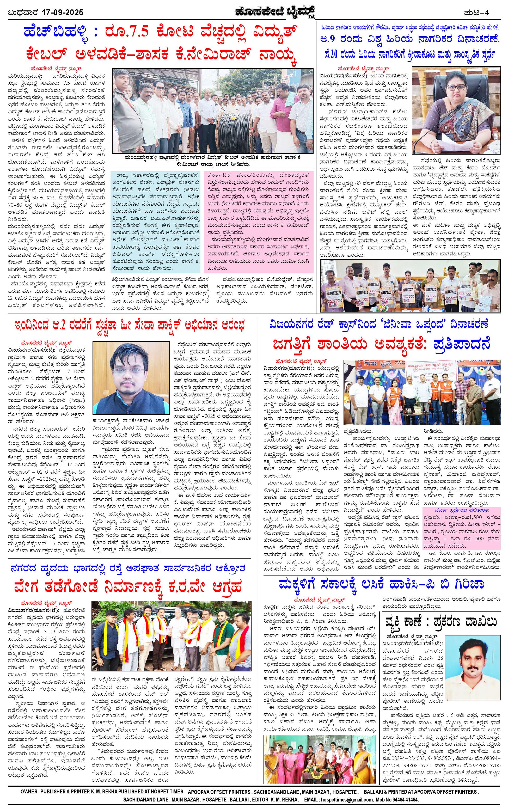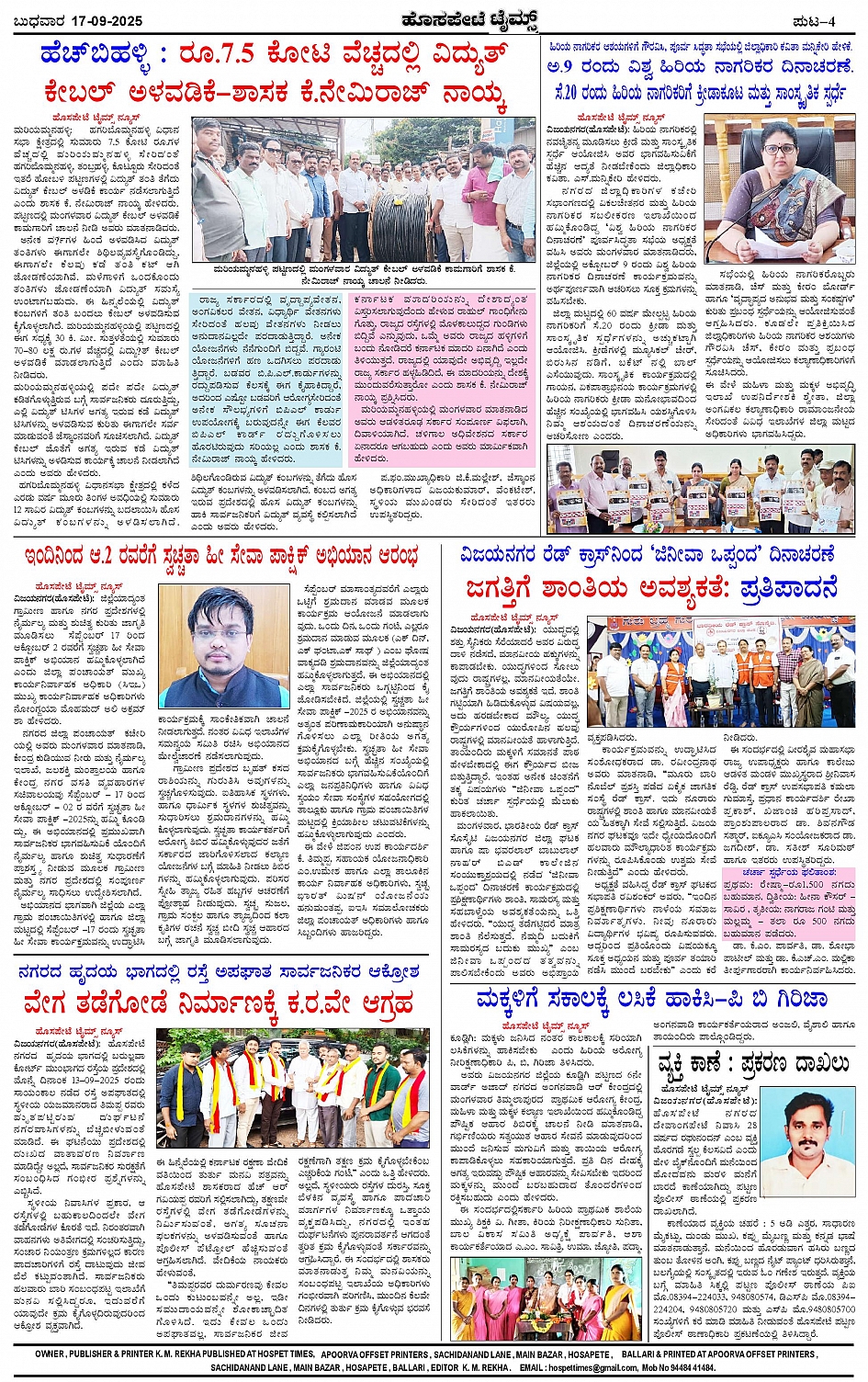 ಮಾಧ್ಯಮ ಅಕಾಡೆಮಿ ಪ್ರಶಸ್ತಿ ಪುರಸ್ಕೃತ 'ಹೊಸಪೇಟೆ ಟೈಮ್ಸ್' Page: 4 September 17, 2025 << First << 4 >> Last >> Page 1Page 2Page 3Page 4 × ಮಾಧ್ಯಮ ಅಕಾಡೆಮಿ ಪ್ರಶಸ್ತಿ ಪುರಸ್ಕೃತ 'ಹೊಸಪೇಟೆ ಟೈಮ್ಸ್' HPT-17092025--4-page-001HPT-17092025--4-page-002HPT-17092025--4-page-003HPT-17092025--4-page-004 << First << 4 >> Last >> HPT-17092025--4-page-001HPT-17092025--4-page-002HPT-17092025--4-page-003HPT-17092025--4-page-004 HPT-17092025--4-page-004