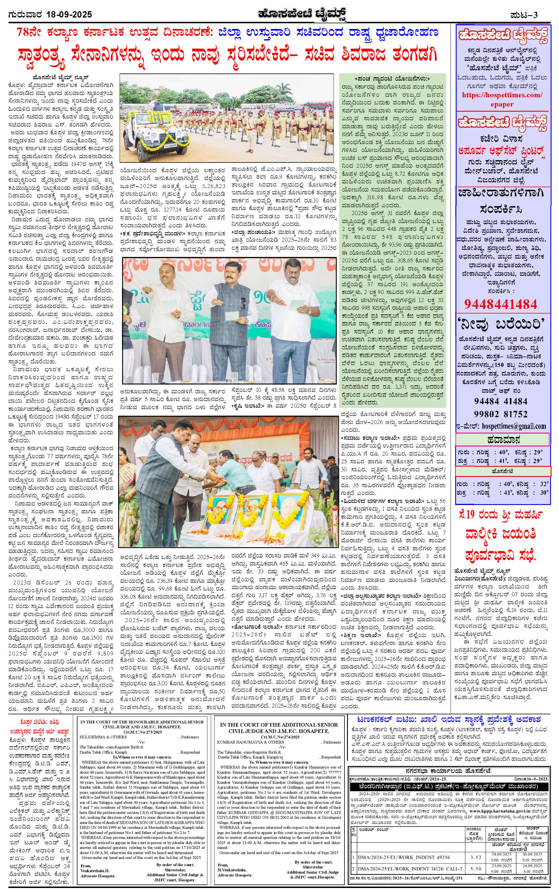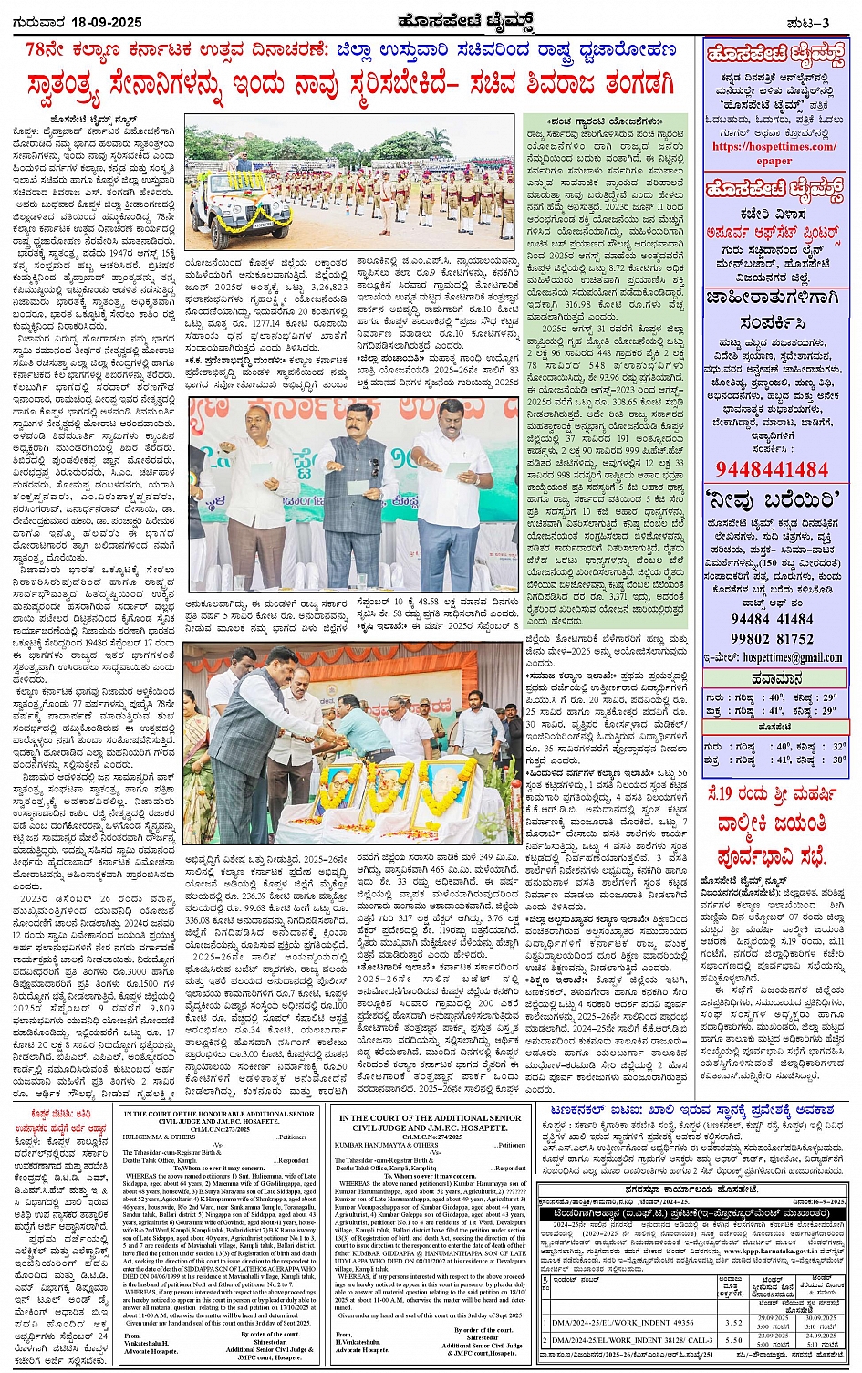 ಮಾಧ್ಯಮ ಅಕಾಡೆಮಿ ಪ್ರಶಸ್ತಿ ಪುರಸ್ಕೃತ 'ಹೊಸಪೇಟೆ ಟೈಮ್ಸ್' Page: 3 September 18, 2025 << First << 3 >> Last >> Page 1Page 2Page 3Page 4 × ಮಾಧ್ಯಮ ಅಕಾಡೆಮಿ ಪ್ರಶಸ್ತಿ ಪುರಸ್ಕೃತ 'ಹೊಸಪೇಟೆ ಟೈಮ್ಸ್' HPT-18092025--4-page-001HPT-18092025--4-page-002HPT-18092025--4-page-003HPT-18092025--4-page-004 << First << 3 >> Last >> HPT-18092025--4-page-001HPT-18092025--4-page-002HPT-18092025--4-page-003HPT-18092025--4-page-004 HPT-18092025--4-page-003