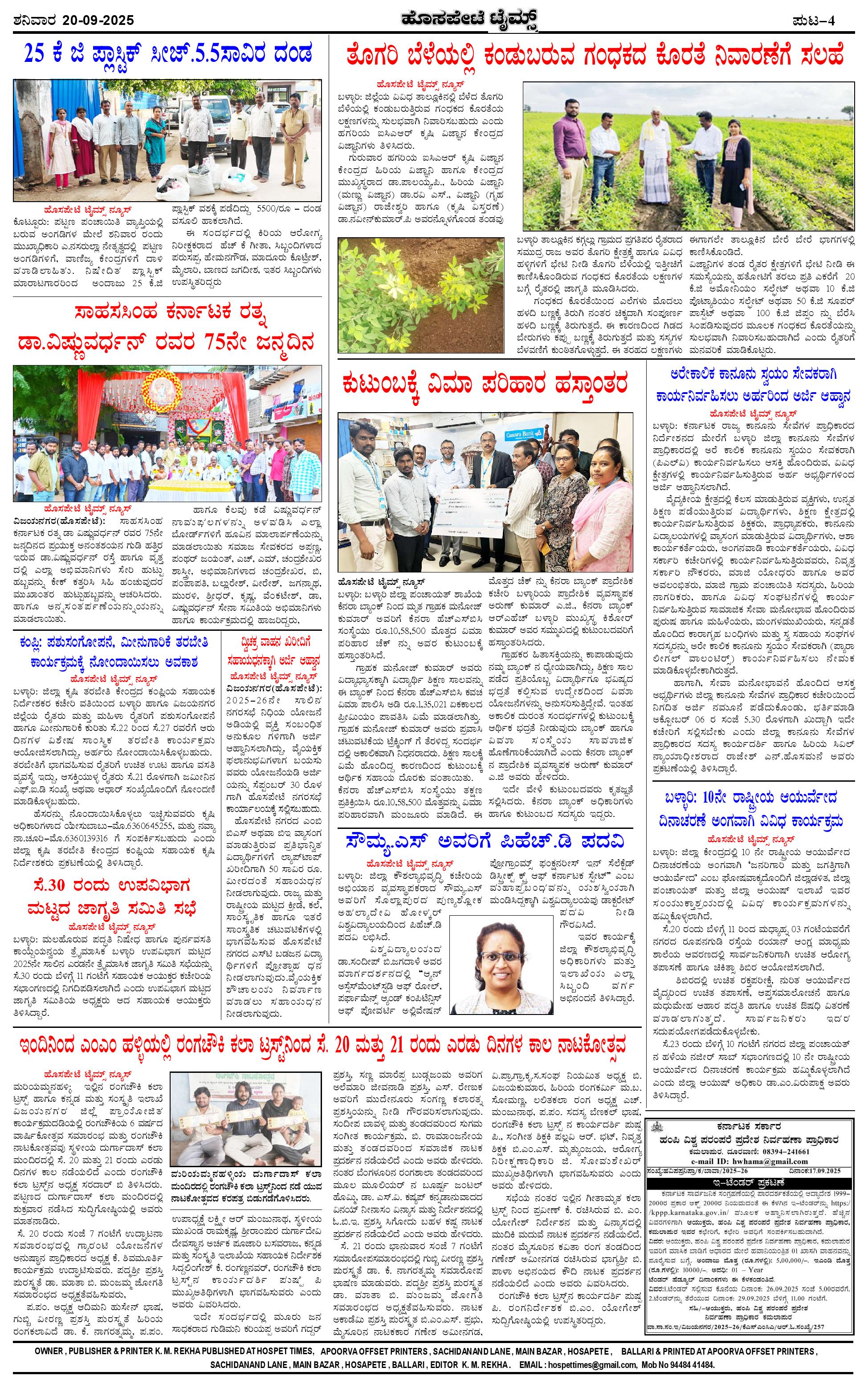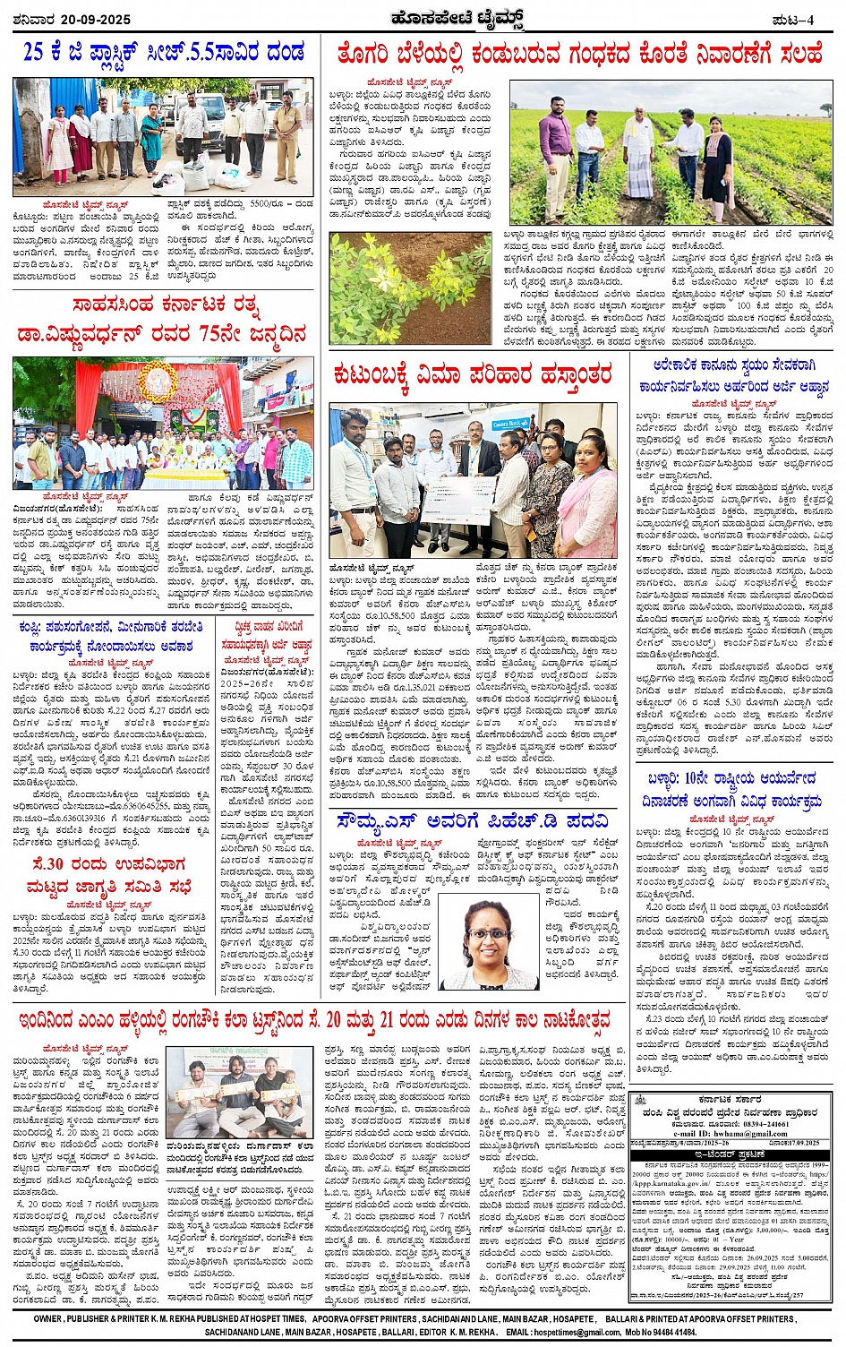 ಮಾಧ್ಯಮ ಅಕಾಡೆಮಿ ಪ್ರಶಸ್ತಿ ಪುರಸ್ಕೃತ 'ಹೊಸಪೇಟೆ ಟೈಮ್ಸ್' Page: 4 September 20, 2025 << First << 4 >> Last >> Page 1Page 2Page 3Page 4 × ಮಾಧ್ಯಮ ಅಕಾಡೆಮಿ ಪ್ರಶಸ್ತಿ ಪುರಸ್ಕೃತ 'ಹೊಸಪೇಟೆ ಟೈಮ್ಸ್' HPT-20092025-4 PAGE-page-001HPT-20092025-4 PAGE-page-002HPT-20092025-4 PAGE-page-003HPT-20092025-4 PAGE-page-004 << First << 4 >> Last >> HPT-20092025-4 PAGE-page-001HPT-20092025-4 PAGE-page-002HPT-20092025-4 PAGE-page-003HPT-20092025-4 PAGE-page-004 HPT-20092025-4 PAGE-page-004
