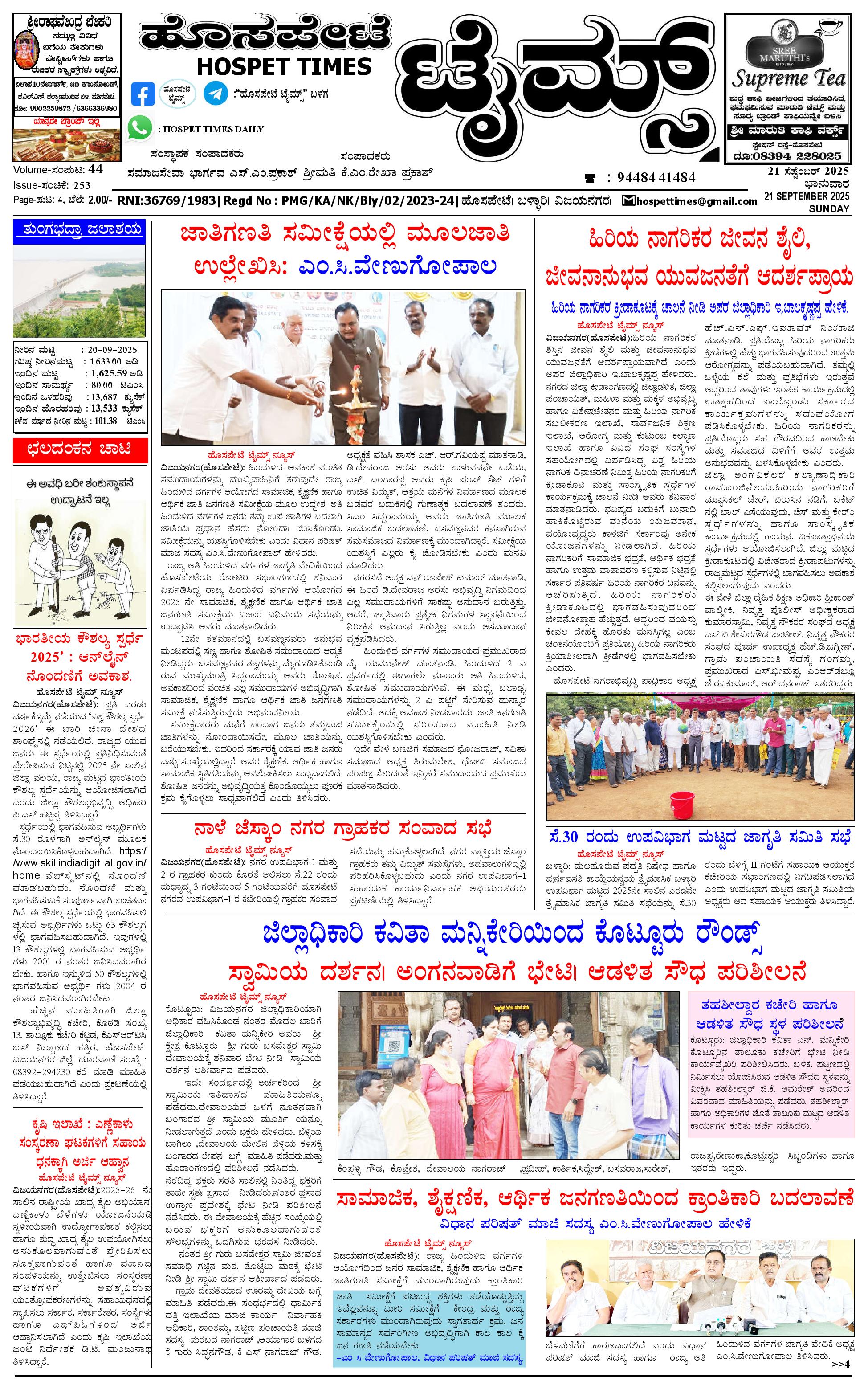 ಮಾಧ್ಯಮ ಅಕಾಡೆಮಿ ಪ್ರಶಸ್ತಿ ಪುರಸ್ಕೃತ 'ಹೊಸಪೇಟೆ ಟೈಮ್ಸ್' September 21, 2025 << First << 1 >> Last >> Page 1Page 2Page 3Page 4 × ಮಾಧ್ಯಮ ಅಕಾಡೆಮಿ ಪ್ರಶಸ್ತಿ ಪುರಸ್ಕೃತ 'ಹೊಸಪೇಟೆ ಟೈಮ್ಸ್' HPT-21092025--4-page-001HPT-21092025--4-page-002HPT-21092025--4-page-003HPT-21092025--4-page-004 << First << 1 >> Last >> HPT-21092025--4-page-001HPT-21092025--4-page-002HPT-21092025--4-page-003HPT-21092025--4-page-004 HPT-21092025--4-page-001