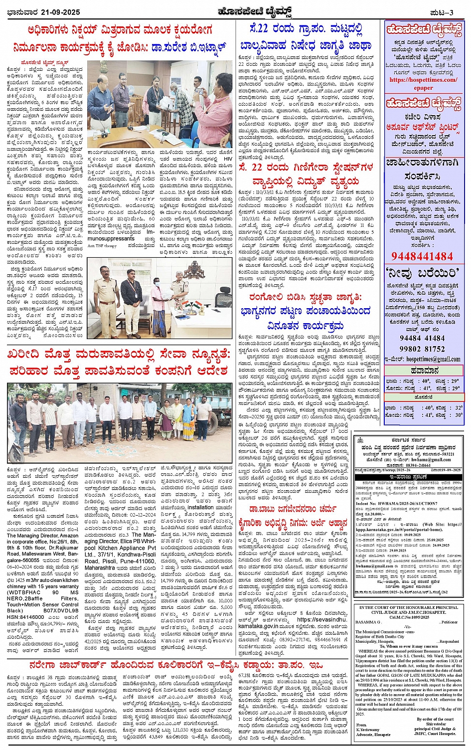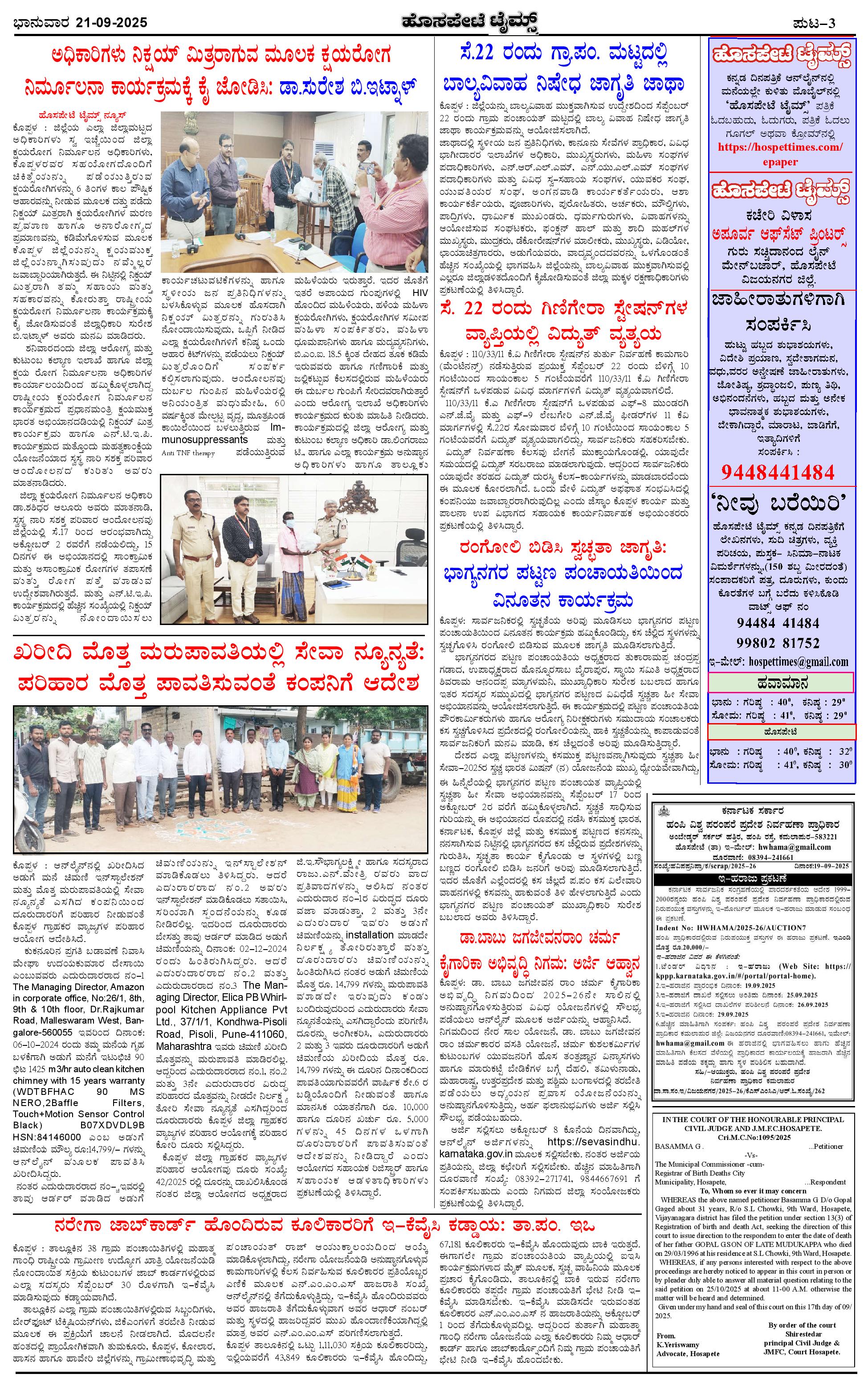 ಮಾಧ್ಯಮ ಅಕಾಡೆಮಿ ಪ್ರಶಸ್ತಿ ಪುರಸ್ಕೃತ 'ಹೊಸಪೇಟೆ ಟೈಮ್ಸ್' Page: 3 September 21, 2025 << First << 3 >> Last >> Page 1Page 2Page 3Page 4 × ಮಾಧ್ಯಮ ಅಕಾಡೆಮಿ ಪ್ರಶಸ್ತಿ ಪುರಸ್ಕೃತ 'ಹೊಸಪೇಟೆ ಟೈಮ್ಸ್' HPT-21092025--4-page-001HPT-21092025--4-page-002HPT-21092025--4-page-003HPT-21092025--4-page-004 << First << 3 >> Last >> HPT-21092025--4-page-001HPT-21092025--4-page-002HPT-21092025--4-page-003HPT-21092025--4-page-004 HPT-21092025--4-page-003