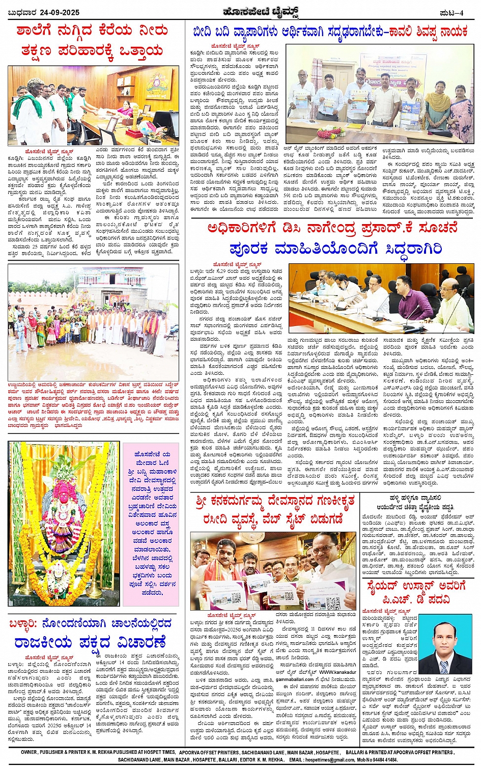 ಮಾಧ್ಯಮ ಅಕಾಡೆಮಿ ಪ್ರಶಸ್ತಿ ಪುರಸ್ಕೃತ 'ಹೊಸಪೇಟೆ ಟೈಮ್ಸ್' Page: 4 September 24, 2025 << First << 4 >> Last >> Page 1Page 2Page 3Page 4 × ಮಾಧ್ಯಮ ಅಕಾಡೆಮಿ ಪ್ರಶಸ್ತಿ ಪುರಸ್ಕೃತ 'ಹೊಸಪೇಟೆ ಟೈಮ್ಸ್' HPT-24092025---4-page-001HPT-24092025---4-page-002HPT-24092025---4-page-003HPT-24092025---4-page-004 << First << 4 >> Last >> HPT-24092025---4-page-001HPT-24092025---4-page-002HPT-24092025---4-page-003HPT-24092025---4-page-004 HPT-24092025---4-page-004