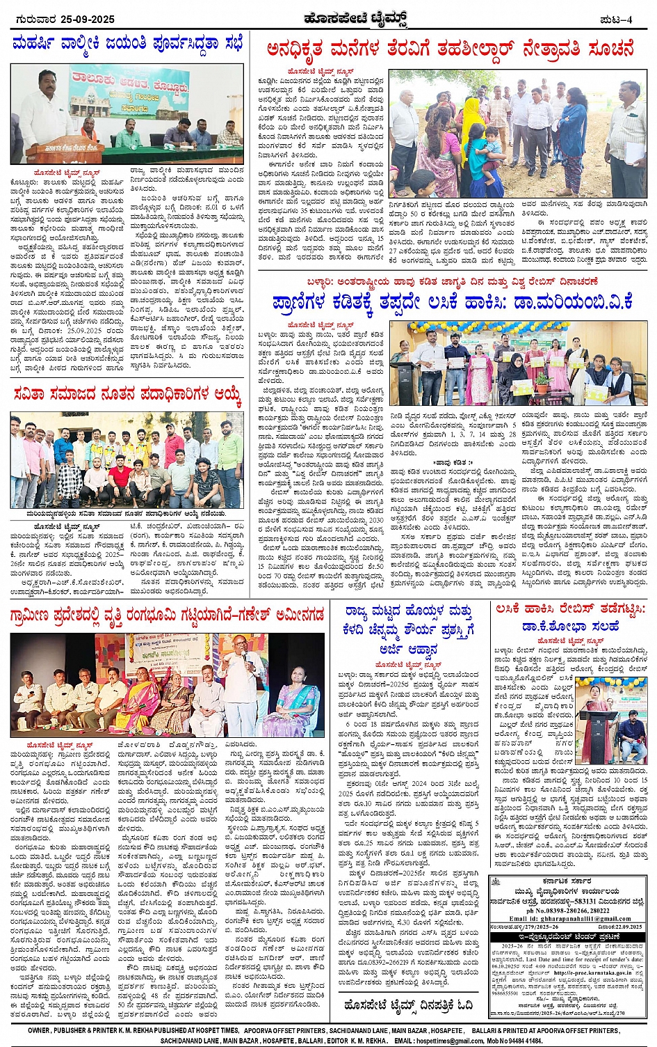 ಮಾಧ್ಯಮ ಅಕಾಡೆಮಿ ಪ್ರಶಸ್ತಿ ಪುರಸ್ಕೃತ 'ಹೊಸಪೇಟೆ ಟೈಮ್ಸ್' Page: 4 September 25, 2025 << First << 4 >> Last >> Page 1Page 2Page 3Page 4 × ಮಾಧ್ಯಮ ಅಕಾಡೆಮಿ ಪ್ರಶಸ್ತಿ ಪುರಸ್ಕೃತ 'ಹೊಸಪೇಟೆ ಟೈಮ್ಸ್' HPT-25092025--4-page-001HPT-25092025--4-page-002HPT-25092025--4-page-003HPT-25092025--4-page-004 << First << 4 >> Last >> HPT-25092025--4-page-001HPT-25092025--4-page-002HPT-25092025--4-page-003HPT-25092025--4-page-004 HPT-25092025--4-page-004