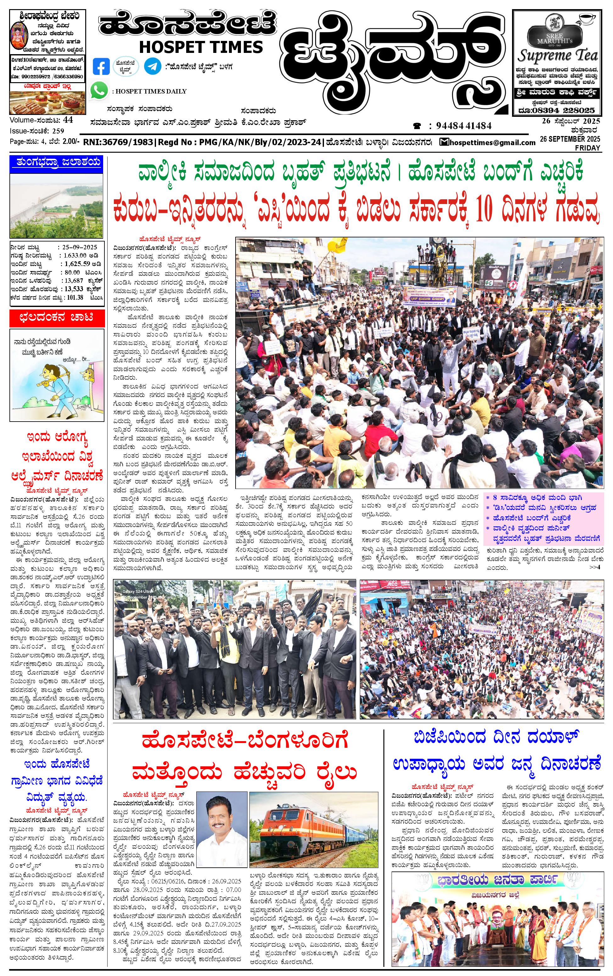 ಮಾಧ್ಯಮ ಅಕಾಡೆಮಿ ಪ್ರಶಸ್ತಿ ಪುರಸ್ಕೃತ 'ಹೊಸಪೇಟೆ ಟೈಮ್ಸ್' September 26, 2025 << First << 1 >> Last >> Page 1Page 2Page 3Page 4 × ಮಾಧ್ಯಮ ಅಕಾಡೆಮಿ ಪ್ರಶಸ್ತಿ ಪುರಸ್ಕೃತ 'ಹೊಸಪೇಟೆ ಟೈಮ್ಸ್' HPT-26092025-4-page-001HPT-26092025-4-page-002HPT-26092025-4-page-003HPT-26092025-4-page-004 << First << 1 >> Last >> HPT-26092025-4-page-001HPT-26092025-4-page-002HPT-26092025-4-page-003HPT-26092025-4-page-004 HPT-26092025-4-page-001