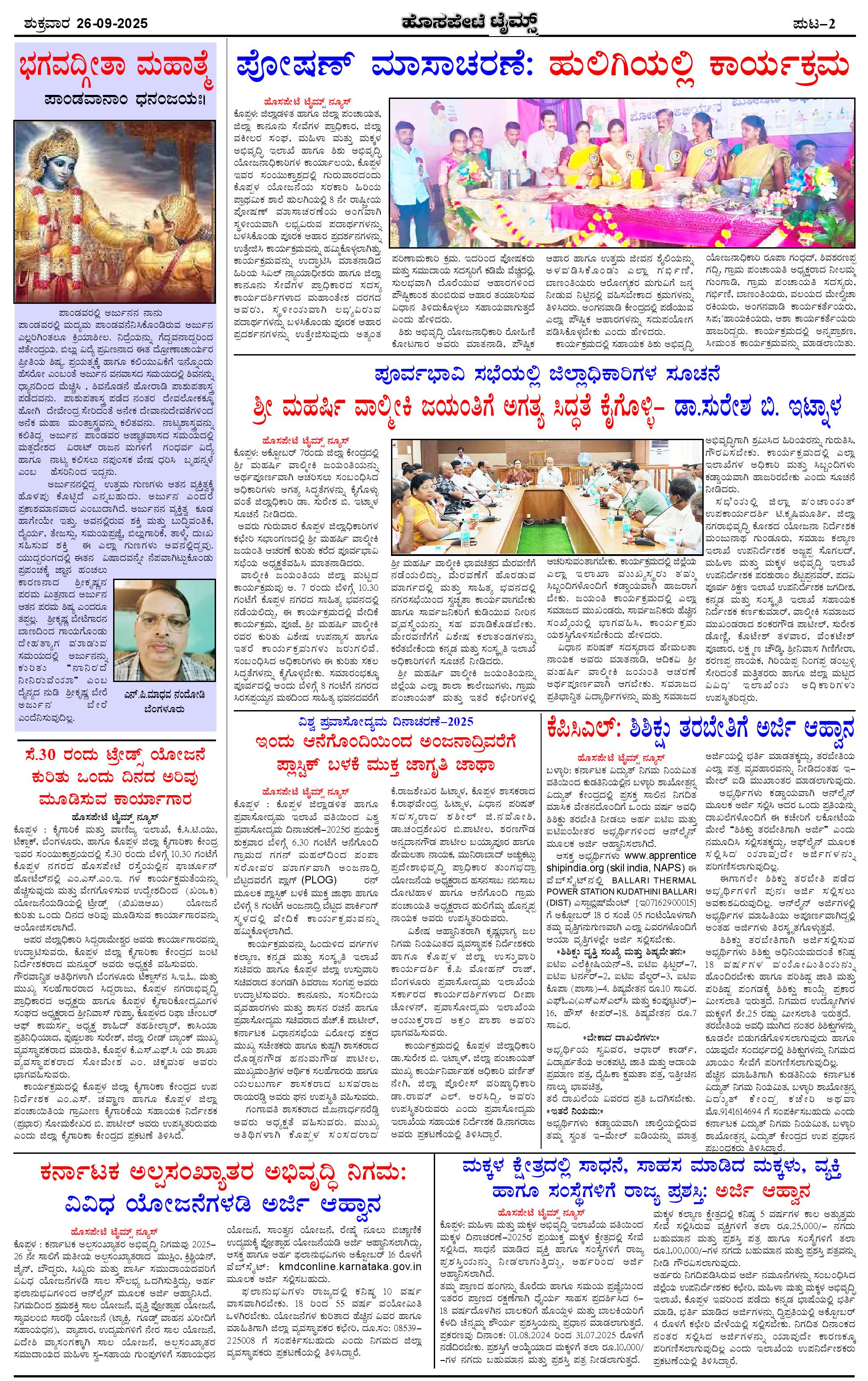 ಮಾಧ್ಯಮ ಅಕಾಡೆಮಿ ಪ್ರಶಸ್ತಿ ಪುರಸ್ಕೃತ 'ಹೊಸಪೇಟೆ ಟೈಮ್ಸ್' Page: 2 September 26, 2025 << First << 2 >> Last >> Page 1Page 2Page 3Page 4 × ಮಾಧ್ಯಮ ಅಕಾಡೆಮಿ ಪ್ರಶಸ್ತಿ ಪುರಸ್ಕೃತ 'ಹೊಸಪೇಟೆ ಟೈಮ್ಸ್' HPT-26092025-4-page-001HPT-26092025-4-page-002HPT-26092025-4-page-003HPT-26092025-4-page-004 << First << 2 >> Last >> HPT-26092025-4-page-001HPT-26092025-4-page-002HPT-26092025-4-page-003HPT-26092025-4-page-004 HPT-26092025-4-page-002