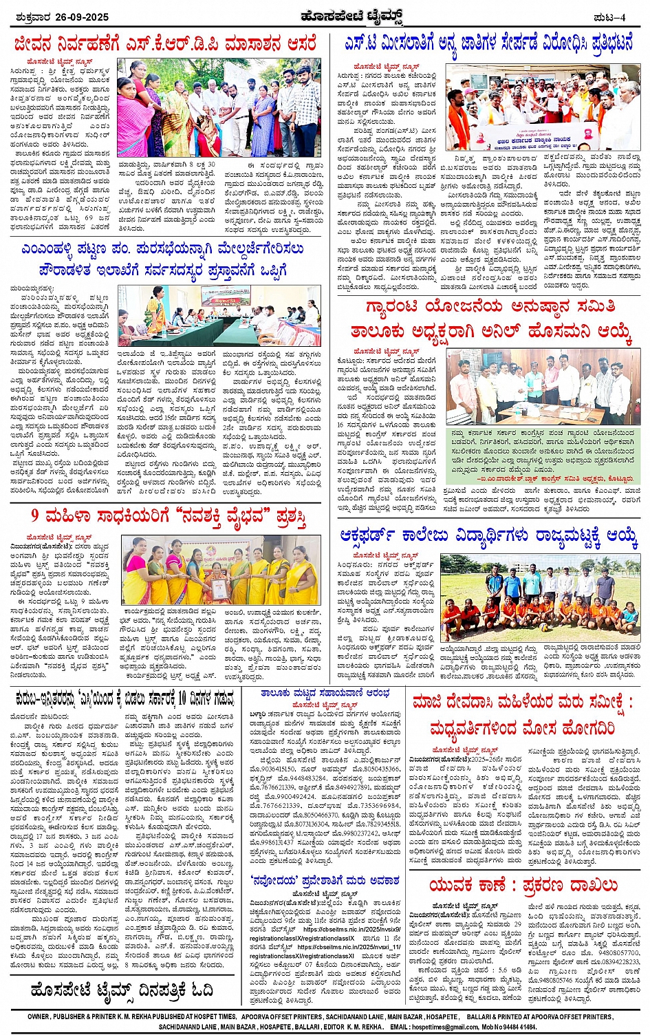 ಮಾಧ್ಯಮ ಅಕಾಡೆಮಿ ಪ್ರಶಸ್ತಿ ಪುರಸ್ಕೃತ 'ಹೊಸಪೇಟೆ ಟೈಮ್ಸ್' Page: 4 September 26, 2025 << First << 4 >> Last >> Page 1Page 2Page 3Page 4 × ಮಾಧ್ಯಮ ಅಕಾಡೆಮಿ ಪ್ರಶಸ್ತಿ ಪುರಸ್ಕೃತ 'ಹೊಸಪೇಟೆ ಟೈಮ್ಸ್' HPT-26092025-4-page-001HPT-26092025-4-page-002HPT-26092025-4-page-003HPT-26092025-4-page-004 << First << 4 >> Last >> HPT-26092025-4-page-001HPT-26092025-4-page-002HPT-26092025-4-page-003HPT-26092025-4-page-004 HPT-26092025-4-page-004