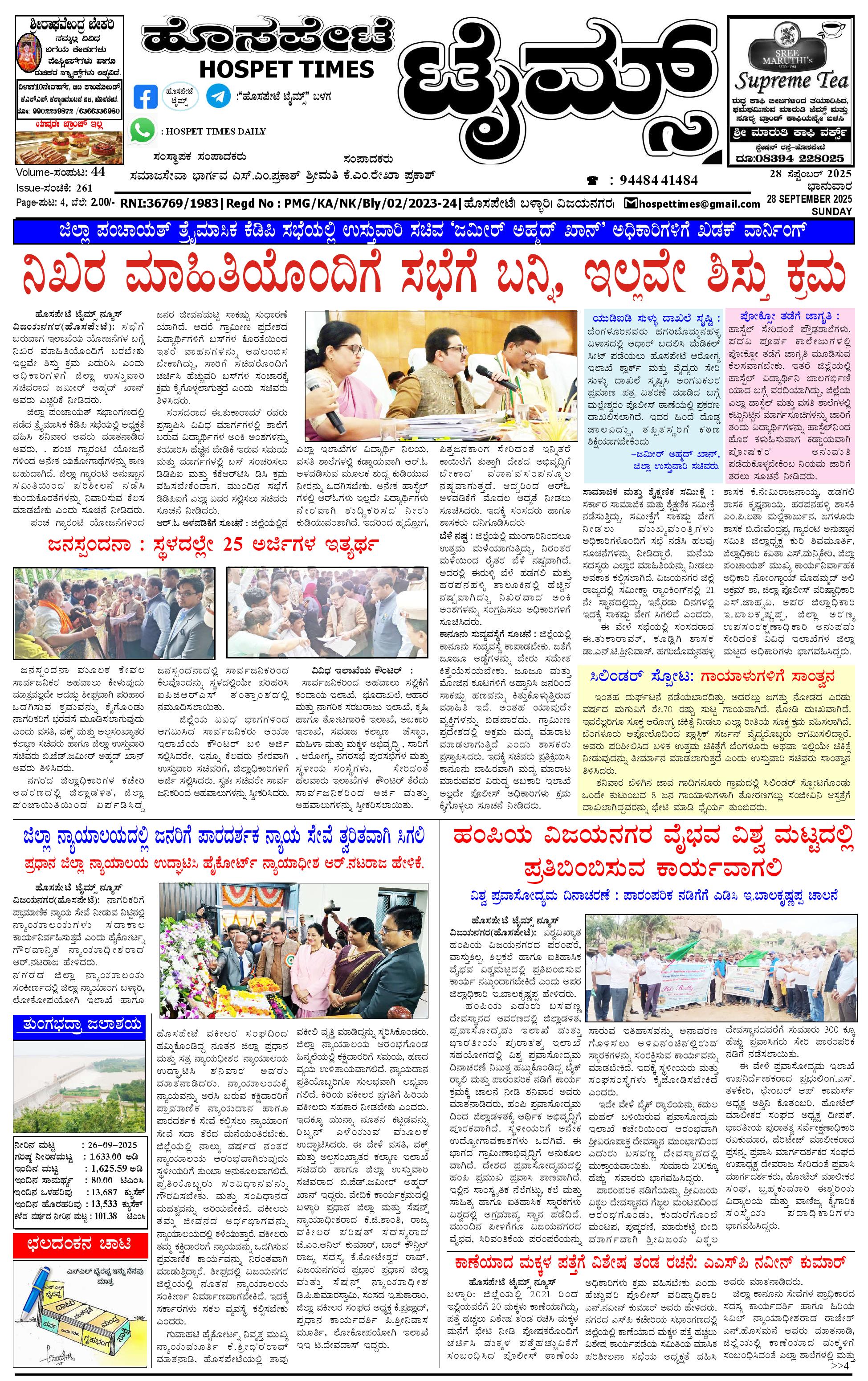 ಮಾಧ್ಯಮ ಅಕಾಡೆಮಿ ಪ್ರಶಸ್ತಿ ಪುರಸ್ಕೃತ 'ಹೊಸಪೇಟೆ ಟೈಮ್ಸ್' September 28, 2025 << First << 1 >> Last >> Page 1Page 2Page 3Page 4 × ಮಾಧ್ಯಮ ಅಕಾಡೆಮಿ ಪ್ರಶಸ್ತಿ ಪುರಸ್ಕೃತ 'ಹೊಸಪೇಟೆ ಟೈಮ್ಸ್' HPT-28092025--4-page-001HPT-28092025--4-page-002HPT-28092025--4-page-003HPT-28092025--4-page-004 << First << 1 >> Last >> HPT-28092025--4-page-001HPT-28092025--4-page-002HPT-28092025--4-page-003HPT-28092025--4-page-004 HPT-28092025--4-page-001