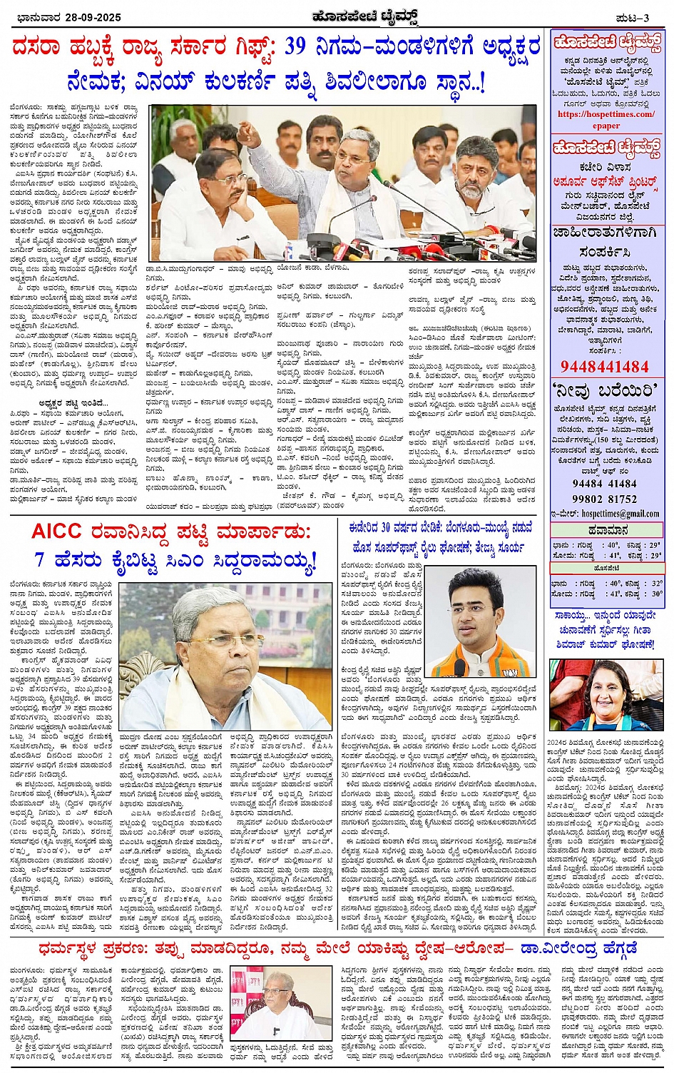 ಮಾಧ್ಯಮ ಅಕಾಡೆಮಿ ಪ್ರಶಸ್ತಿ ಪುರಸ್ಕೃತ 'ಹೊಸಪೇಟೆ ಟೈಮ್ಸ್' Page: 3 September 28, 2025 << First << 3 >> Last >> Page 1Page 2Page 3Page 4 × ಮಾಧ್ಯಮ ಅಕಾಡೆಮಿ ಪ್ರಶಸ್ತಿ ಪುರಸ್ಕೃತ 'ಹೊಸಪೇಟೆ ಟೈಮ್ಸ್' HPT-28092025--4-page-001HPT-28092025--4-page-002HPT-28092025--4-page-003HPT-28092025--4-page-004 << First << 3 >> Last >> HPT-28092025--4-page-001HPT-28092025--4-page-002HPT-28092025--4-page-003HPT-28092025--4-page-004 HPT-28092025--4-page-003