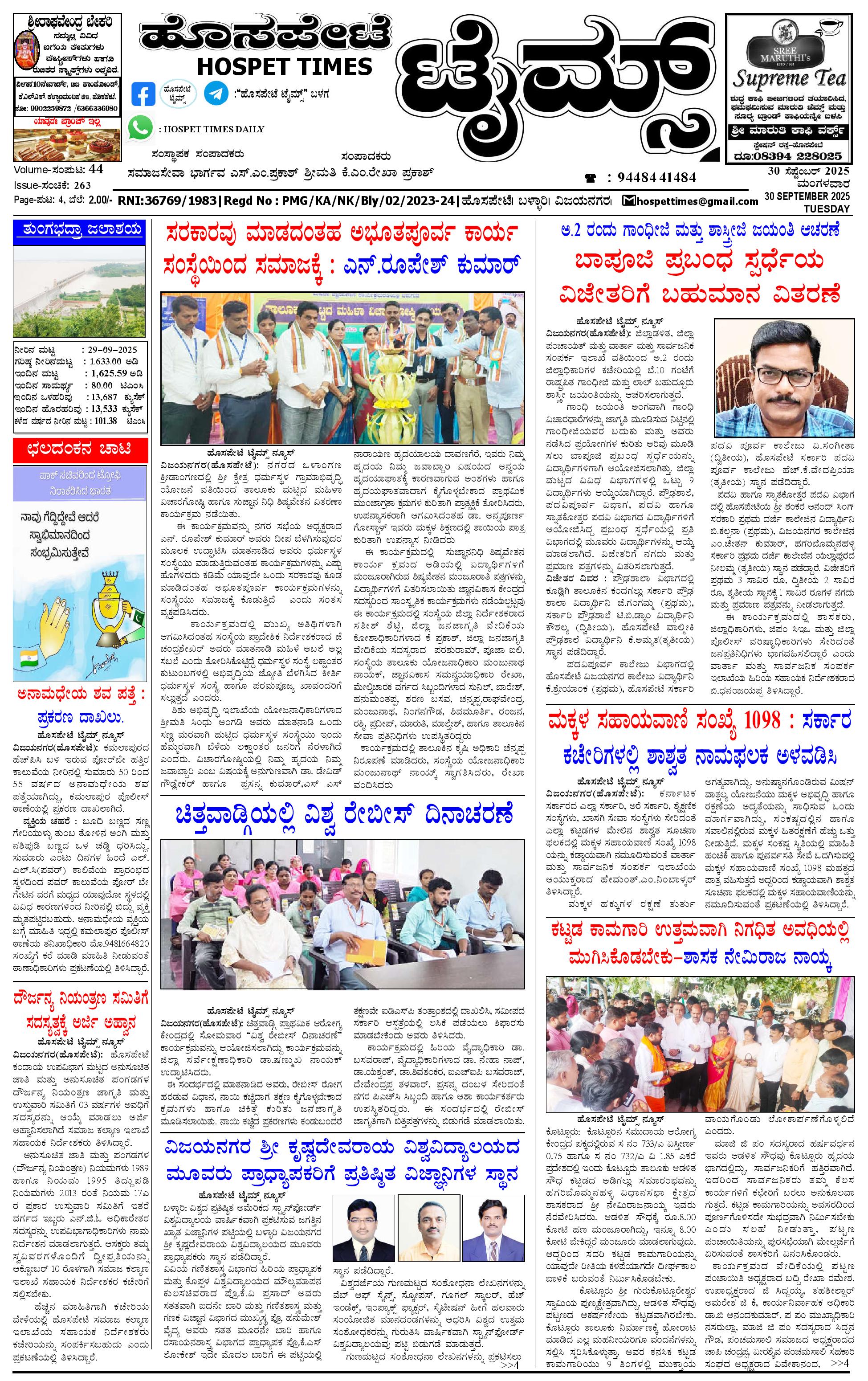 ಮಾಧ್ಯಮ ಅಕಾಡೆಮಿ ಪ್ರಶಸ್ತಿ ಪುರಸ್ಕೃತ 'ಹೊಸಪೇಟೆ ಟೈಮ್ಸ್' September 30, 2025 << First << 1 >> Last >> Page 1Page 2Page 3Page 4 × ಮಾಧ್ಯಮ ಅಕಾಡೆಮಿ ಪ್ರಶಸ್ತಿ ಪುರಸ್ಕೃತ 'ಹೊಸಪೇಟೆ ಟೈಮ್ಸ್' HPT-30092025--4-page-001HPT-30092025--4-page-002HPT-30092025--4-page-003HPT-30092025--4-page-004 << First << 1 >> Last >> HPT-30092025--4-page-001HPT-30092025--4-page-002HPT-30092025--4-page-003HPT-30092025--4-page-004 HPT-30092025--4-page-001