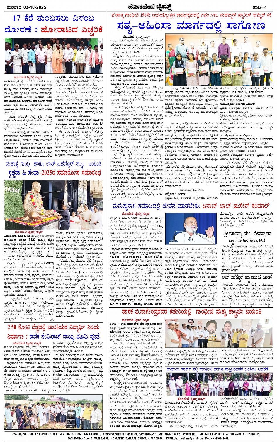 ಮಾಧ್ಯಮ ಅಕಾಡೆಮಿ ಪ್ರಶಸ್ತಿ ಪುರಸ್ಕೃತ 'ಹೊಸಪೇಟೆ ಟೈಮ್ಸ್' Page: 4 October 03, 2025 << First << 4 >> Last >> Page 1Page 2Page 3Page 4 × ಮಾಧ್ಯಮ ಅಕಾಡೆಮಿ ಪ್ರಶಸ್ತಿ ಪುರಸ್ಕೃತ 'ಹೊಸಪೇಟೆ ಟೈಮ್ಸ್' HPT-03102025--4-page-001HPT-03102025--4-page-002HPT-03102025--4-page-003HPT-03102025--4-page-004 << First << 4 >> Last >> HPT-03102025--4-page-001HPT-03102025--4-page-002HPT-03102025--4-page-003HPT-03102025--4-page-004 HPT-03102025--4-page-004