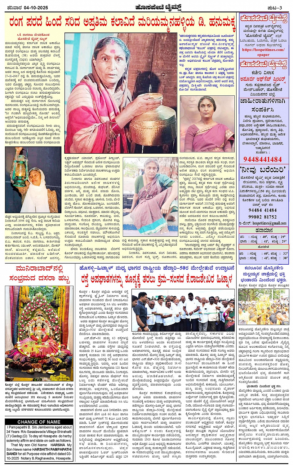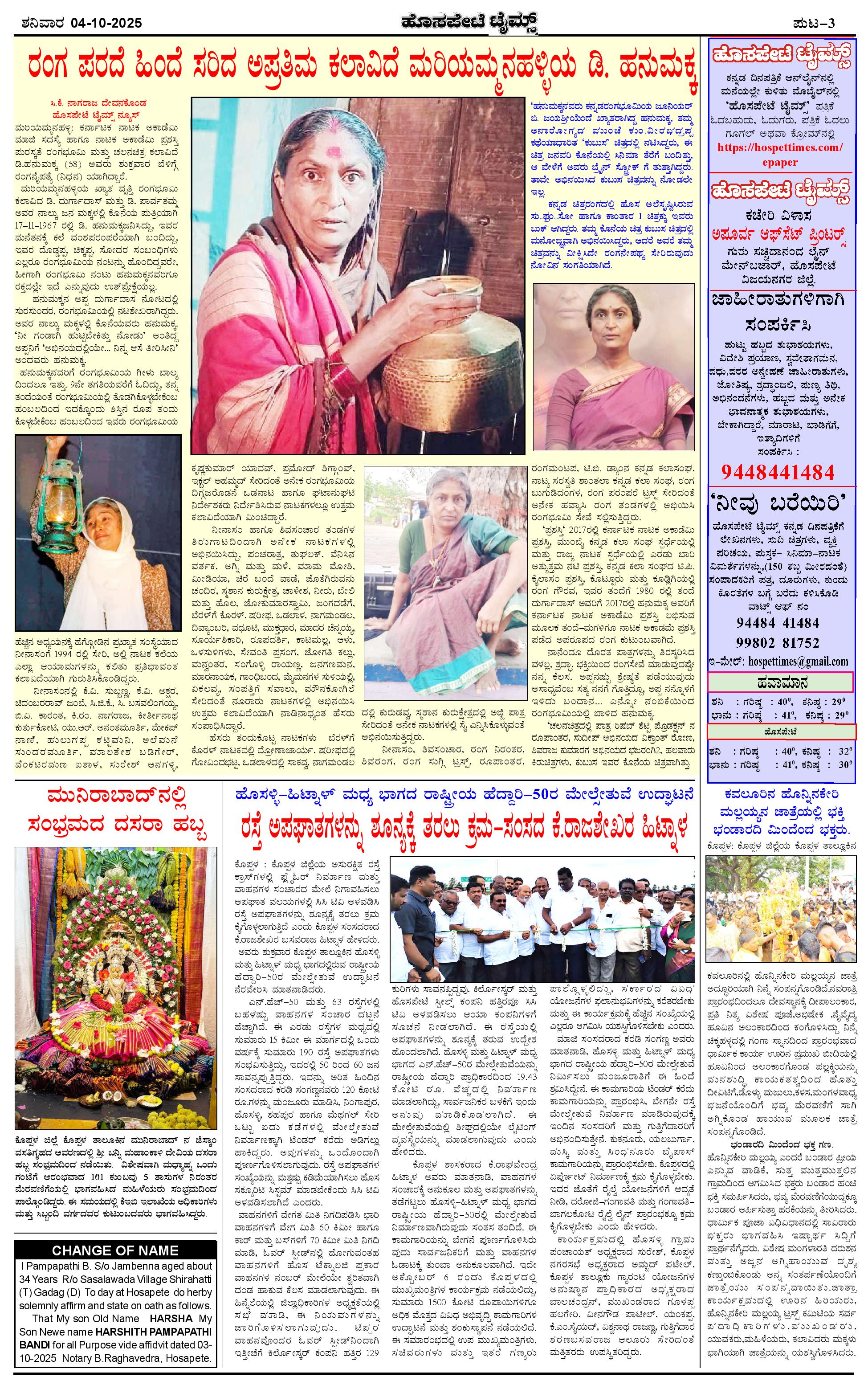 ಮಾಧ್ಯಮ ಅಕಾಡೆಮಿ ಪ್ರಶಸ್ತಿ ಪುರಸ್ಕೃತ 'ಹೊಸಪೇಟೆ ಟೈಮ್ಸ್' Page: 3 October 04, 2025 << First << 3 >> Last >> Page 1Page 2Page 3Page 4 × ಮಾಧ್ಯಮ ಅಕಾಡೆಮಿ ಪ್ರಶಸ್ತಿ ಪುರಸ್ಕೃತ 'ಹೊಸಪೇಟೆ ಟೈಮ್ಸ್' HPT-04102025-4-page-001HPT-04102025-4-page-002HPT-04102025-4-page-003HPT-04102025-4-page-004 << First << 3 >> Last >> HPT-04102025-4-page-001HPT-04102025-4-page-002HPT-04102025-4-page-003HPT-04102025-4-page-004 HPT-04102025-4-page-003
